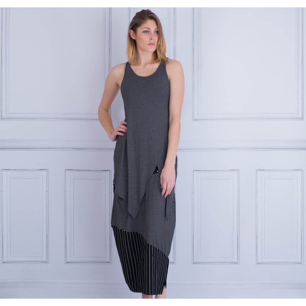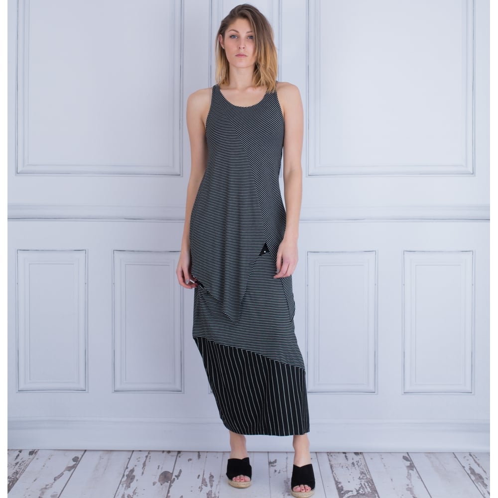 Alembika Scoop Neck Asymmetric Jersey Stripe Tunic Black/White