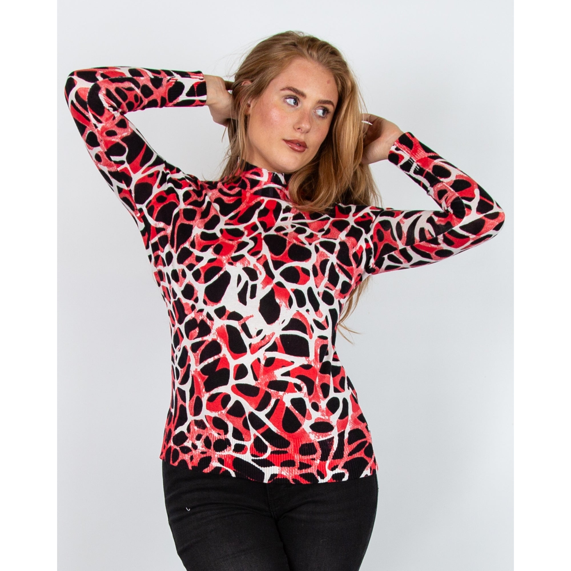 Alison Sheri Pebble Print Fine Knit Jumper Red/black/white