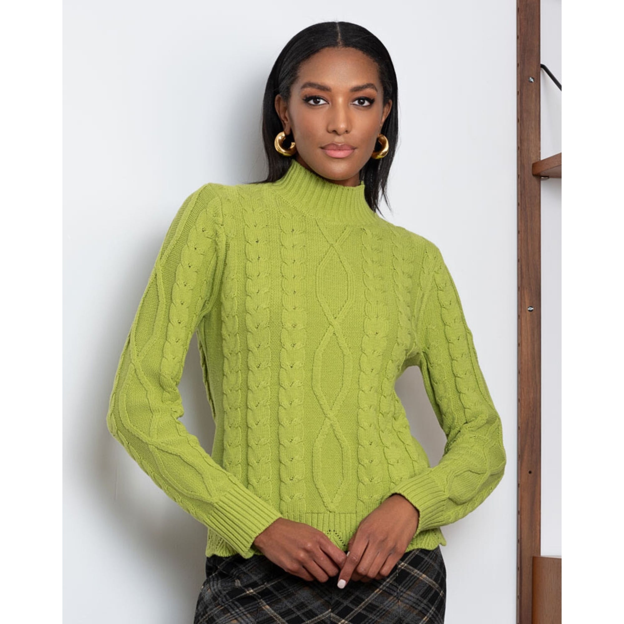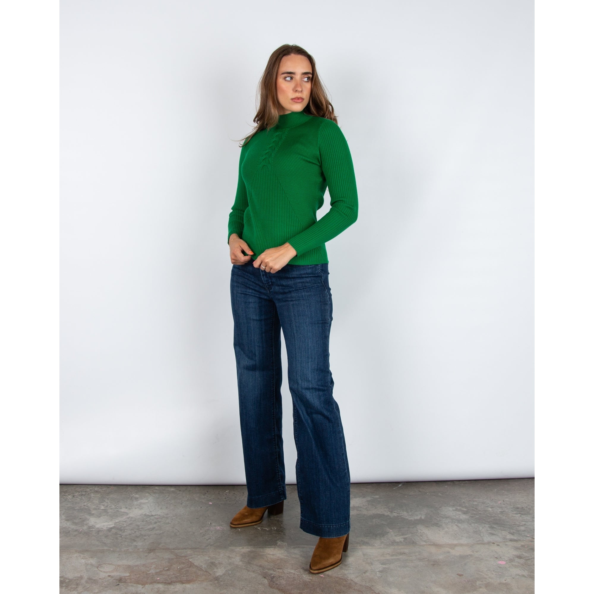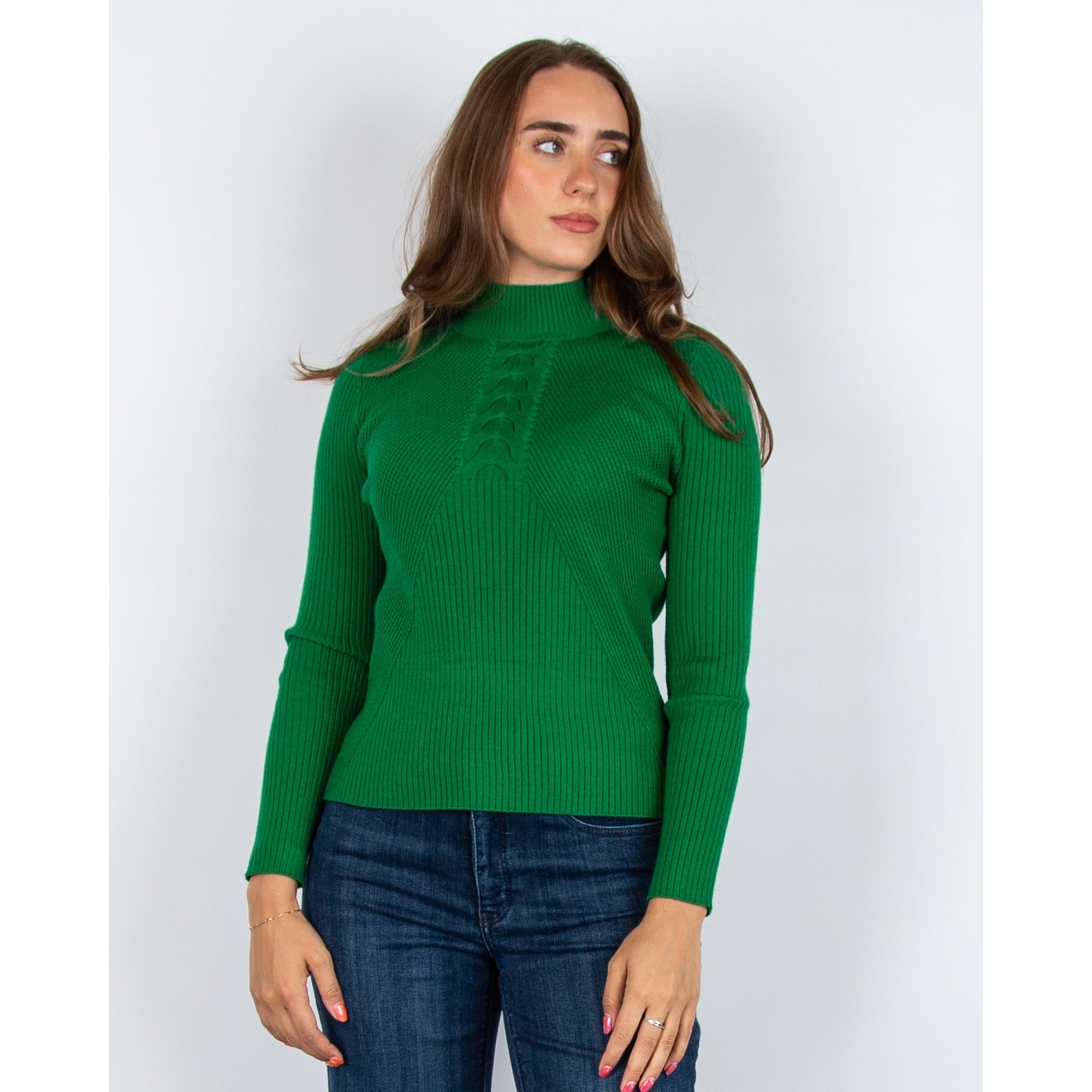 Alison Sheri Fine Rib Cable Front Detail Jumper Green