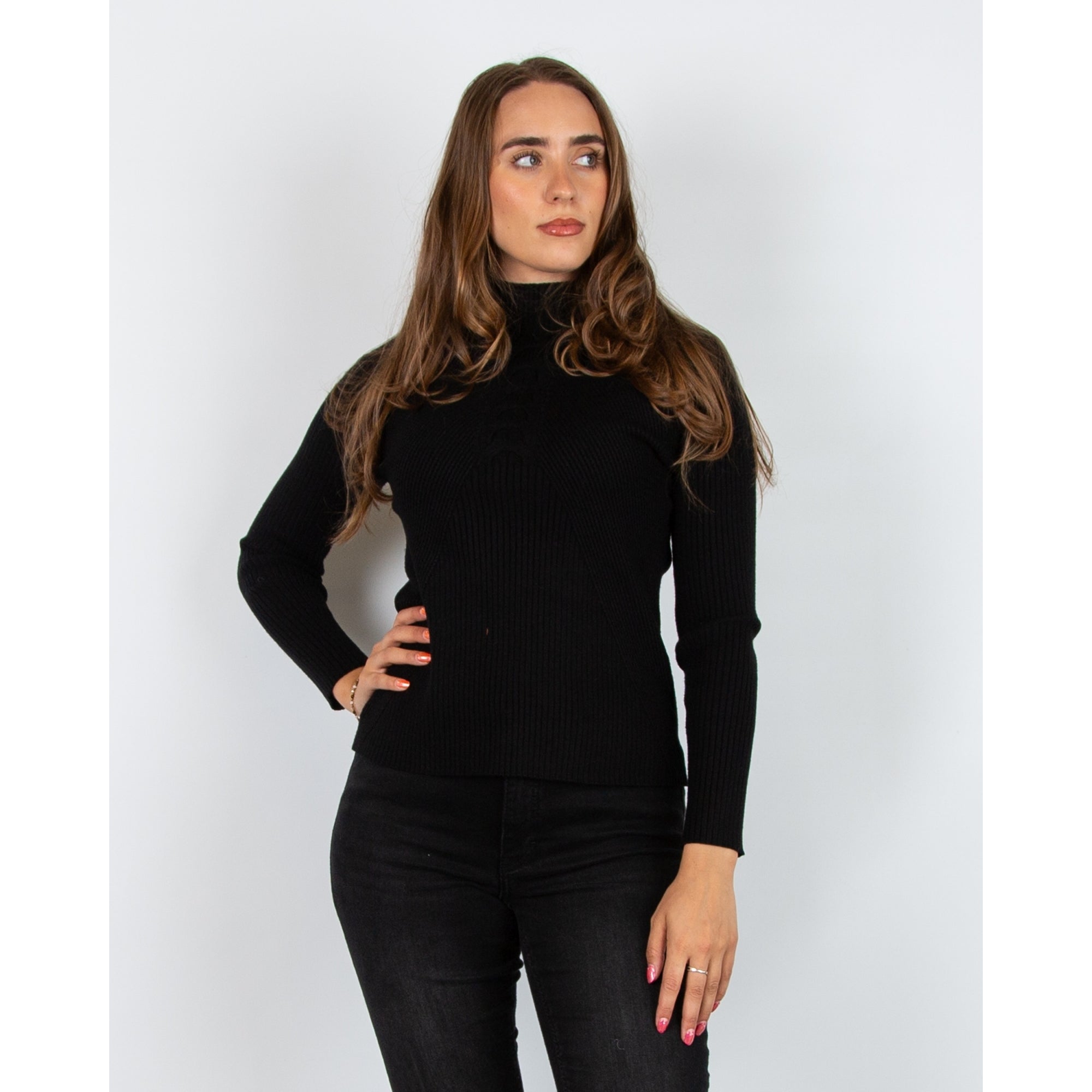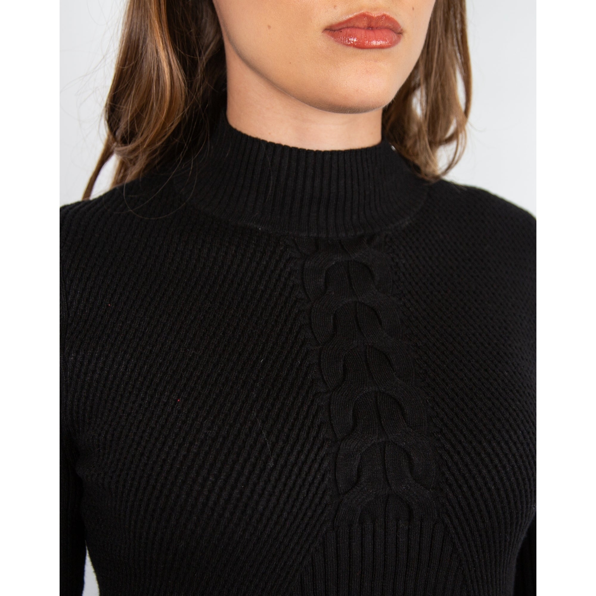 Alison Sheri Fine Rib Cable Front Detail Jumper Black