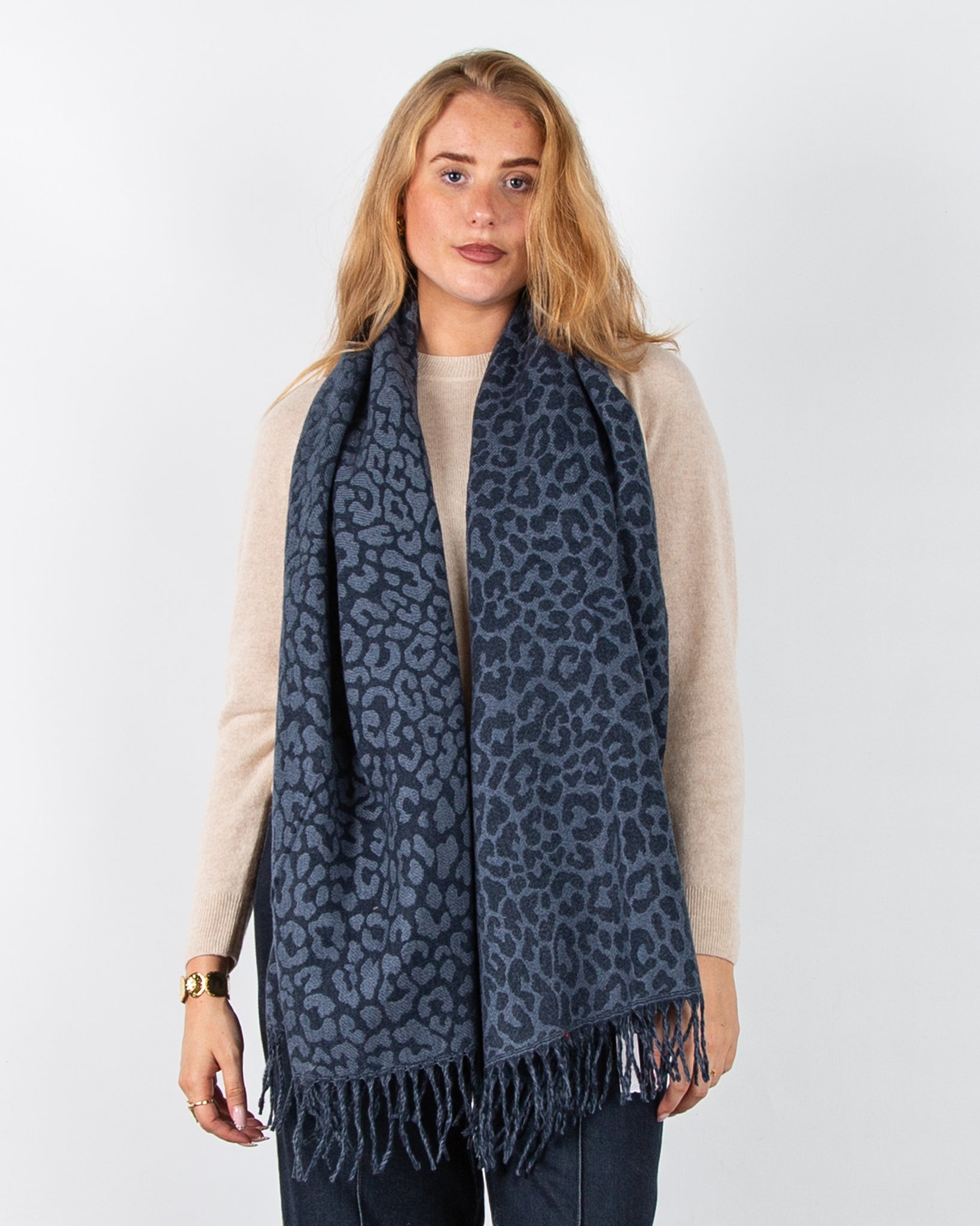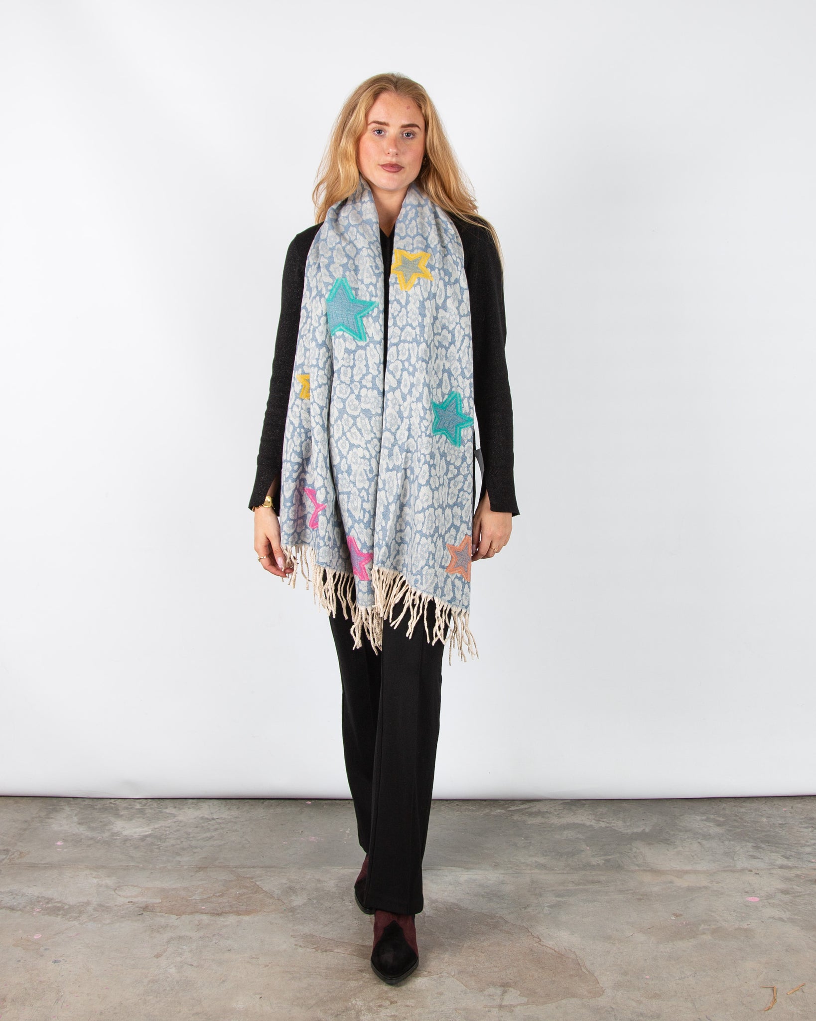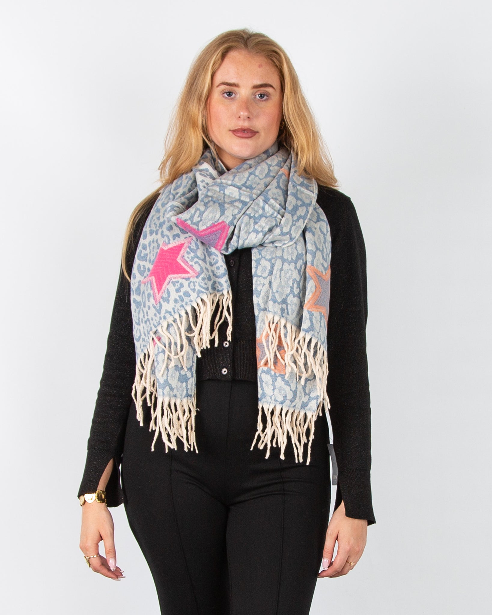 Zelly Heart Print Scarf with Raw Trim Blue