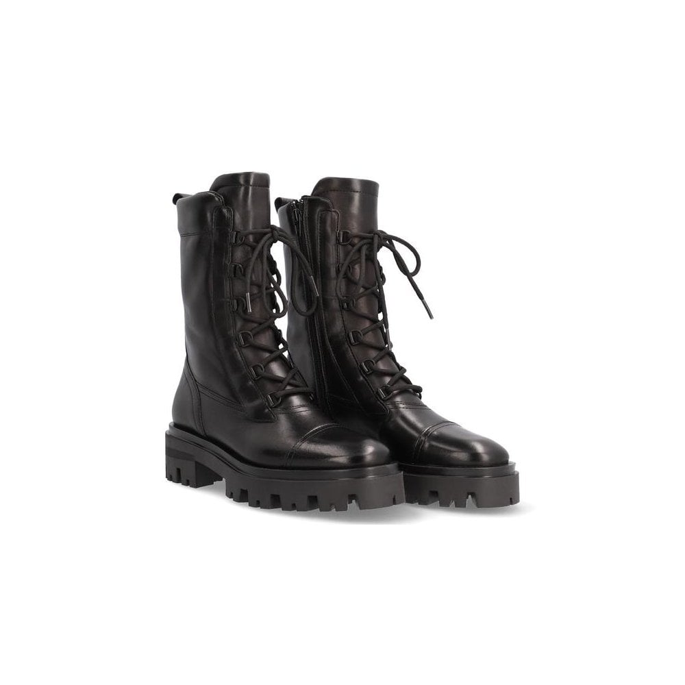 Alpe Monza Leather Lace Up Thick Sole Military Boot Black