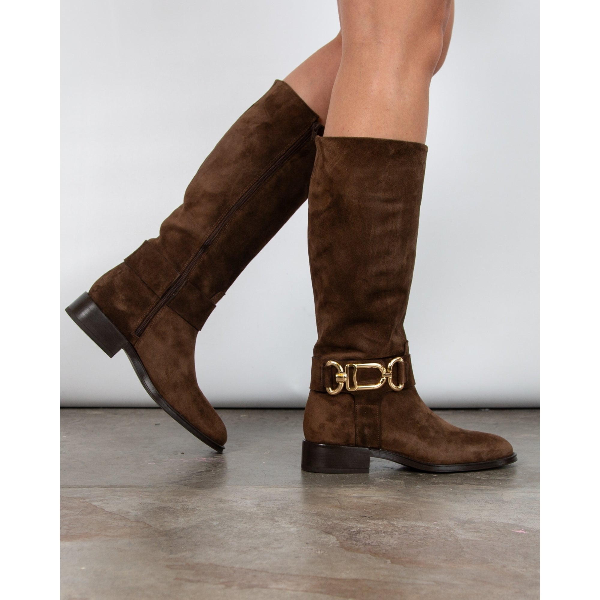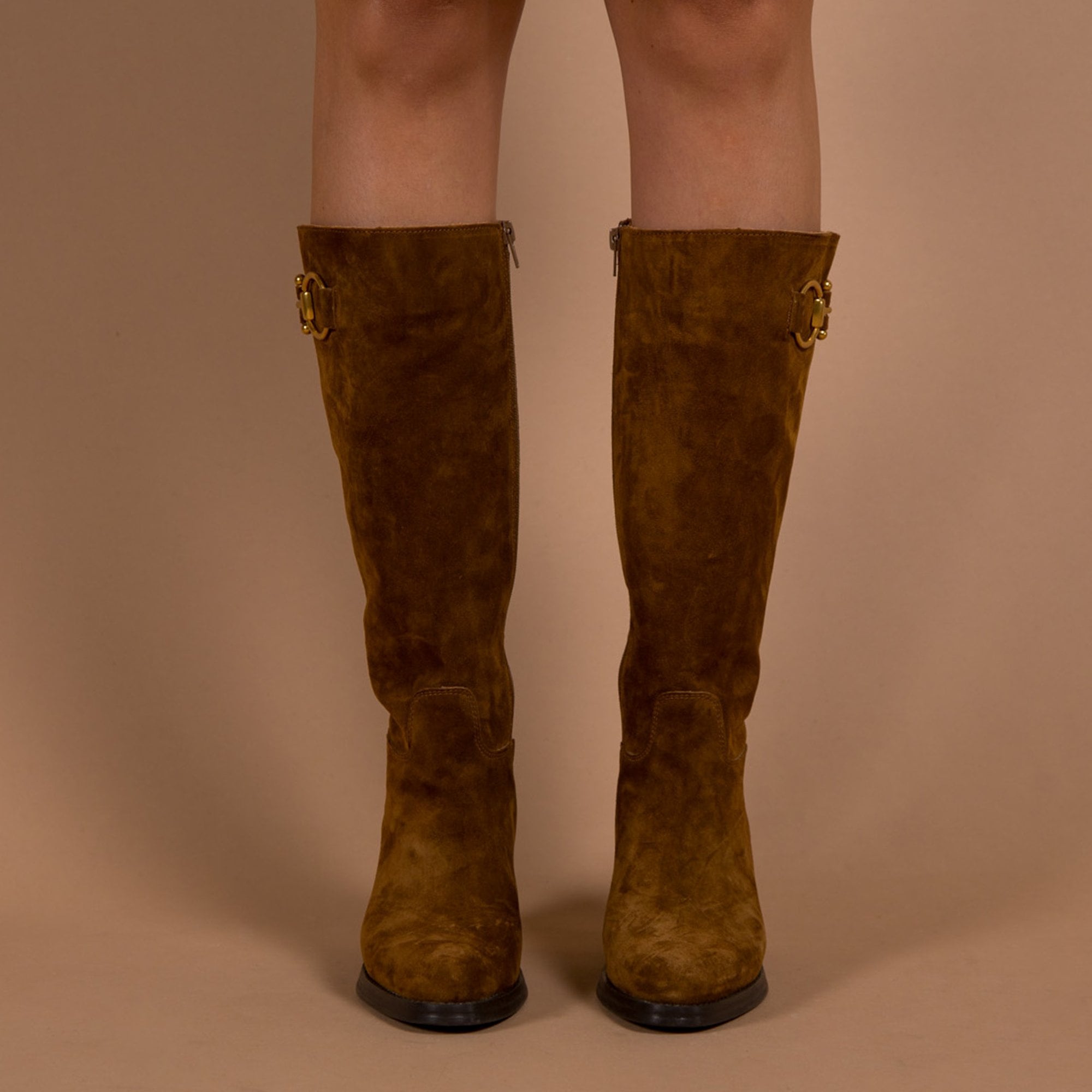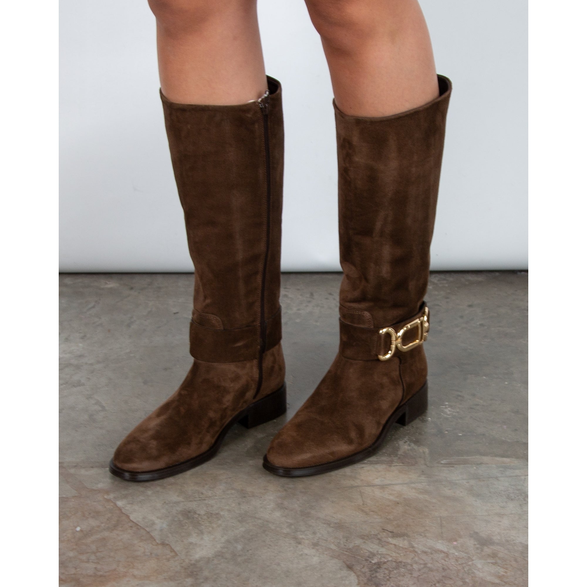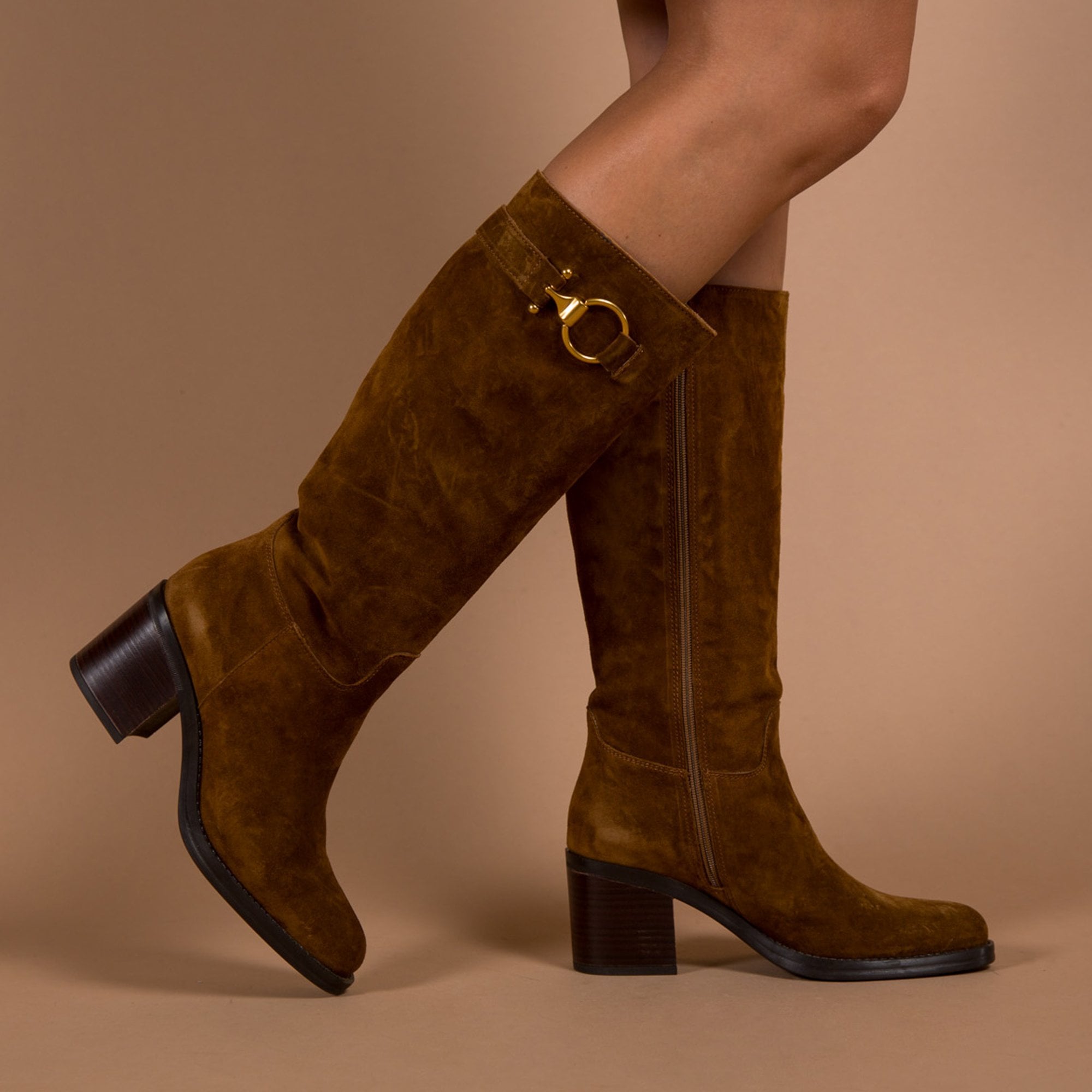Alpe Tall Suede Boots With Ankle Buckle Brown