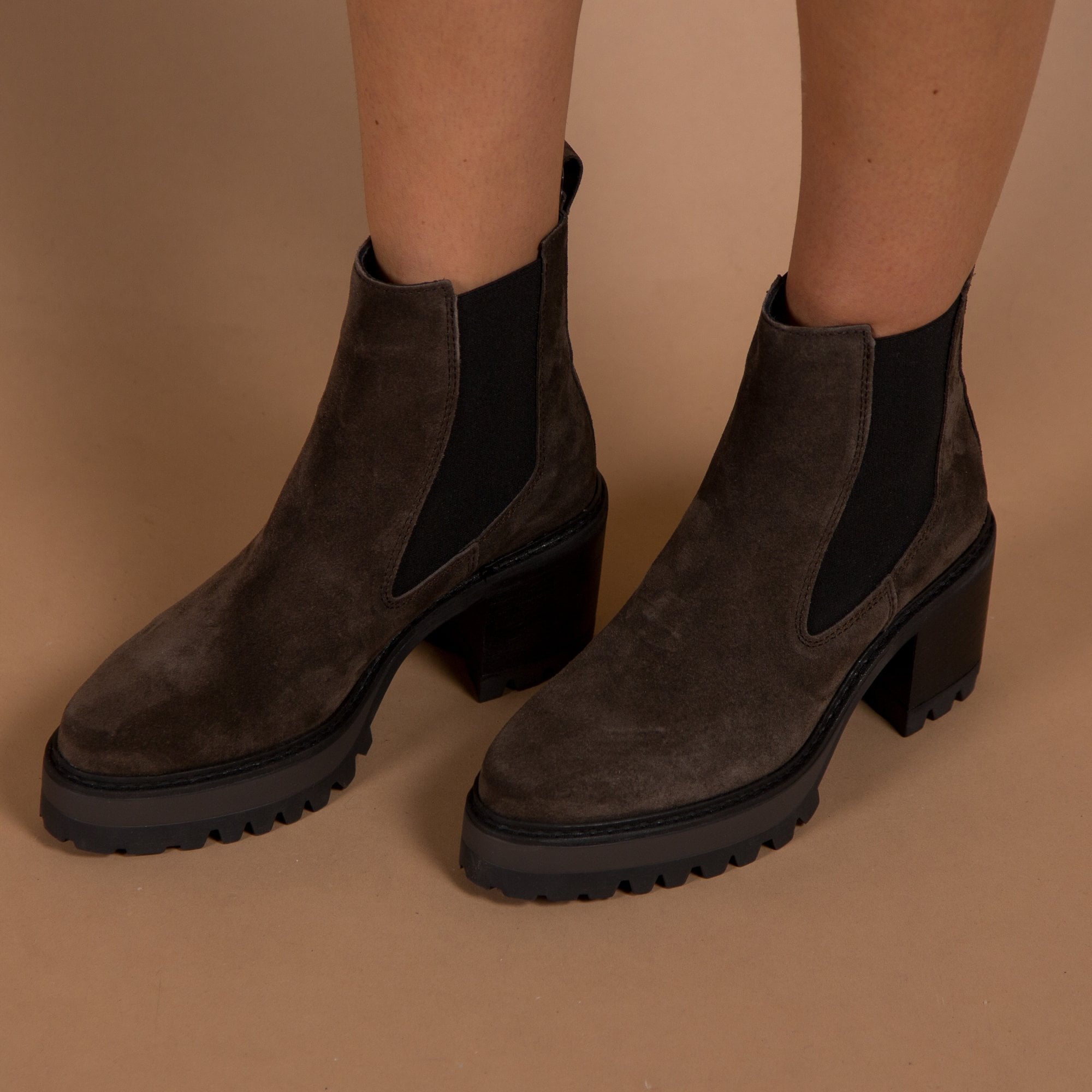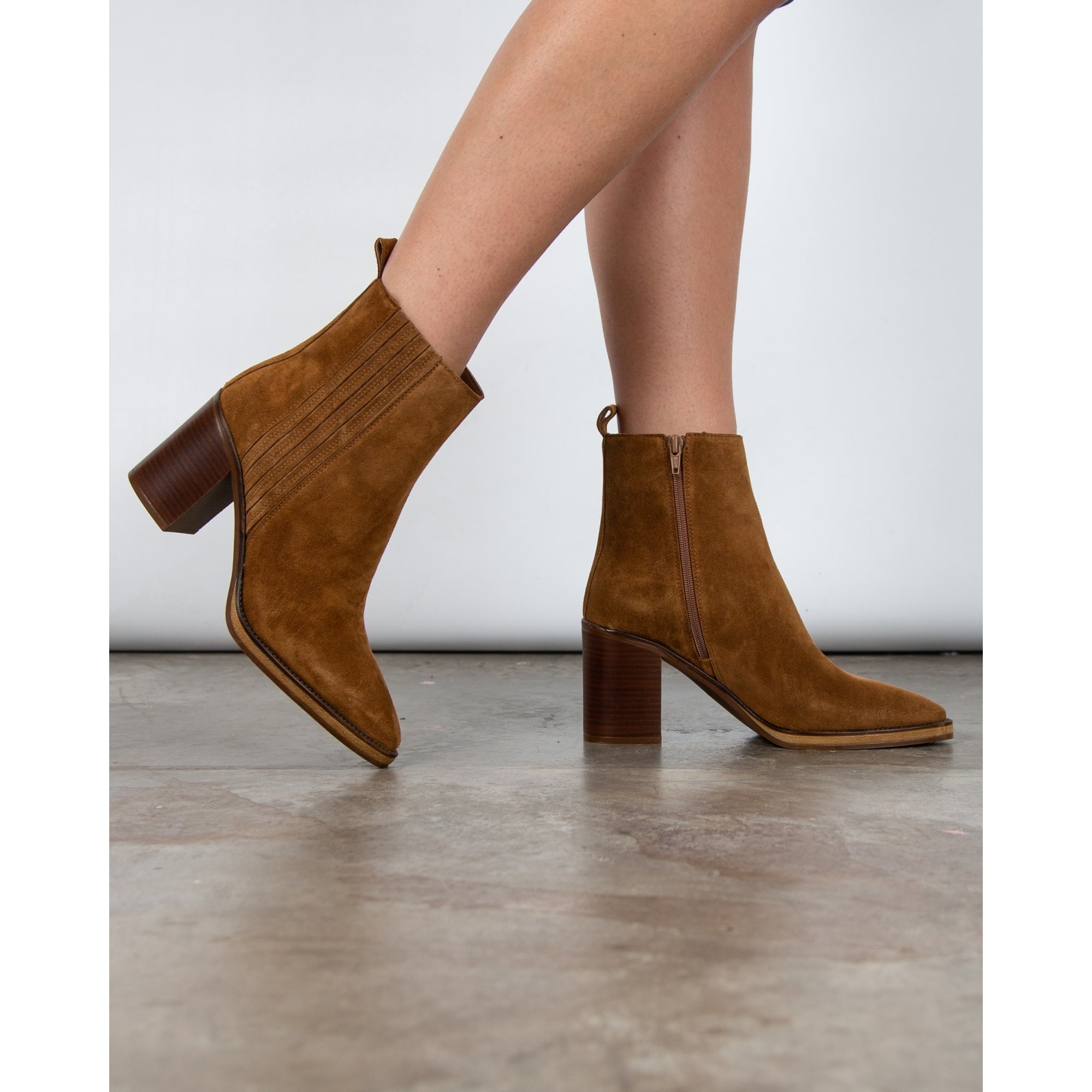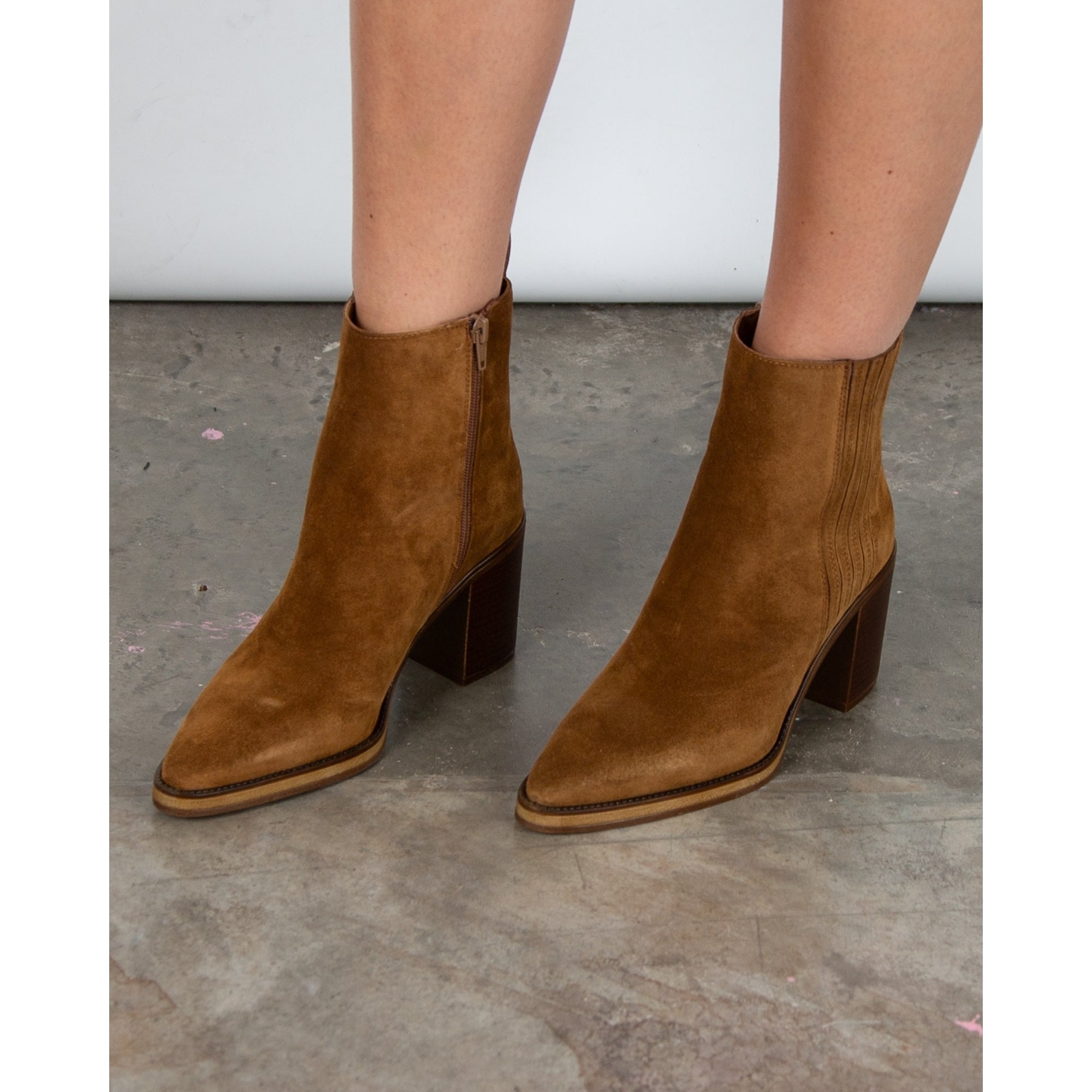 Alpe Suede Pointy Ankle Boots With Block Heel Tan