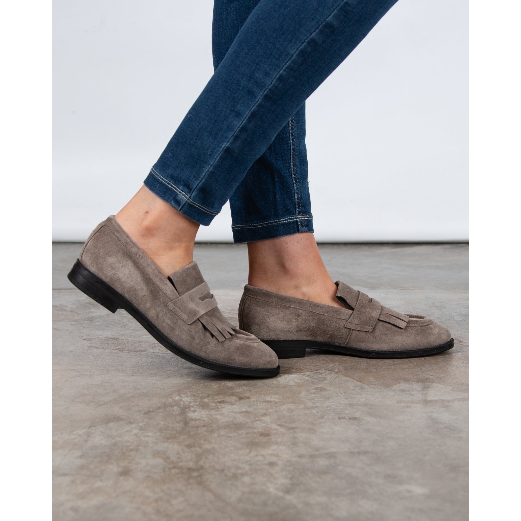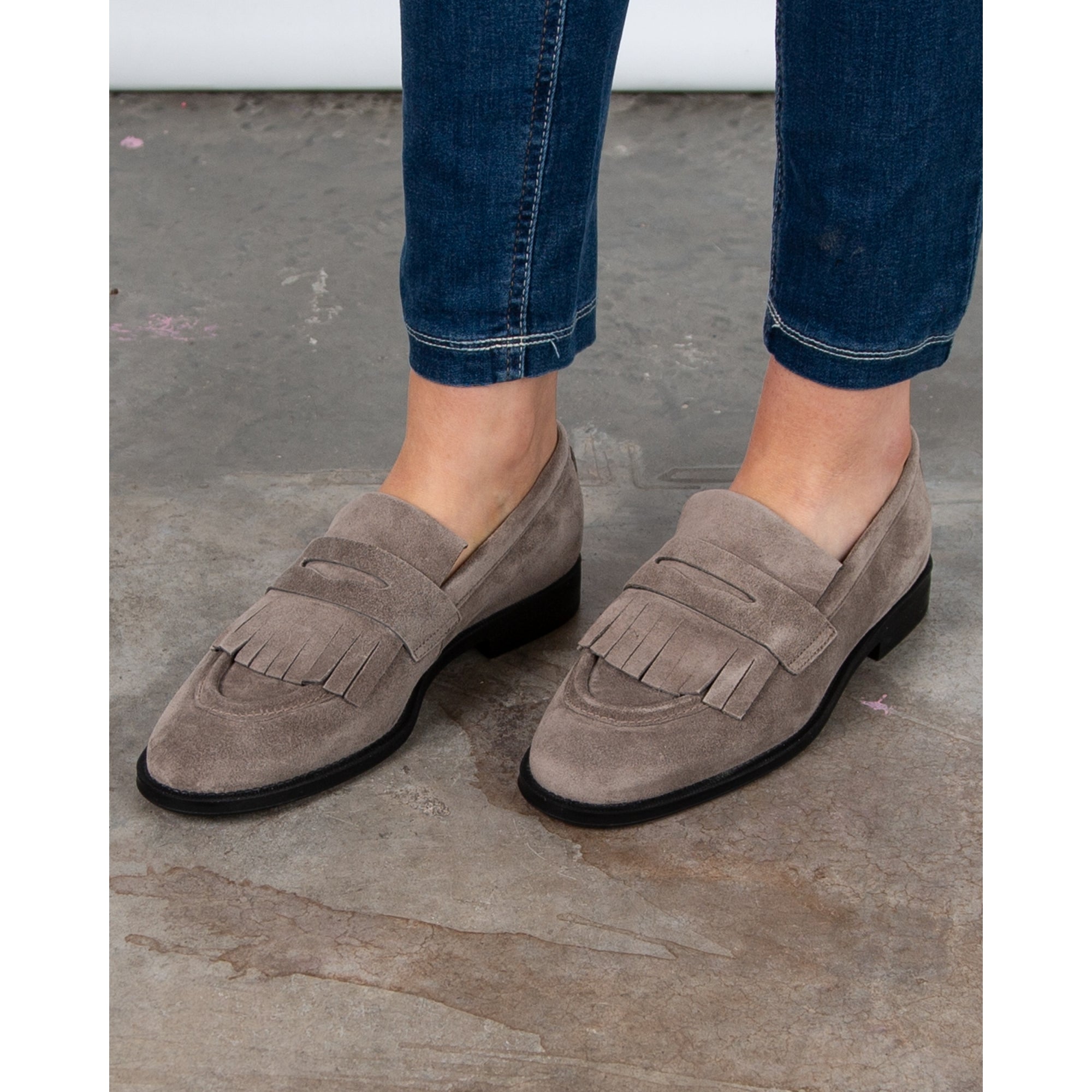 Alpe Suede Loafers With Tassel Front Taupe