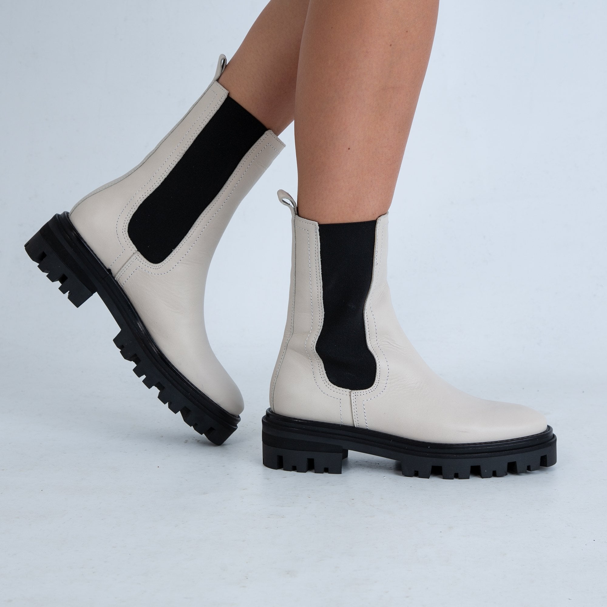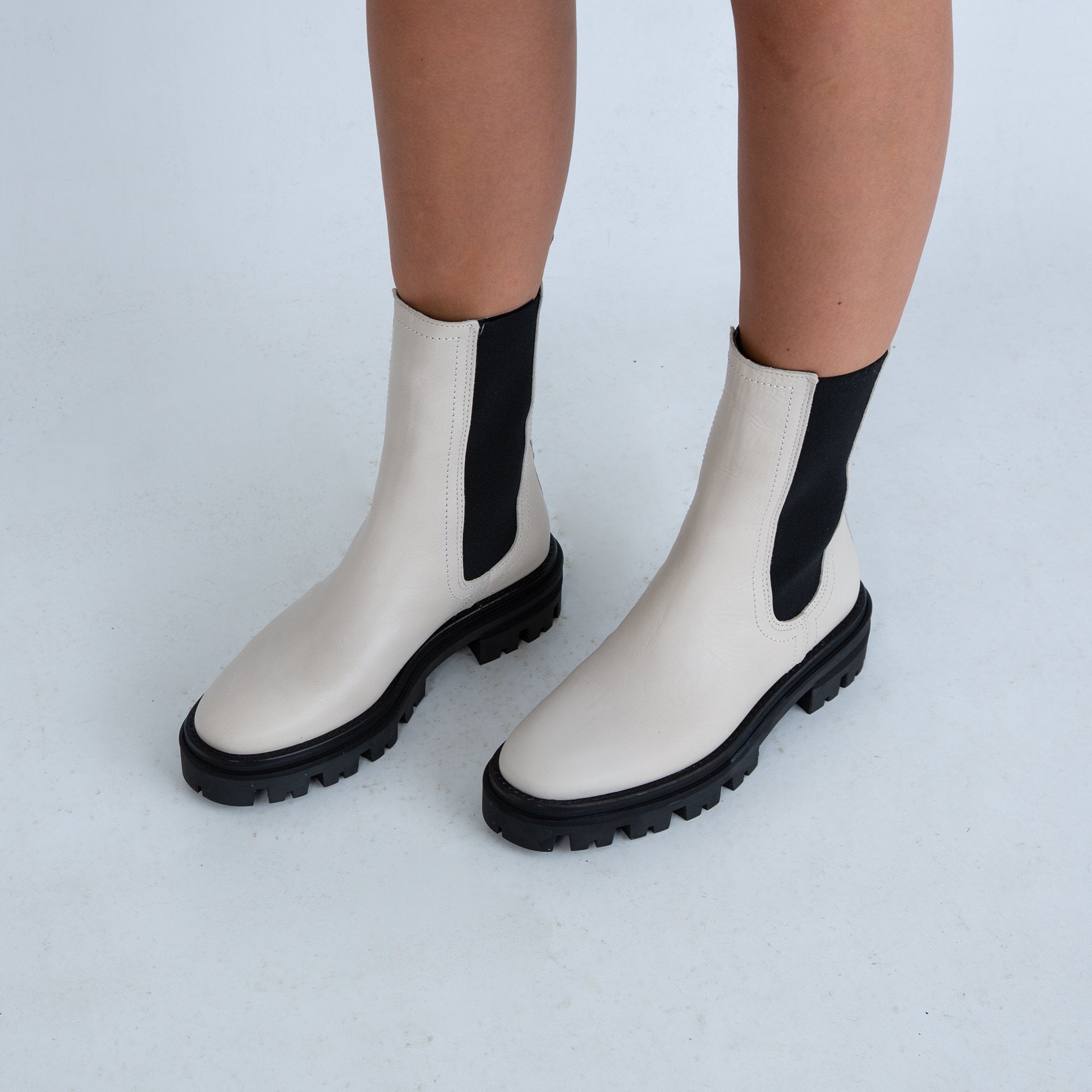 Alpe Monza Pull On Thick Soled Chelsea Boots Off White