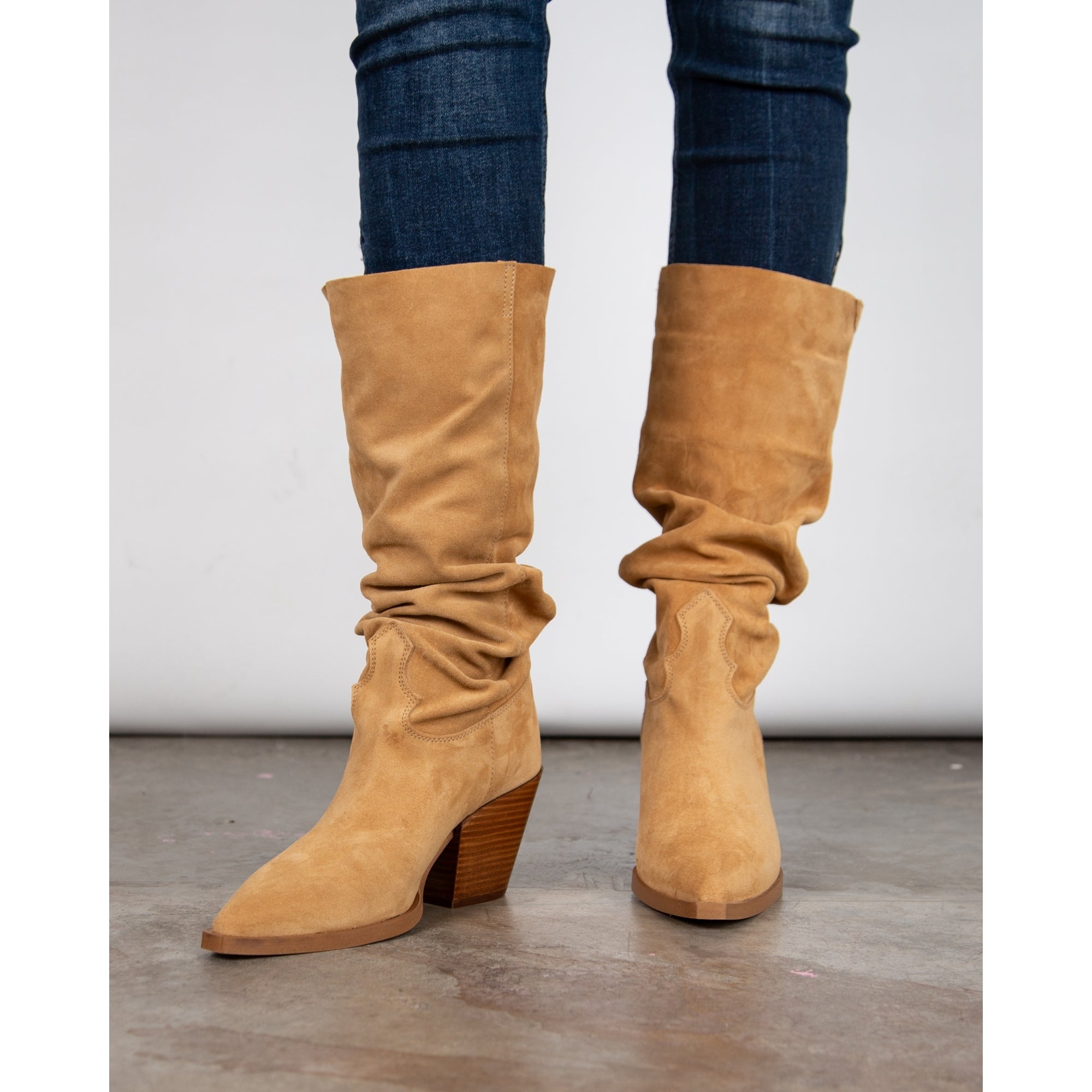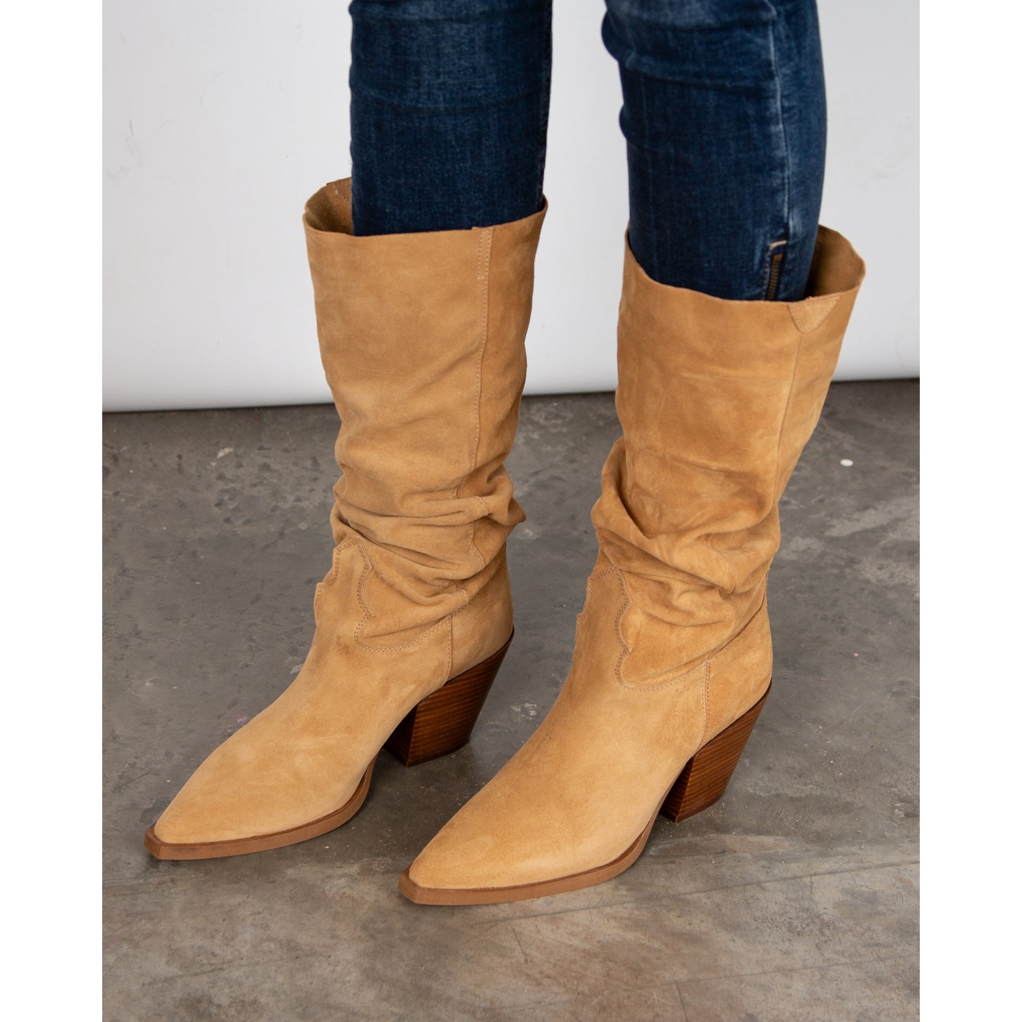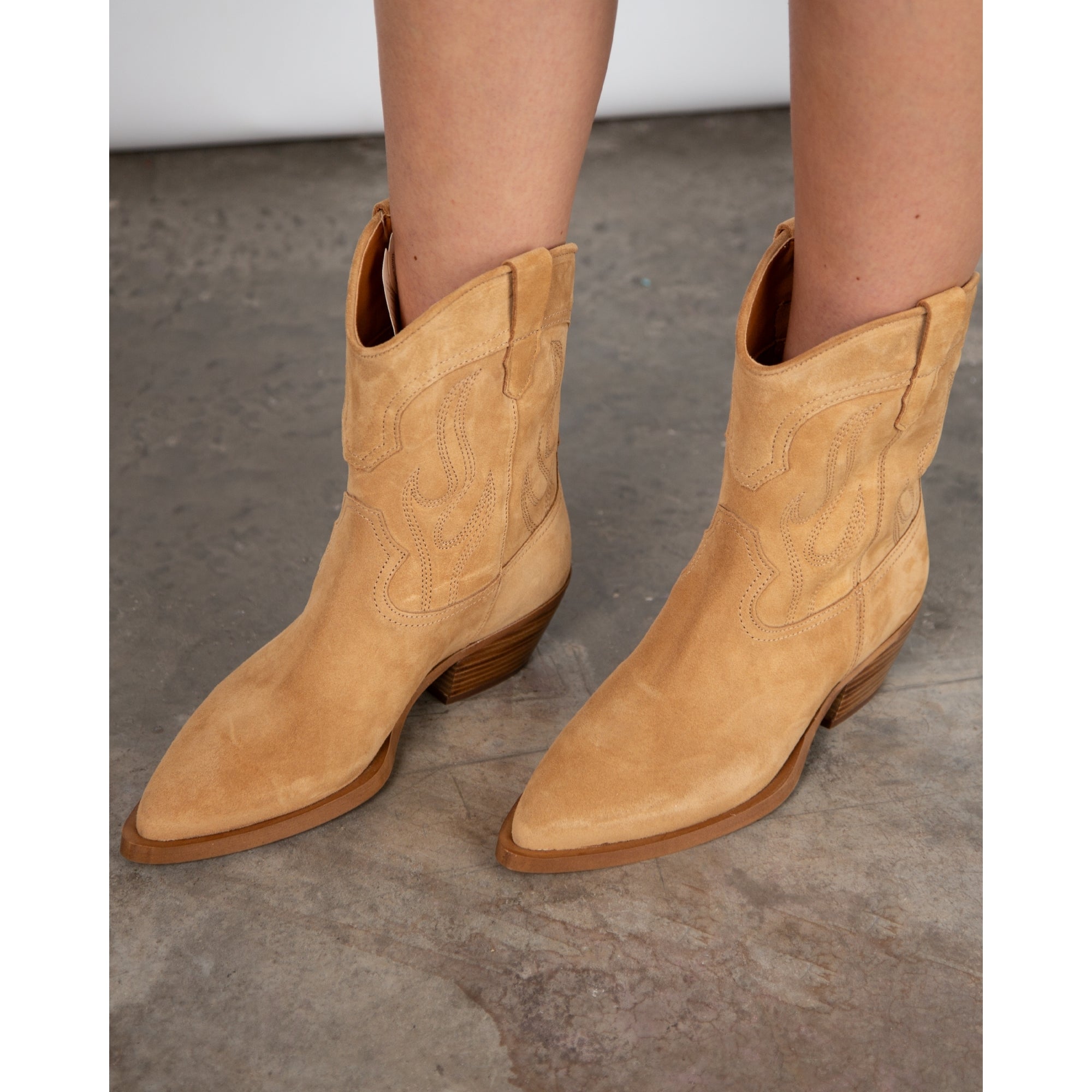Alpe Short Suede Stitched Cowboy Boots Light Tan