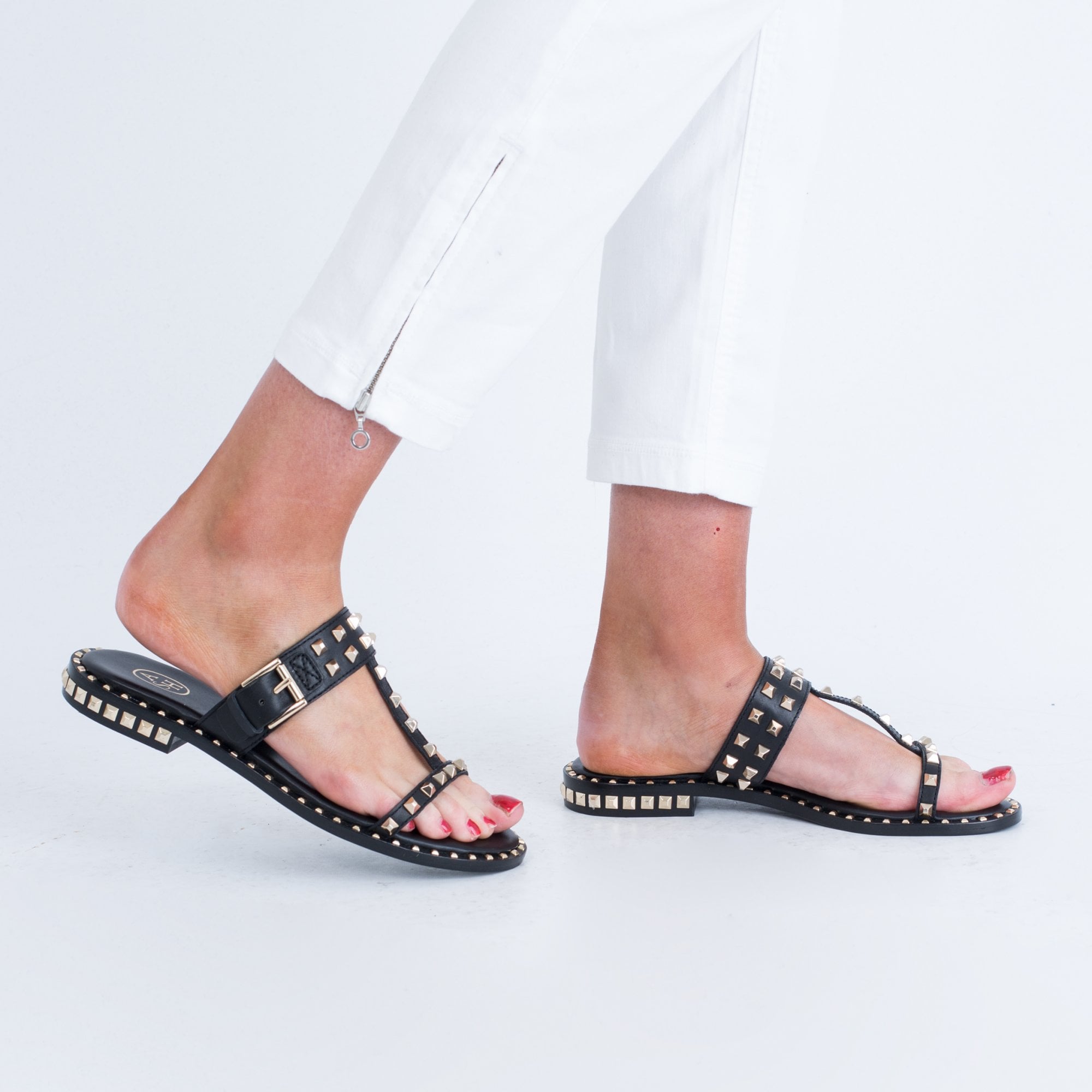 Ash Flat Slip On Buckle Stud Sandal Black