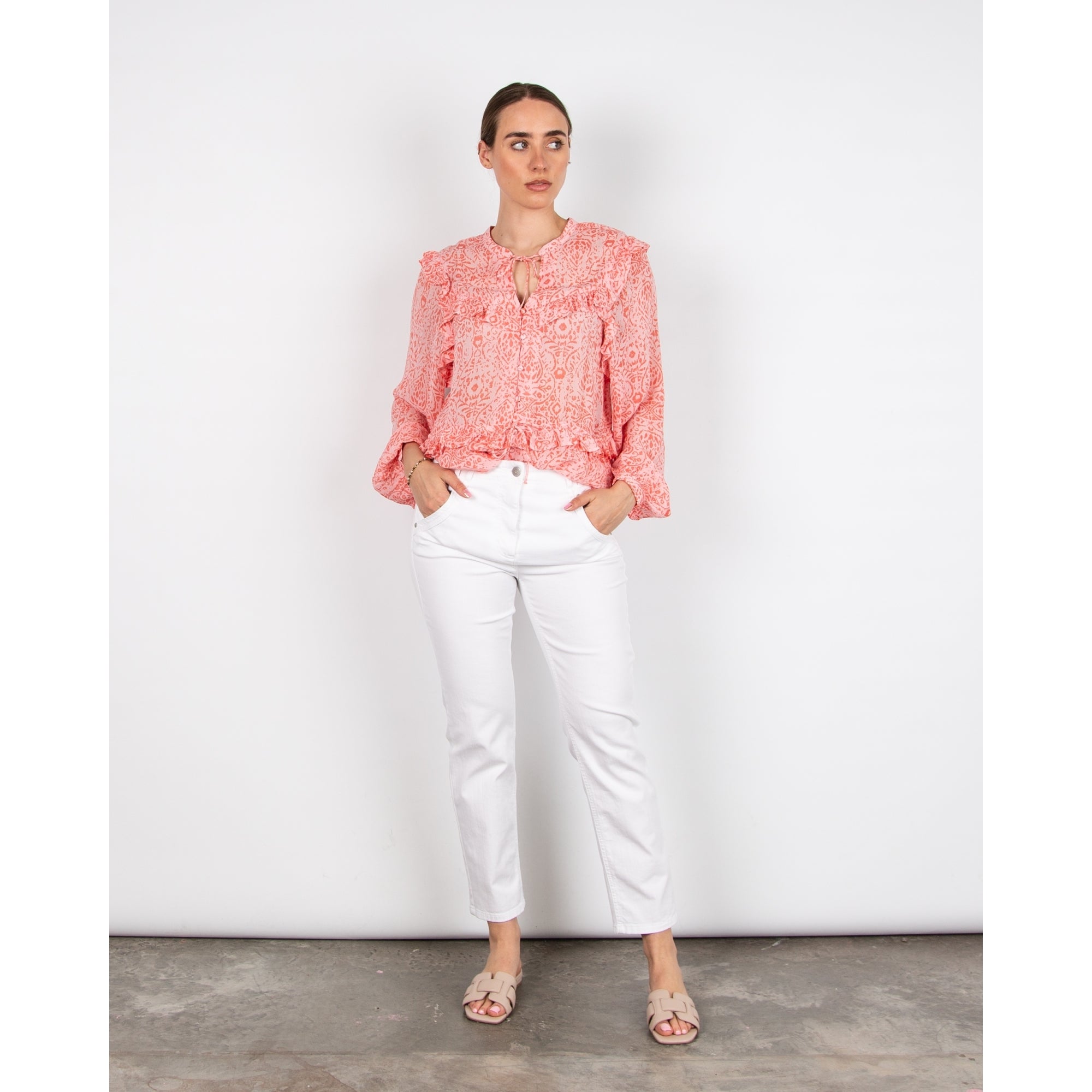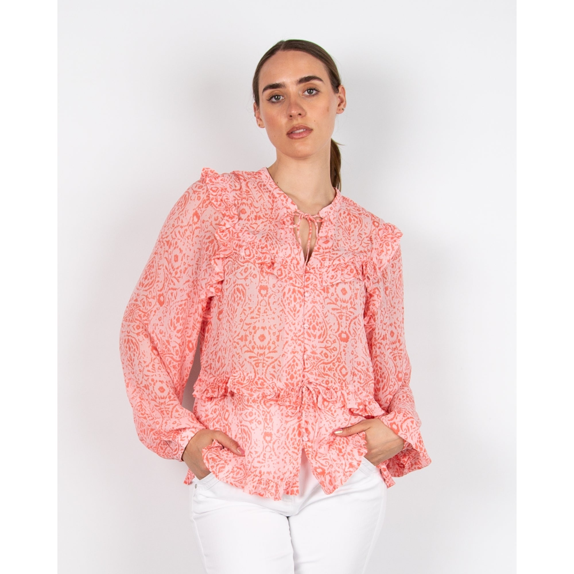 Atelier Reve Iremira Frill Detail Tie Neck Pretty Blouse Pink