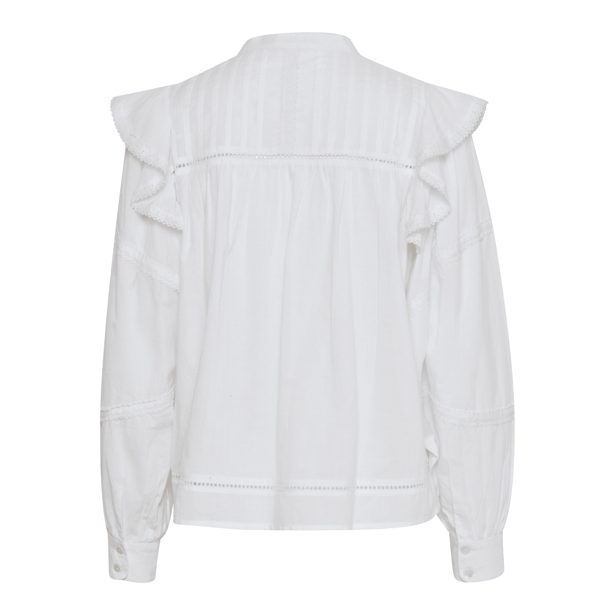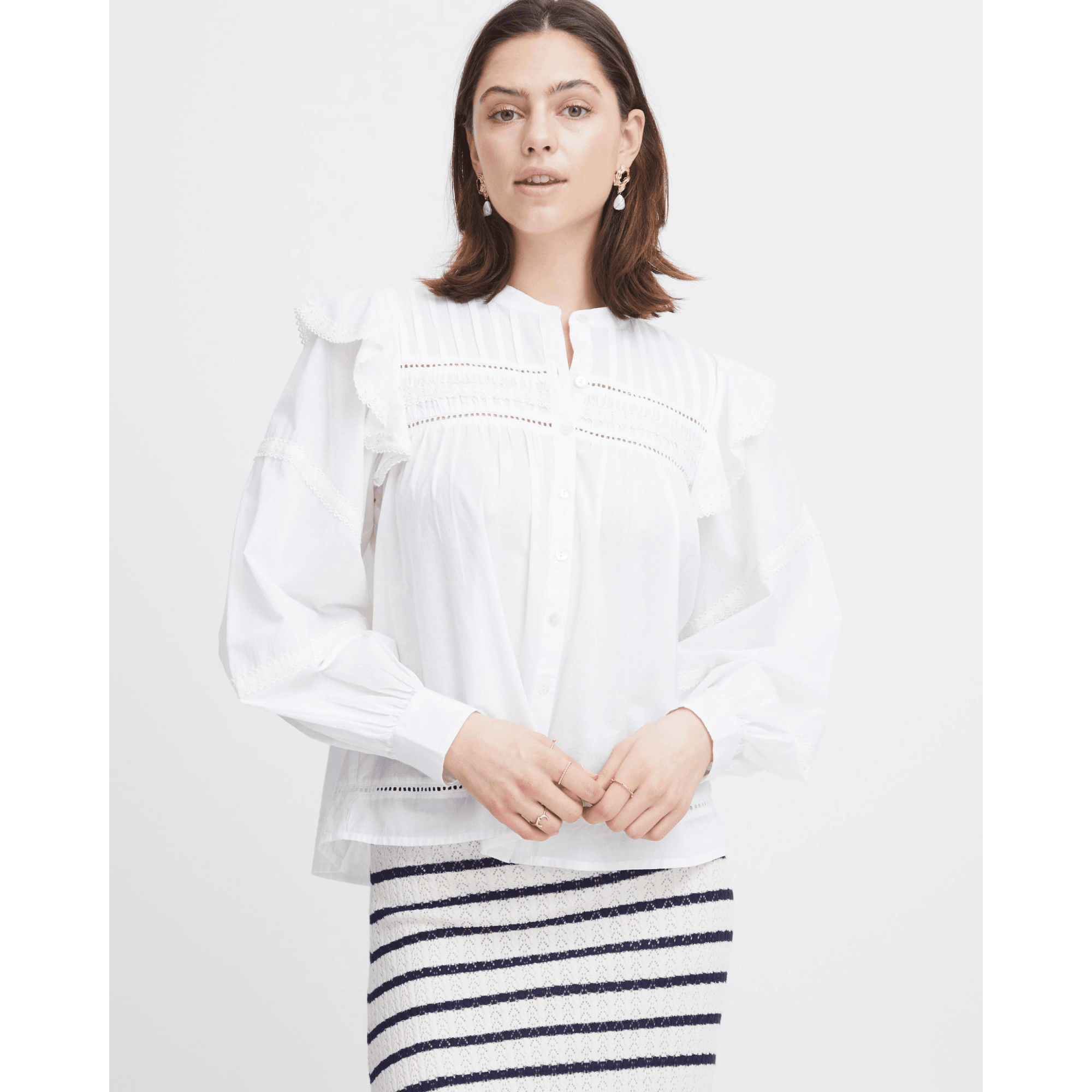 Atelier Reve Irisa Collarless Embroidery Anglaise Cotton Blouse White