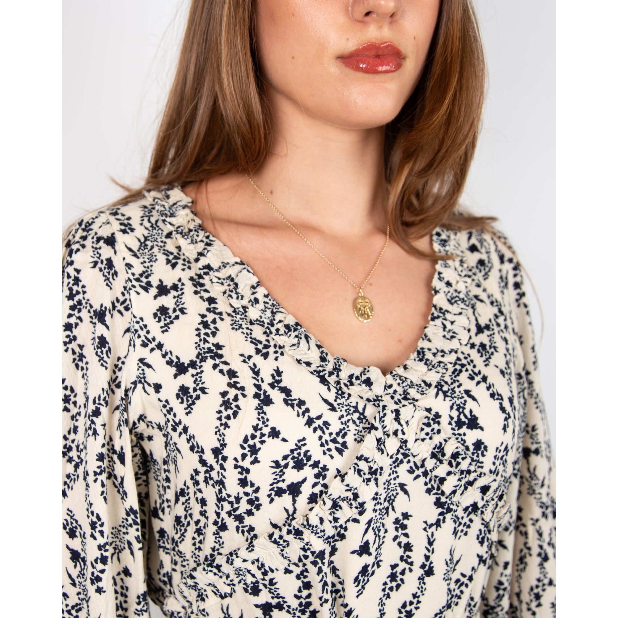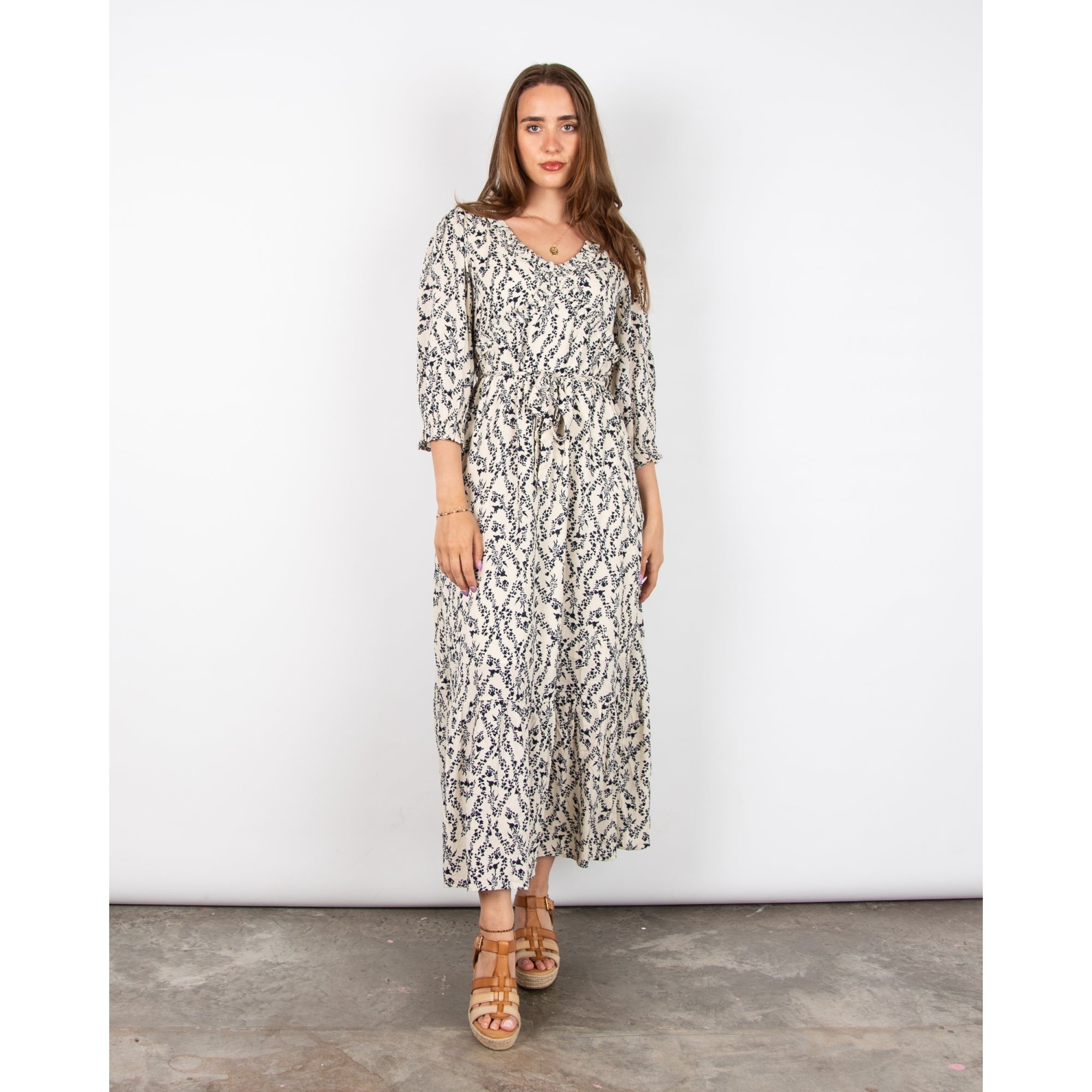 Atelier Reve Iromine Ditsy Floral Long Dress With Frill Trim Ecru/navy