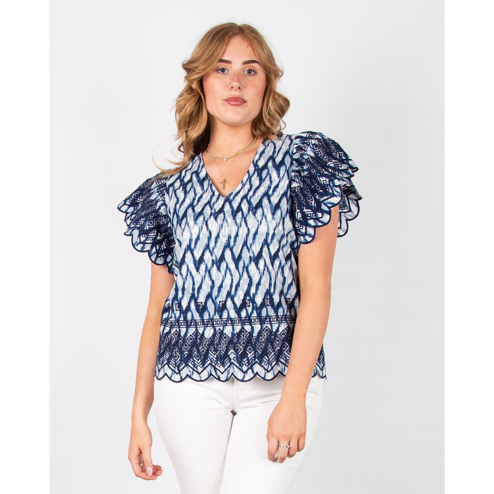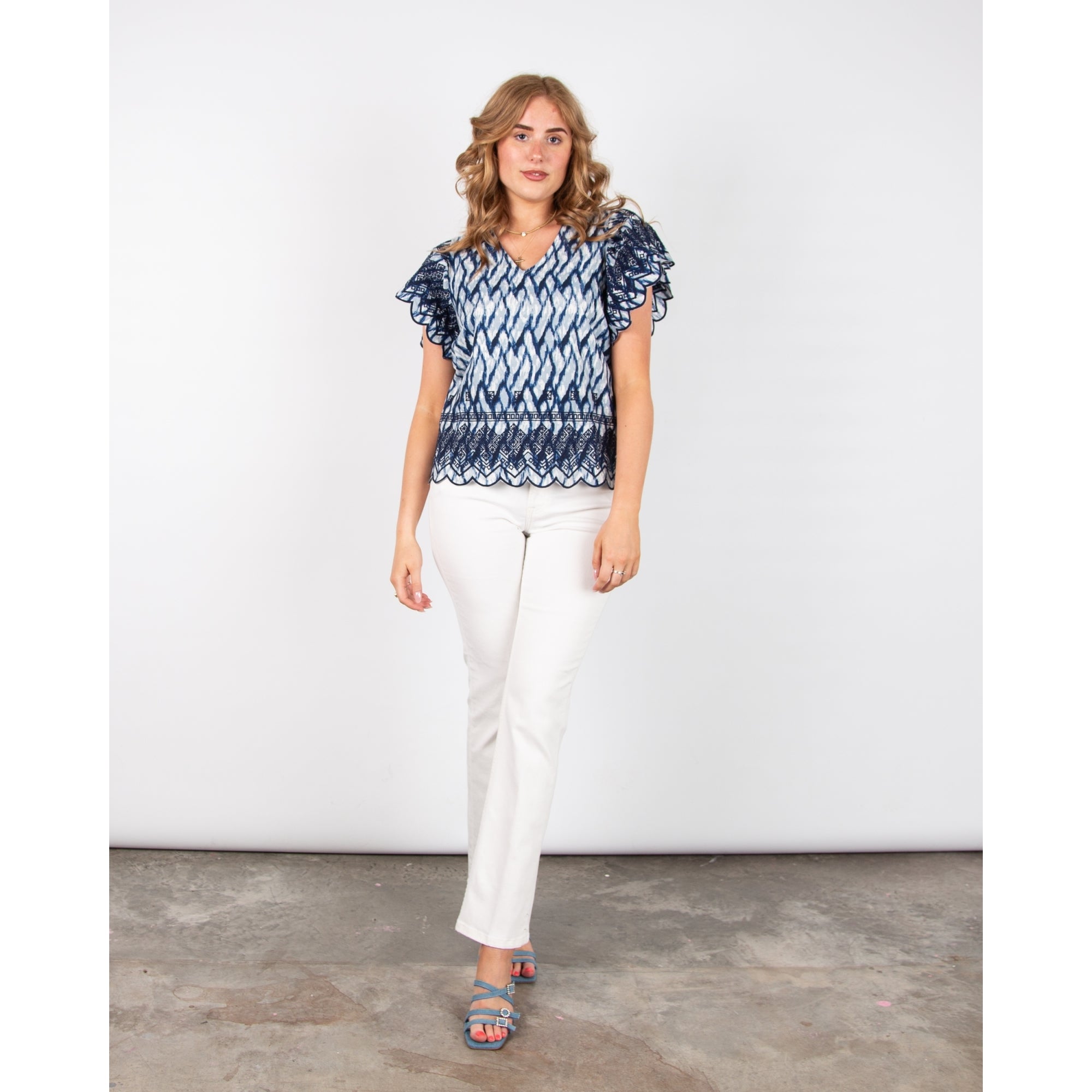 Atelier Reve Irnellio V Front & Back Embroidered Detail Blouse Blue