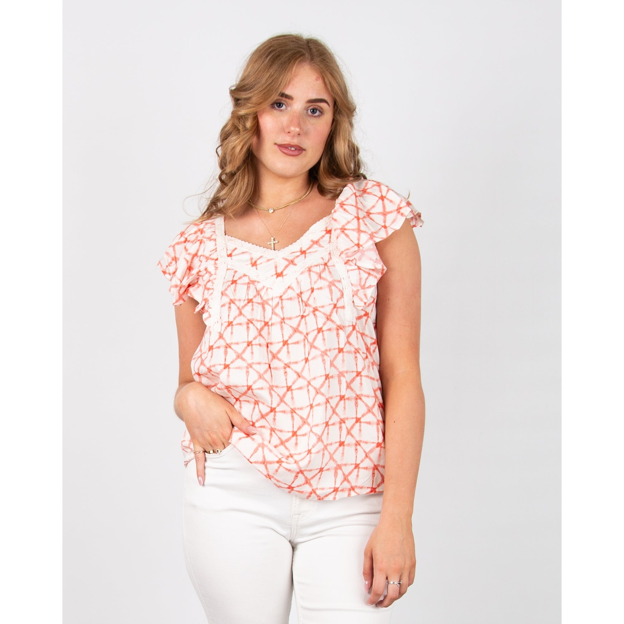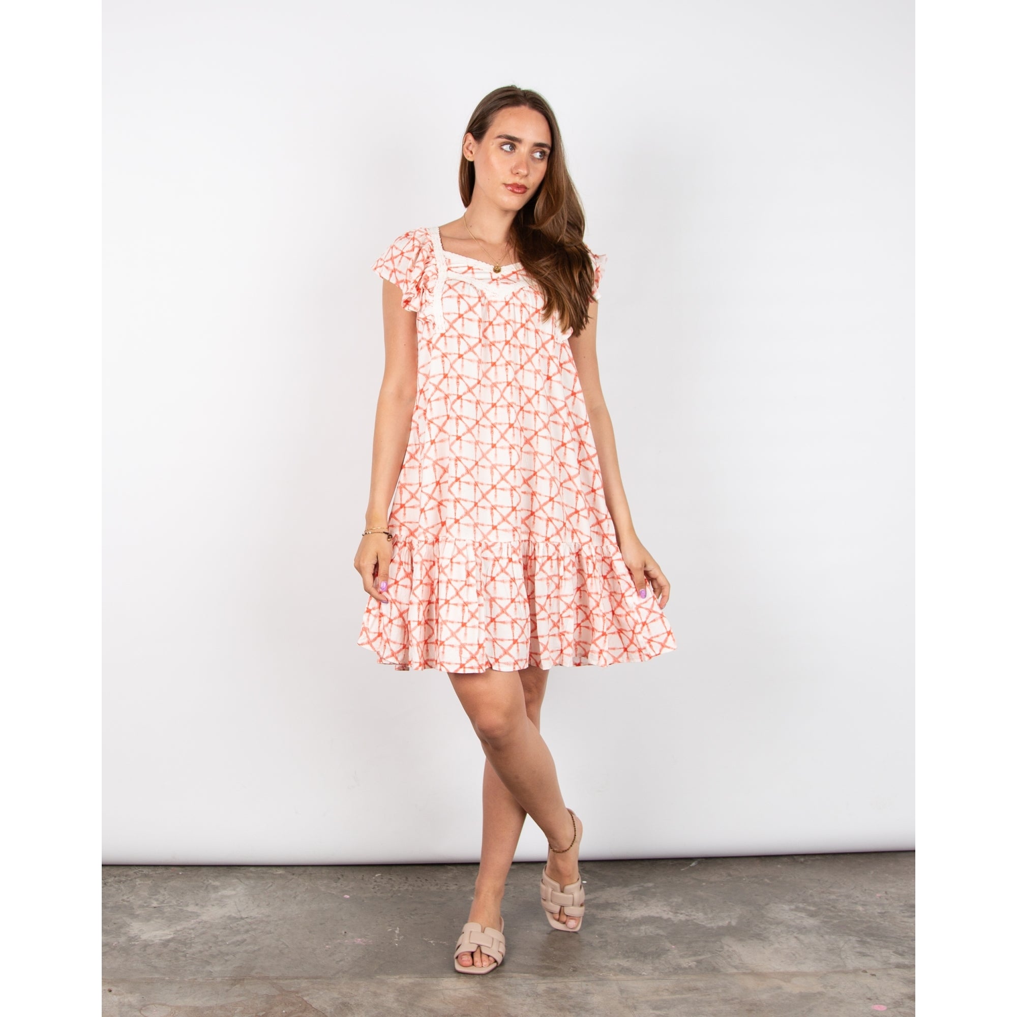 Atelier Reve Irmoreni Tiered Hem Dress With Embroidered Neckline Coral/ecru