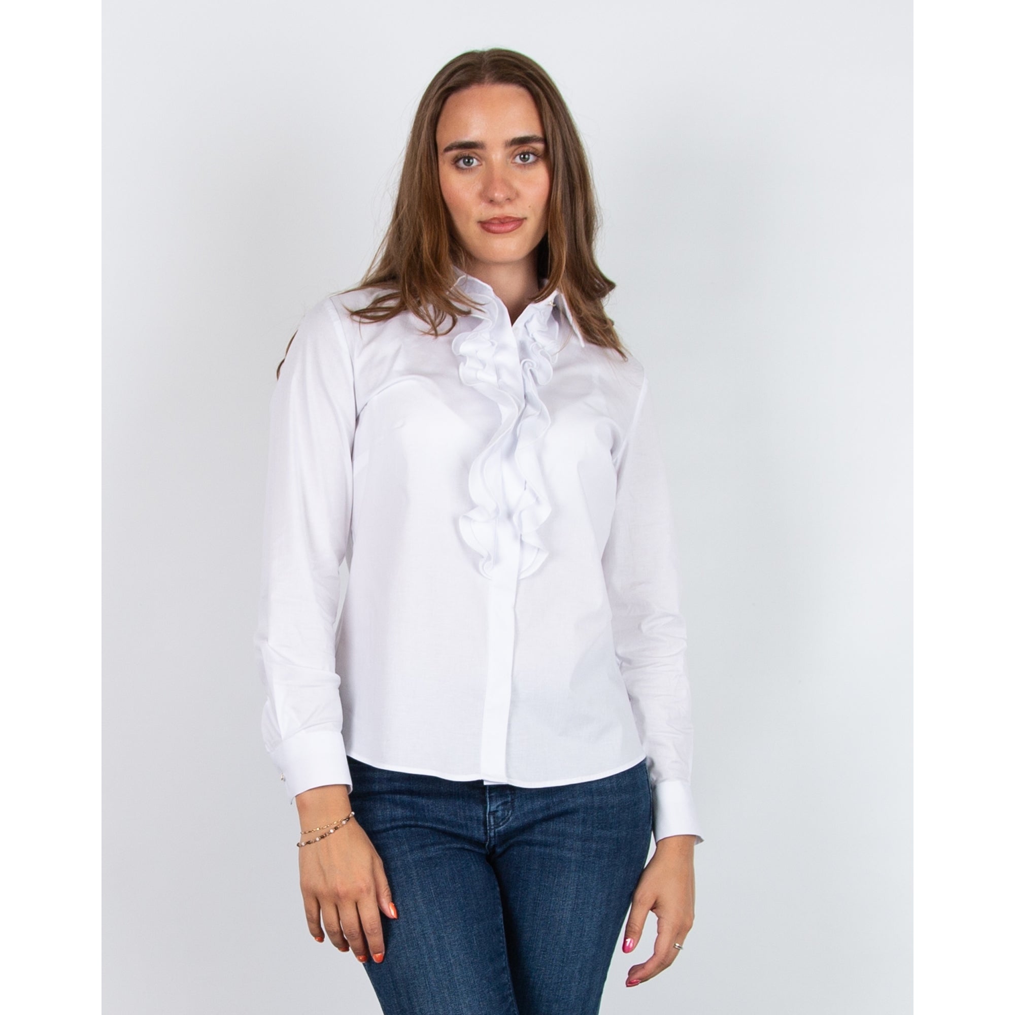 Bariloche Mantis Cotton Stretch Ruffle Front Shirt White