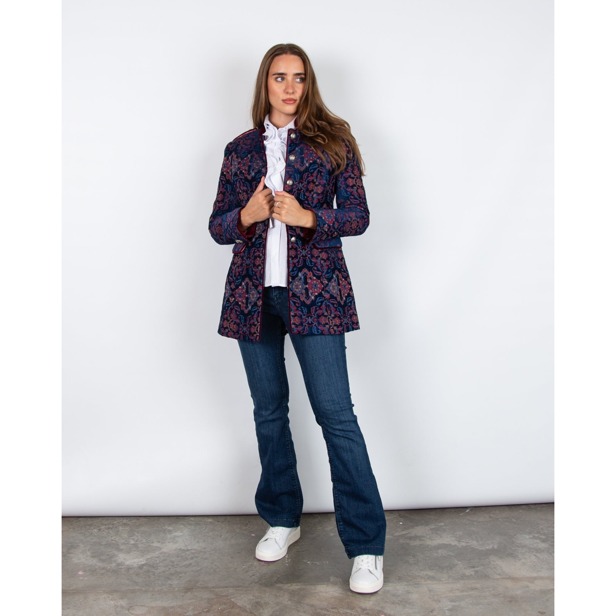 Bariloche Rozas Long Line Fitted Velvet Jacket Cream Piping Black