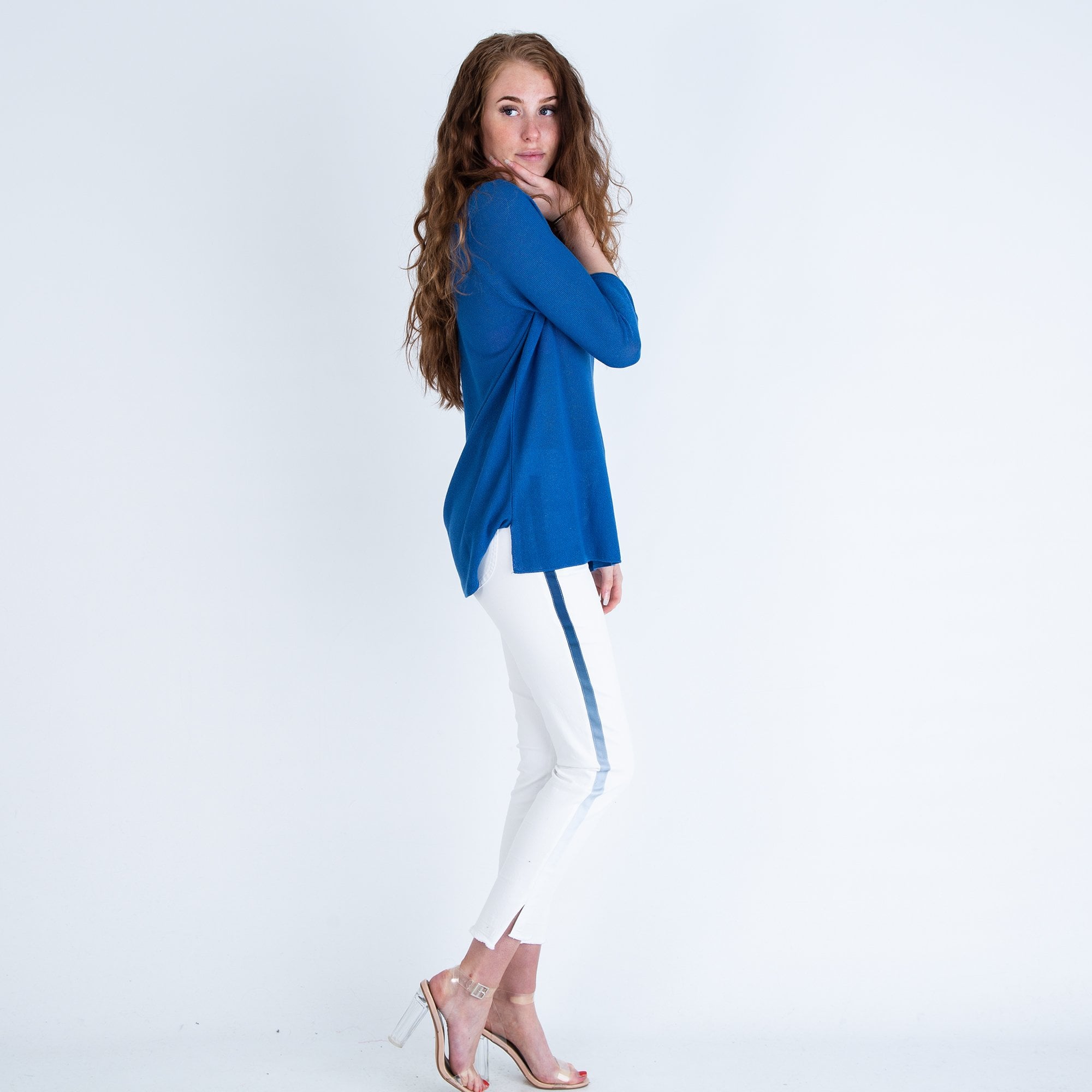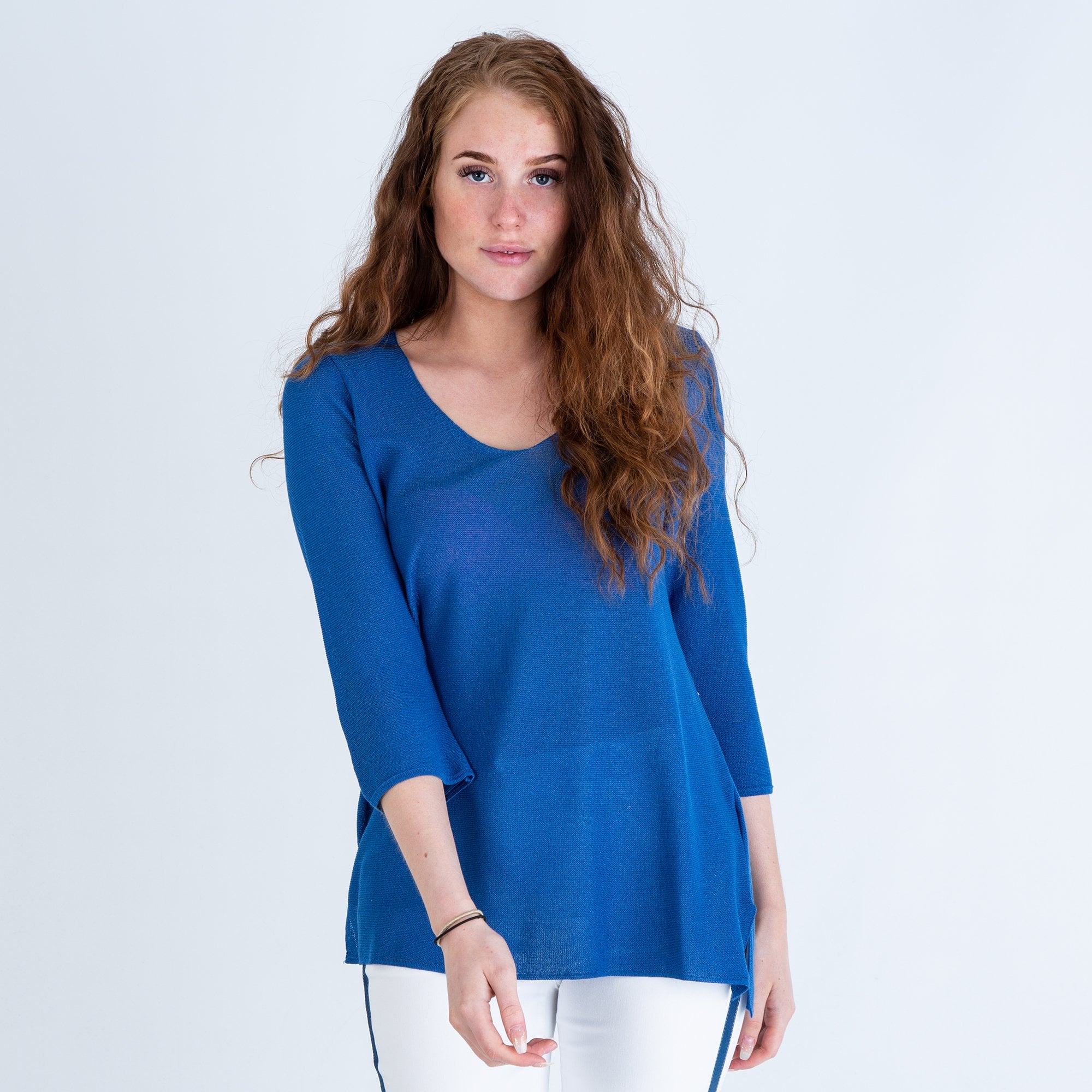 Bariloche Fine Lurex V Neck Jumper Cobalt