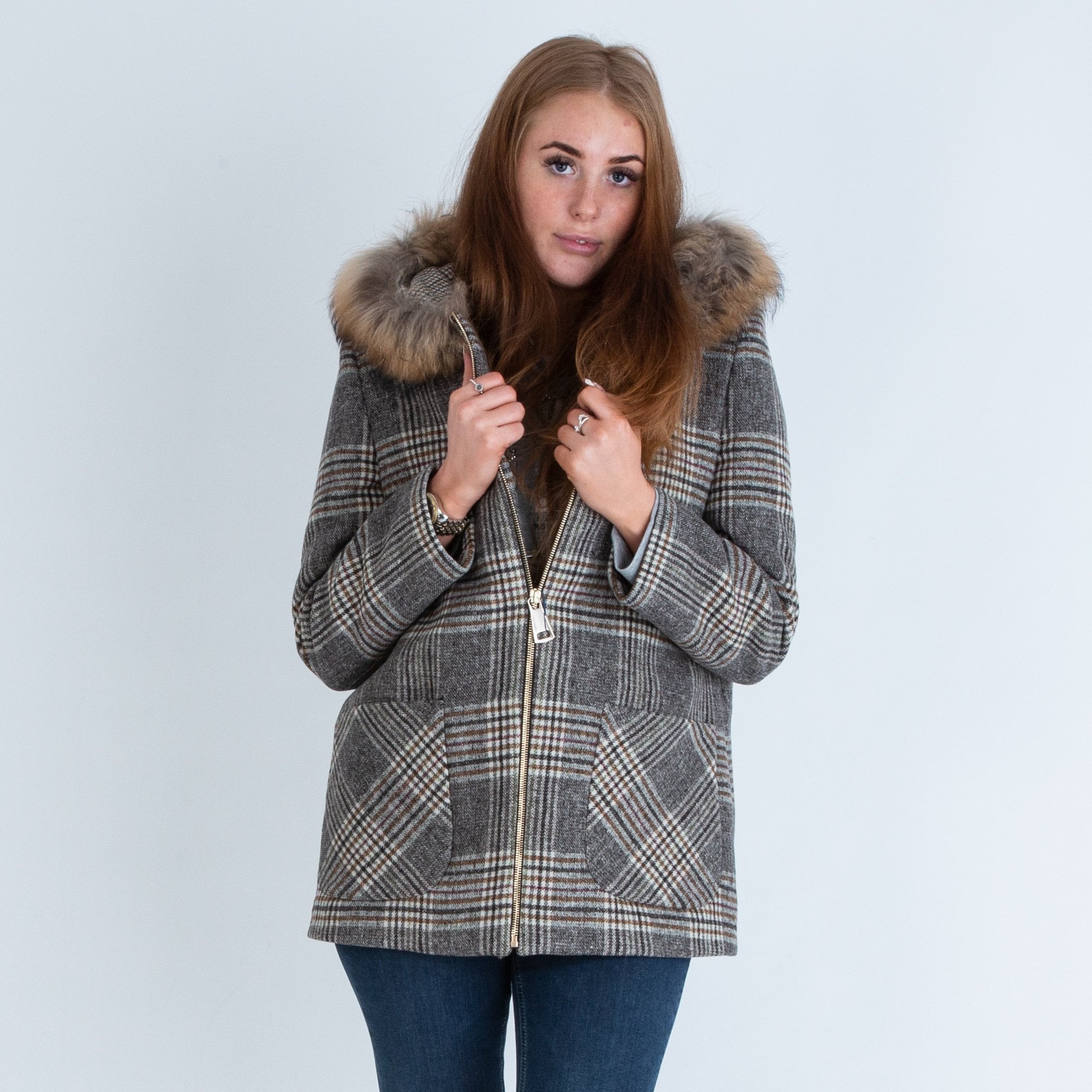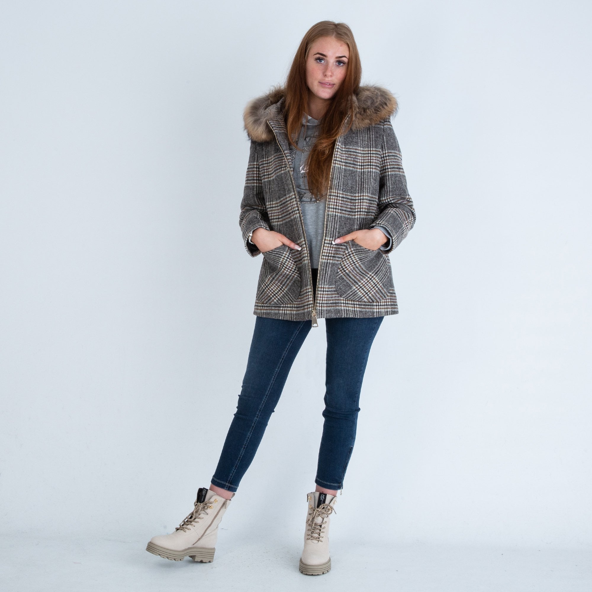 Bariloche Endasa Pocket Front Check Jacket With Fur Hood Beige/grey