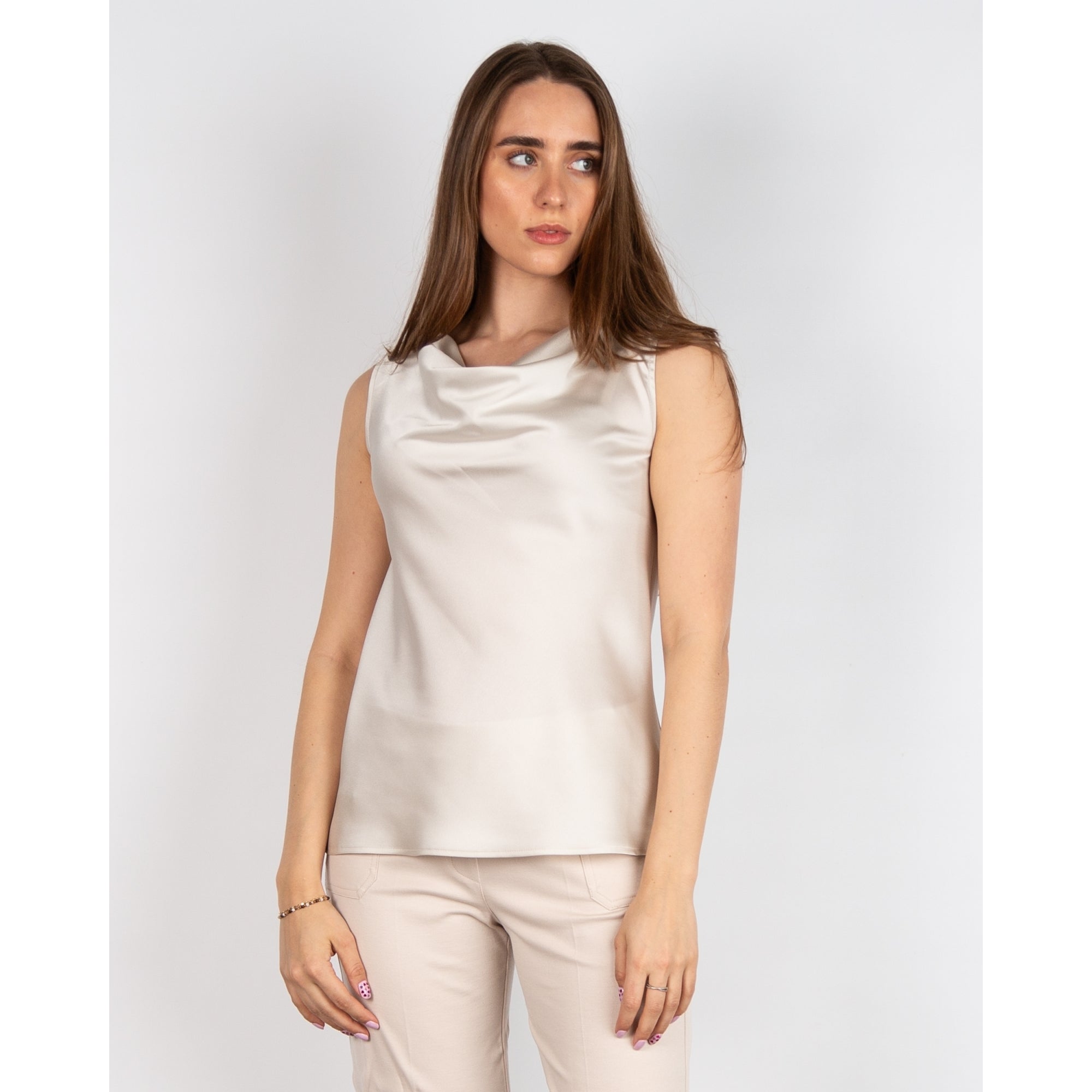 Bariloche Jerez Cowl Neck Sleeveless Satin Feel Top Oyster