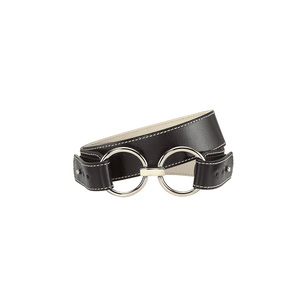 Riani GÜRTEL Interlocking Rings Shiny Leather Belt Black & Gold