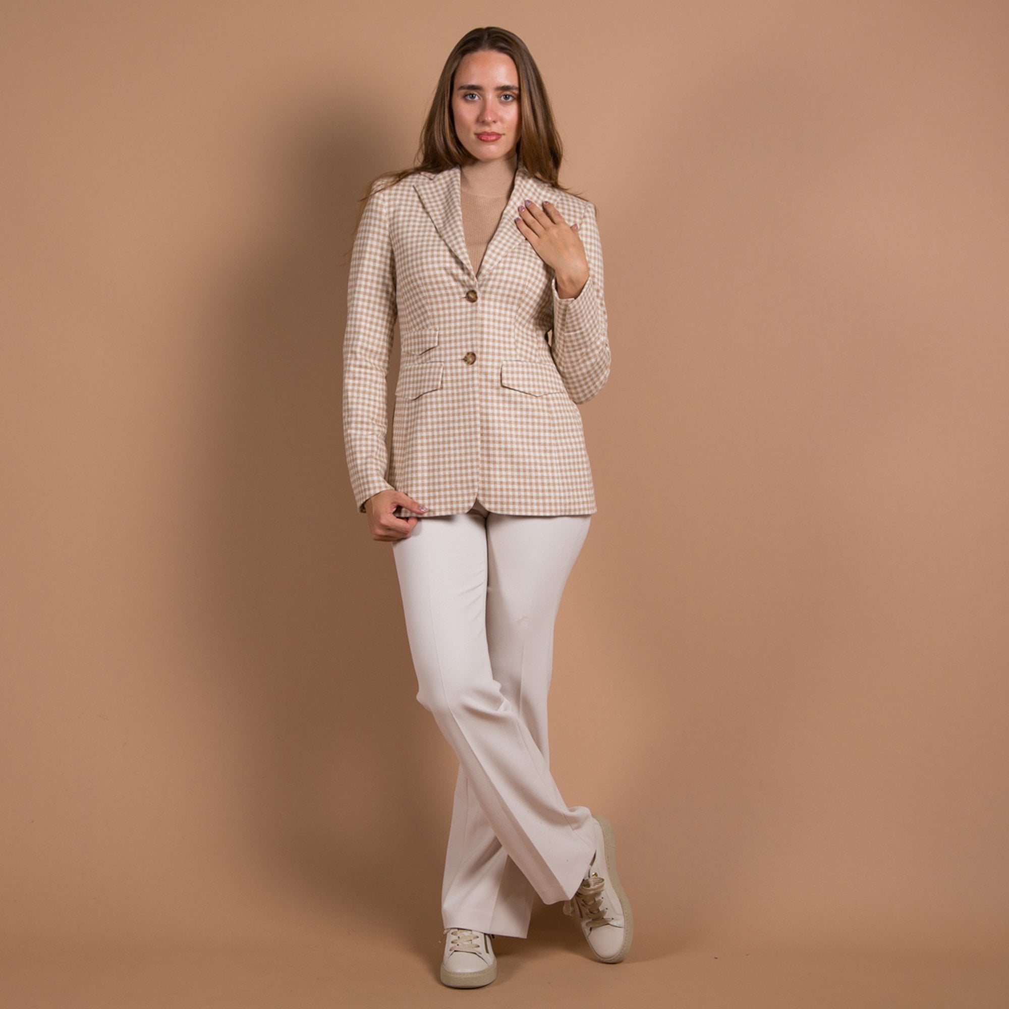 Bariloche Sevilla Herringbone Check Blazer With Velvet Trim Blue/cream