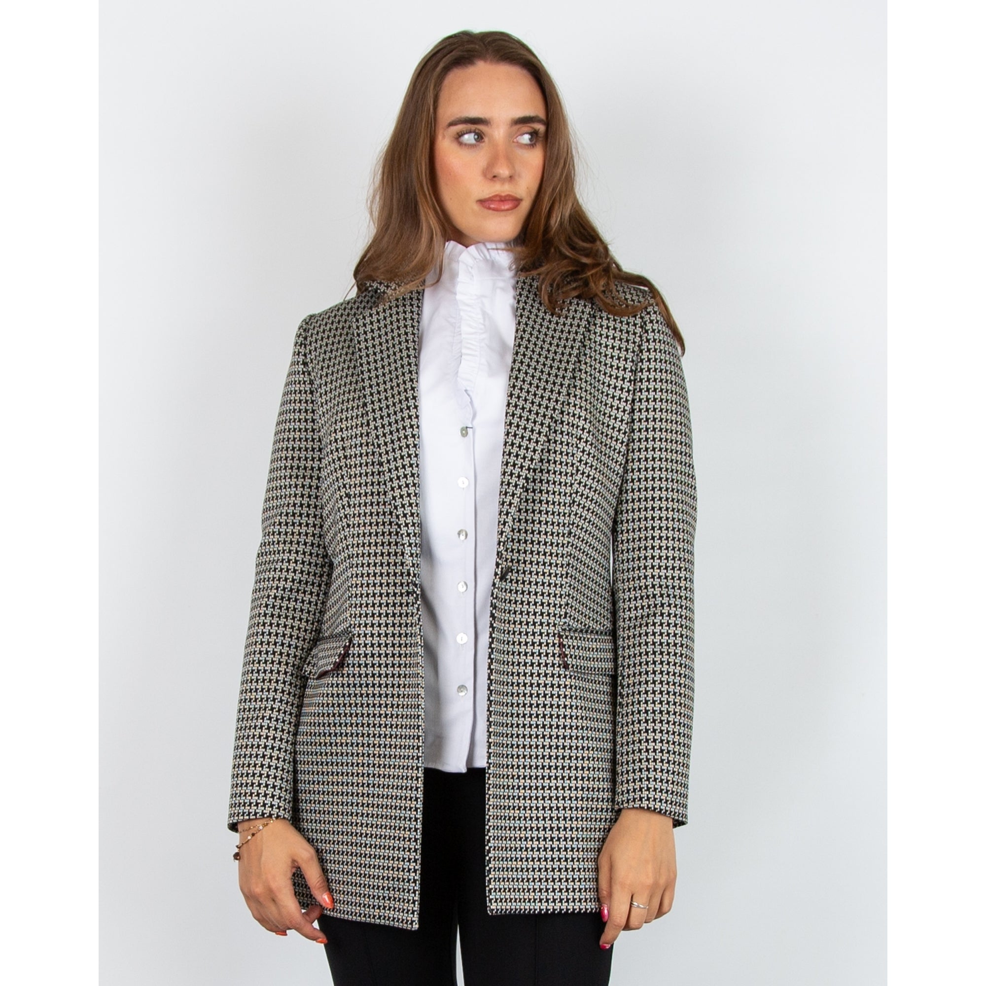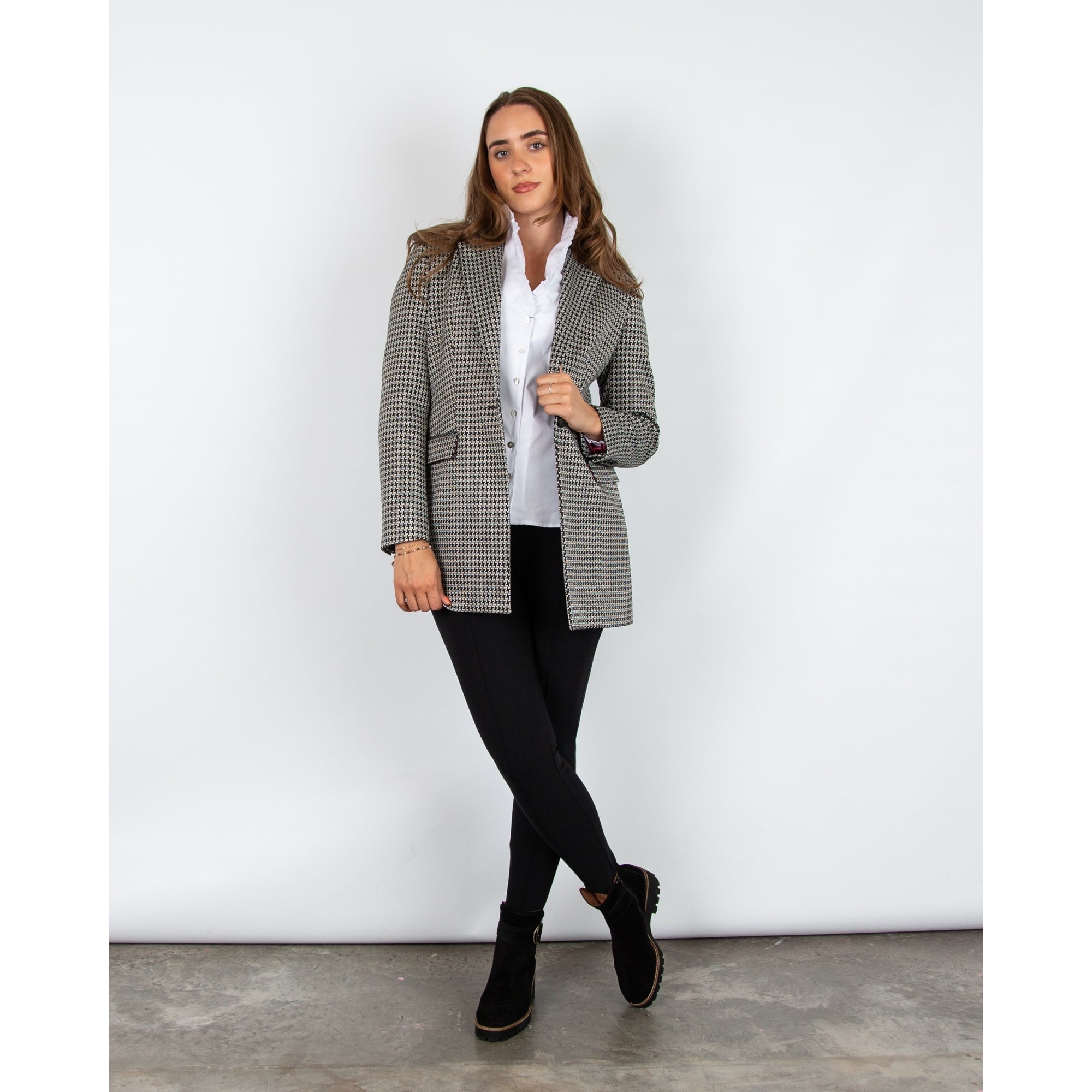 Bariloche Alanis Square Houndstooth Print Long Line Blazer Black/white