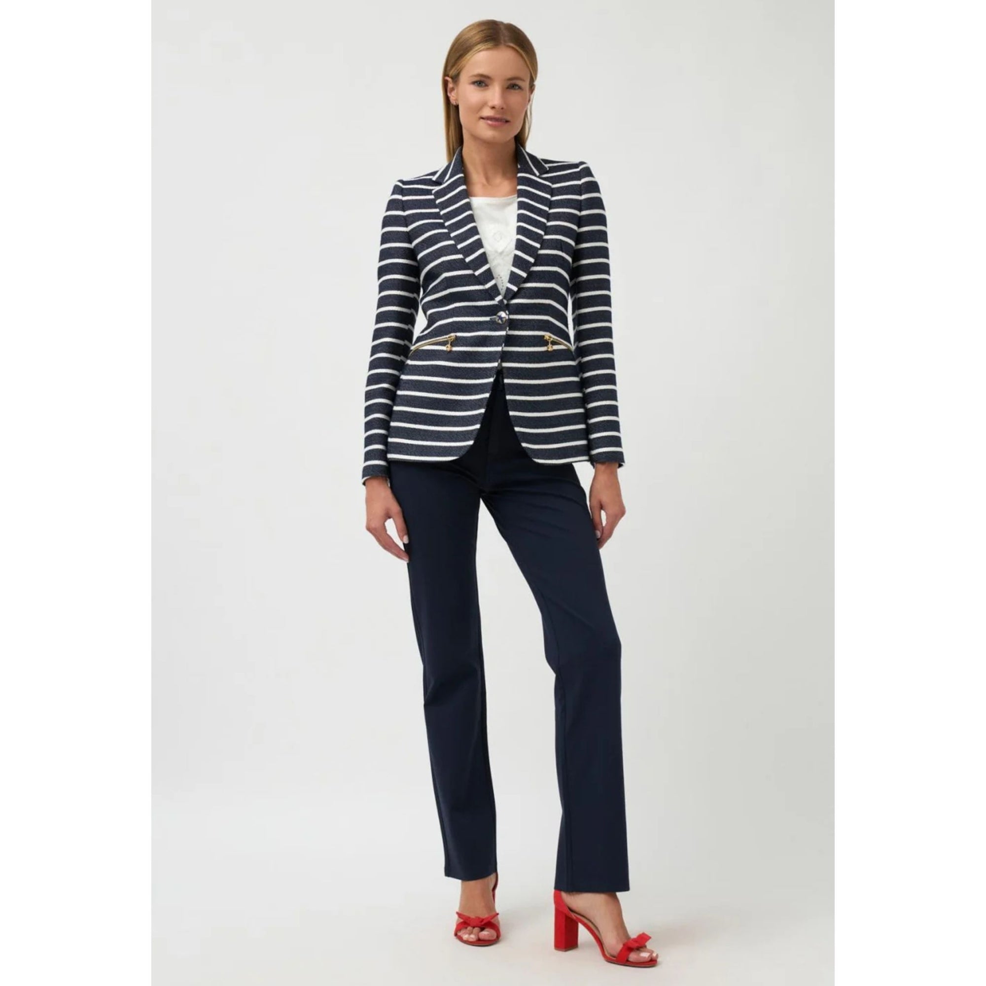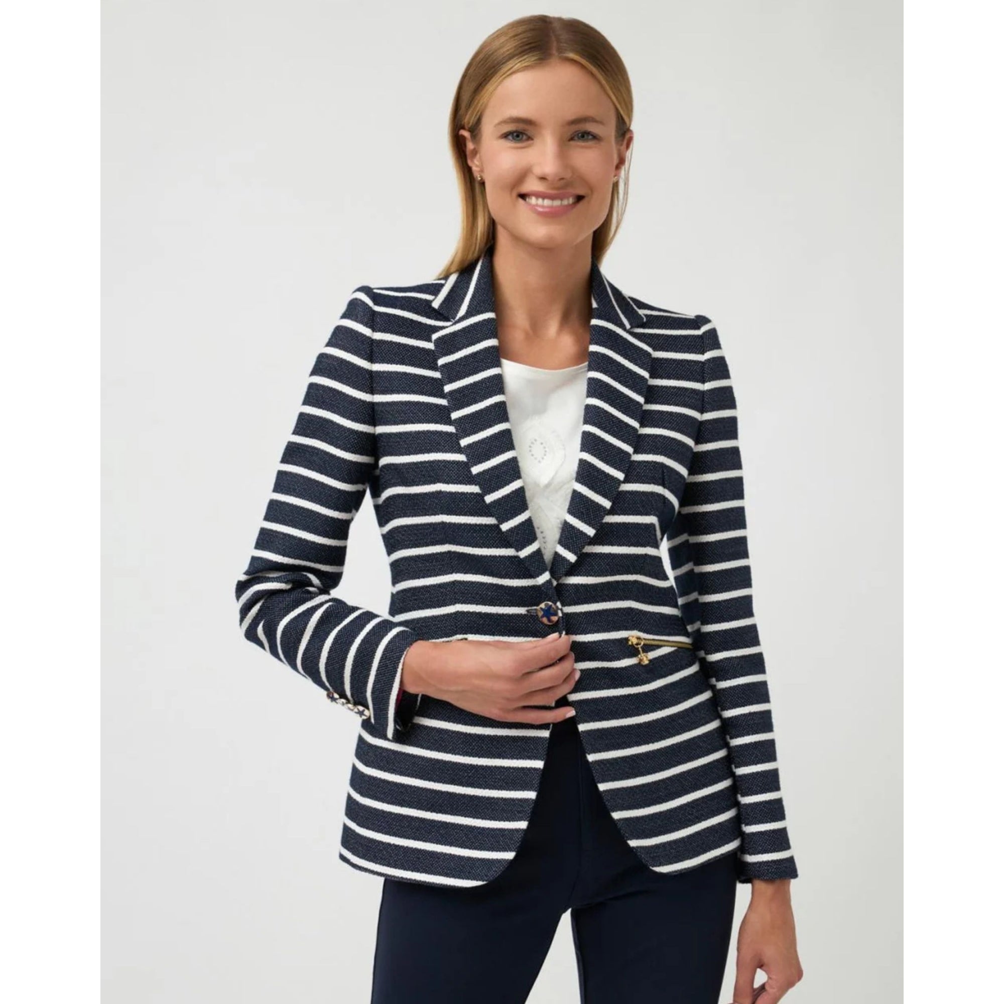 Bariloche Casares Woven Stripe Blazer With Gold Hardware Navy/off White