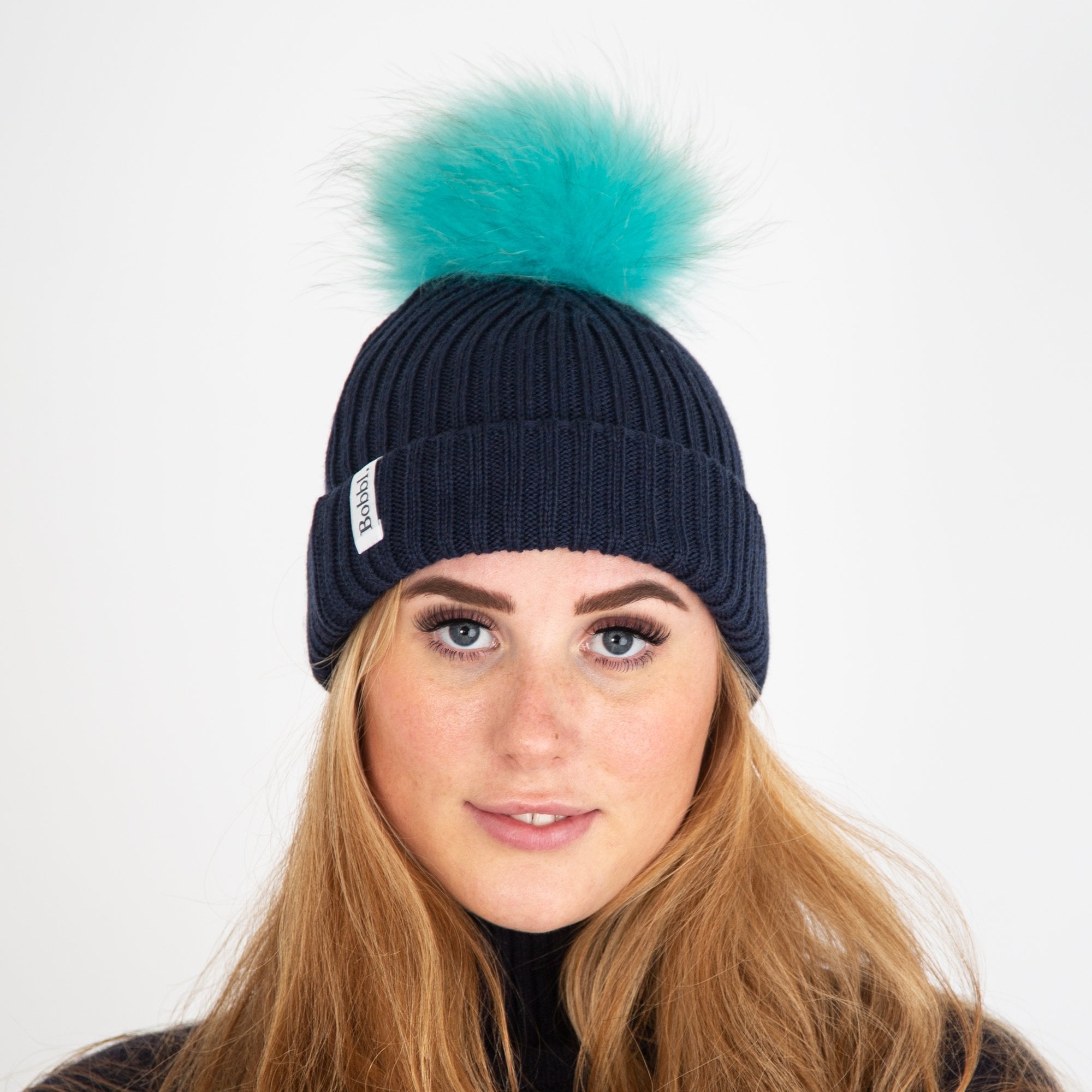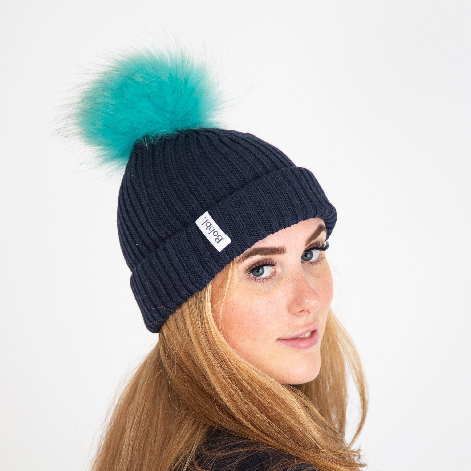 Bobbl Knit Hat With Pom Pom Navy/Turquoise