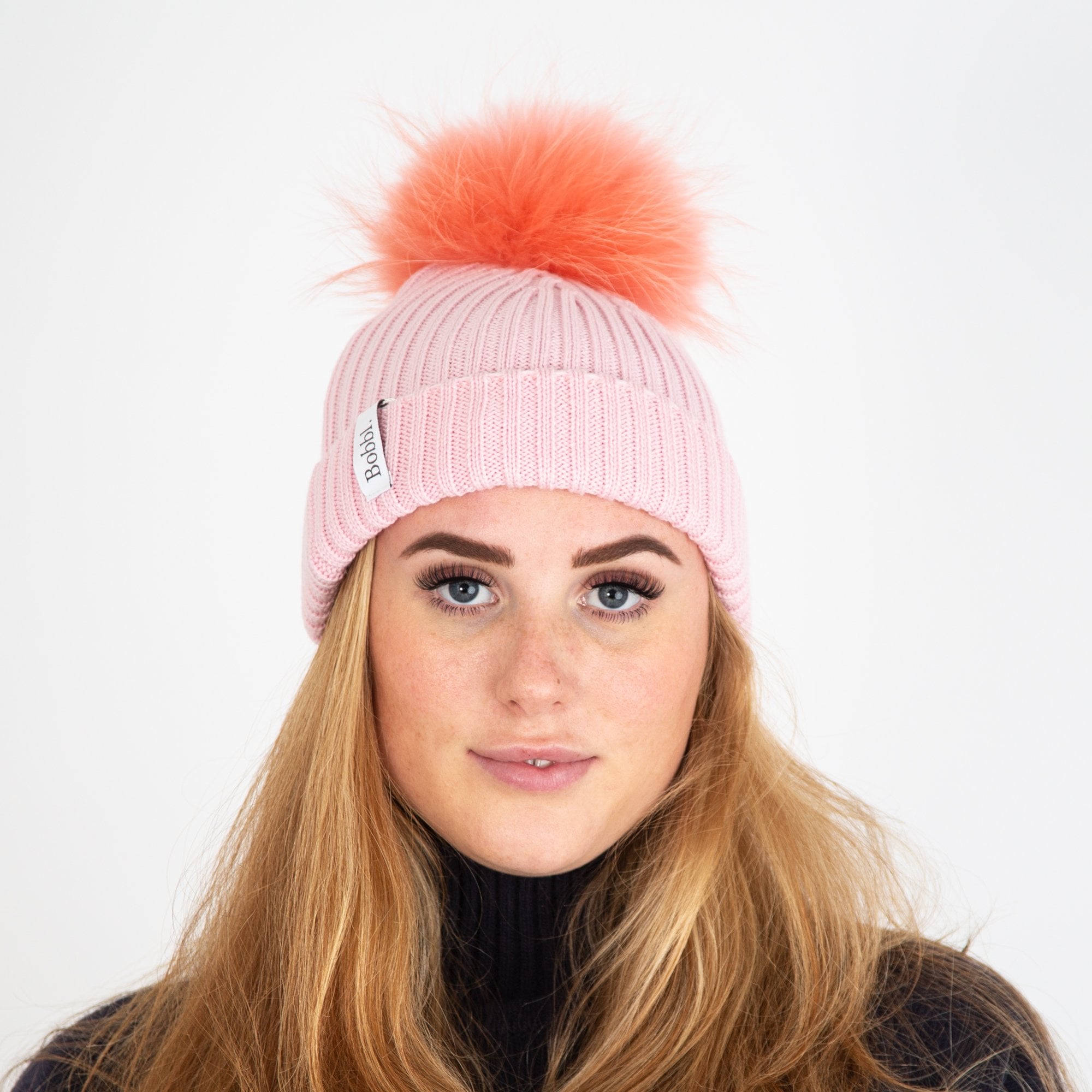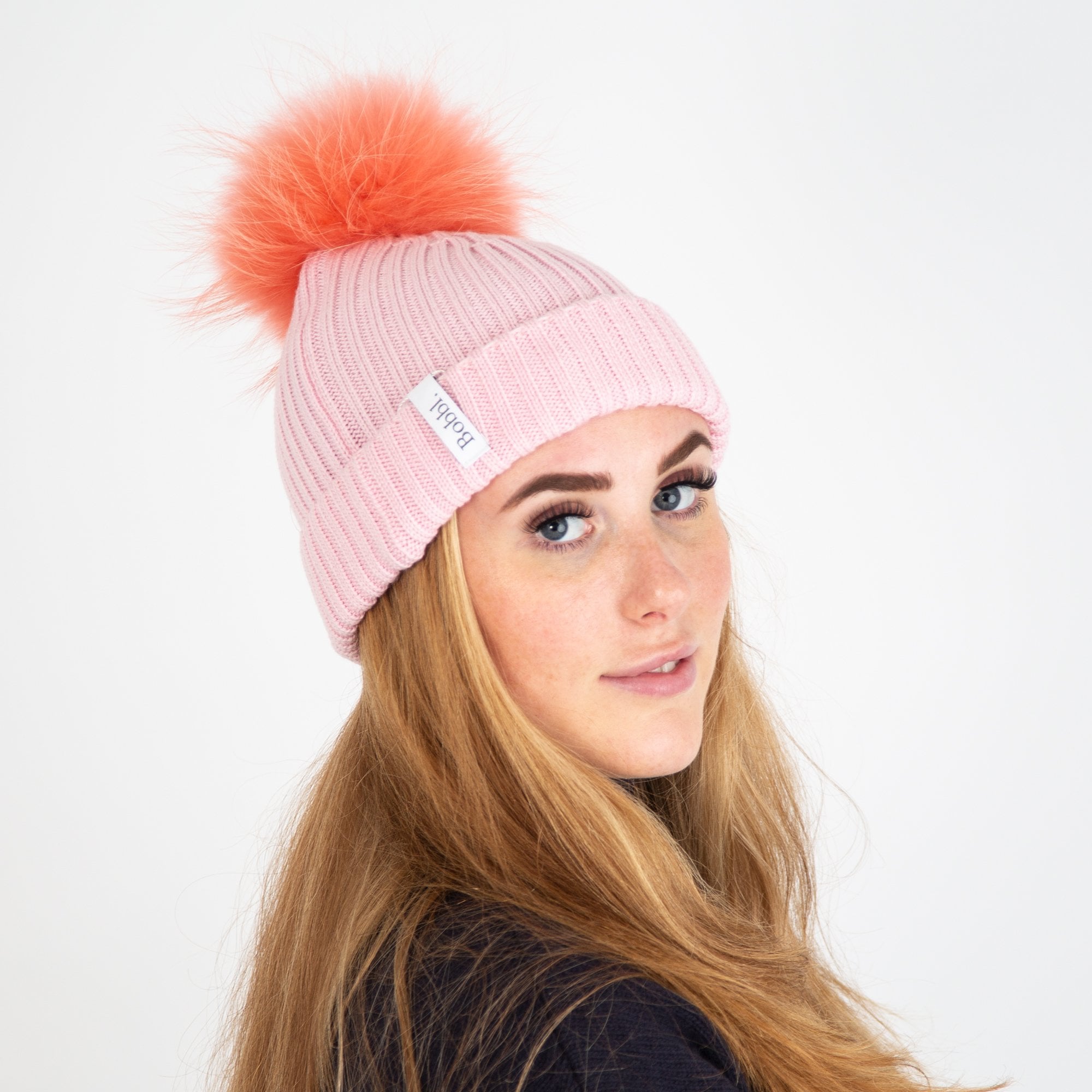 Bobbl Knit Hat With Pom Pom Pale Pink/coral