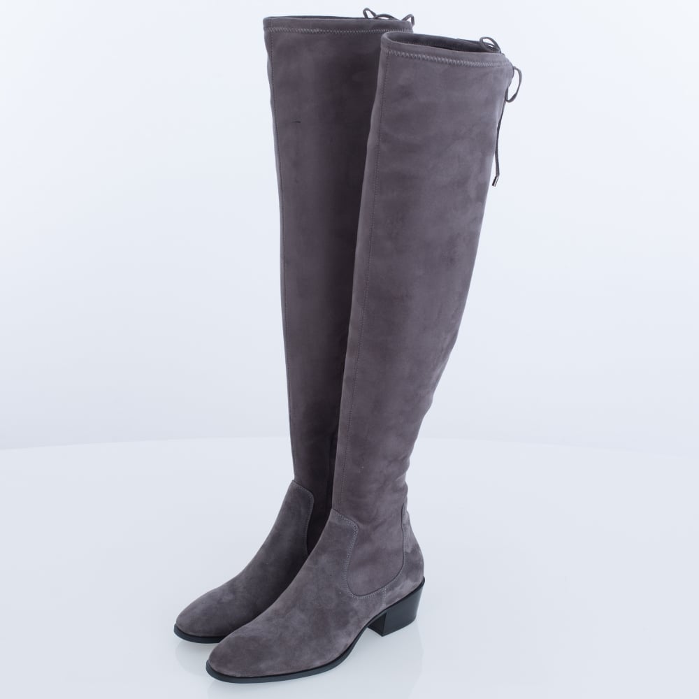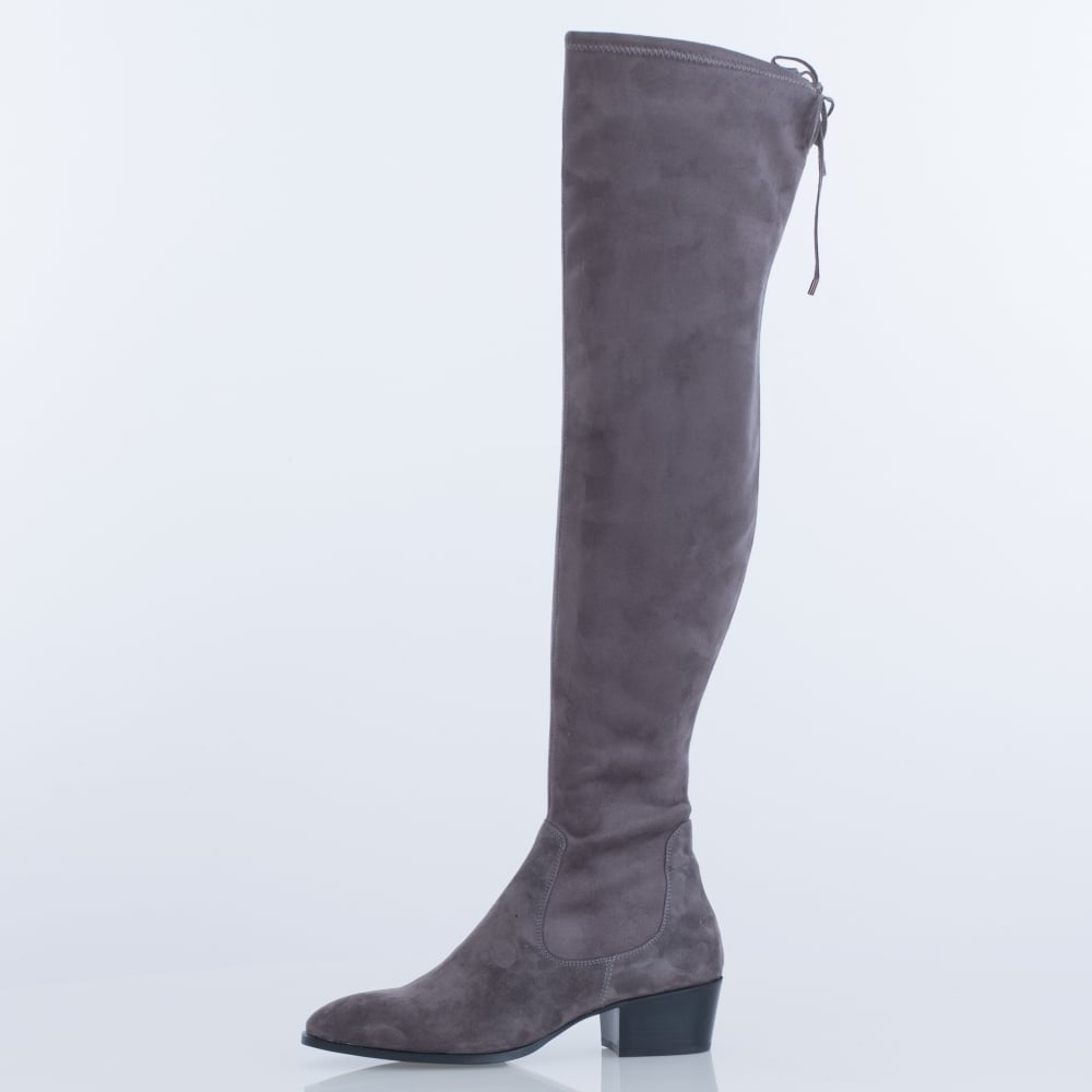 Lola Cruz Hawking Over The Knee Suede Tie Back Boot Grey