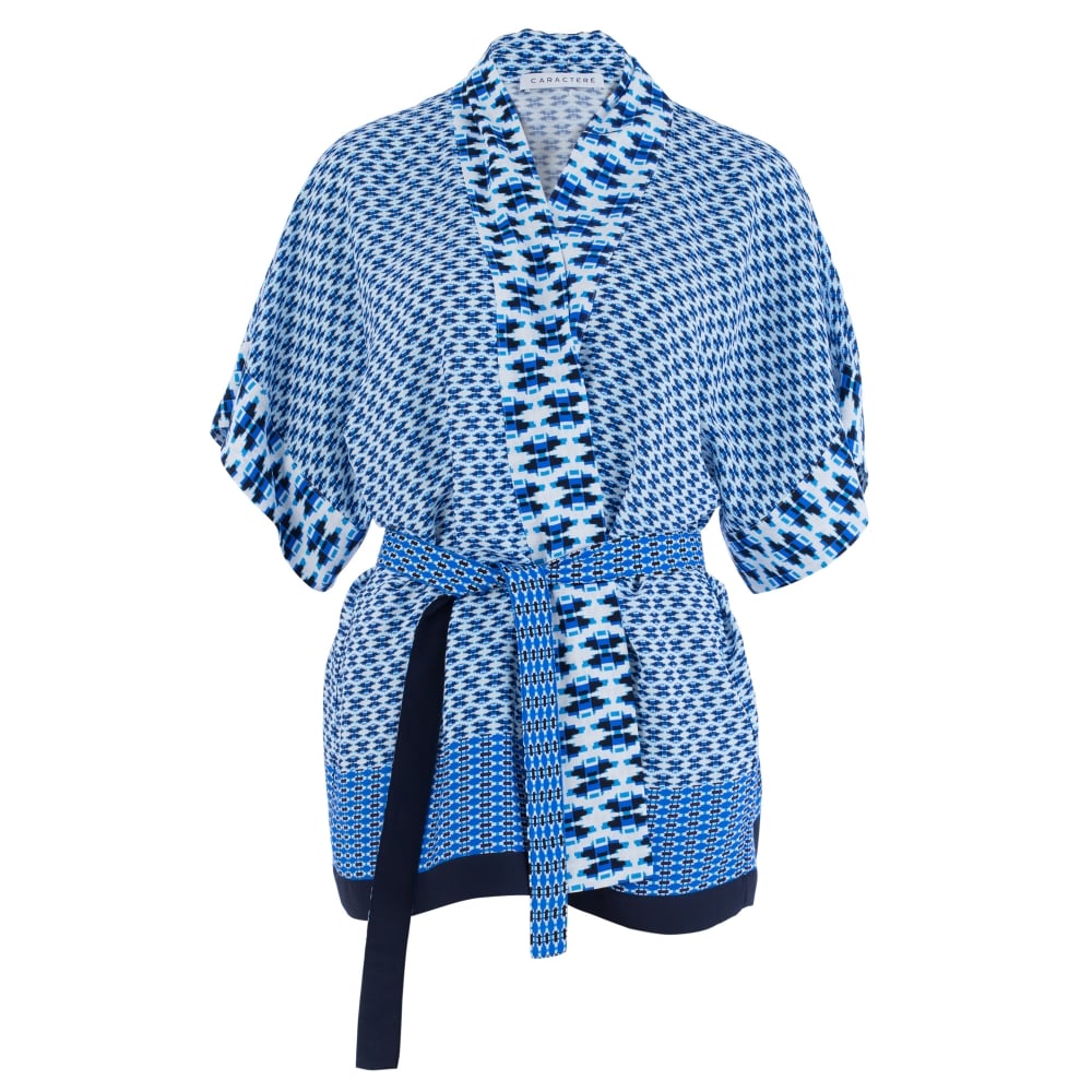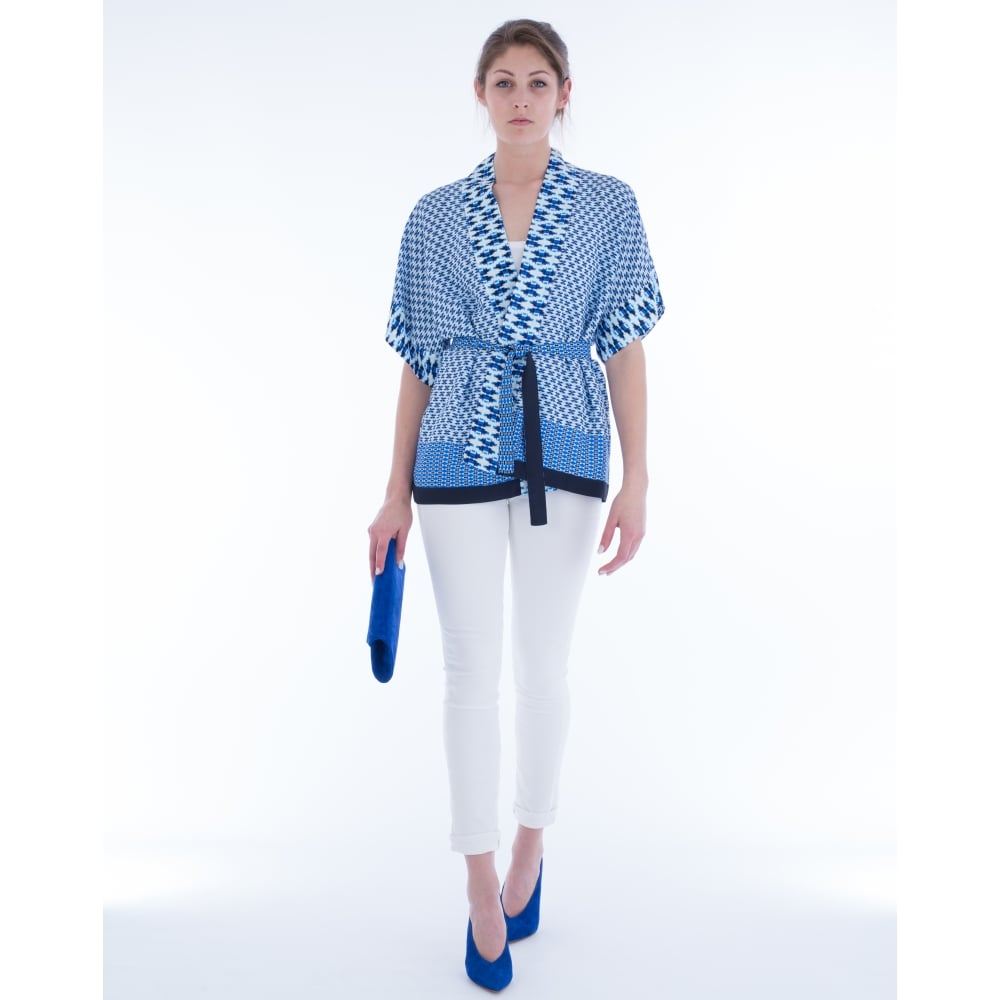 Caractere Printed Kimono Wrap Jacket Blue/White