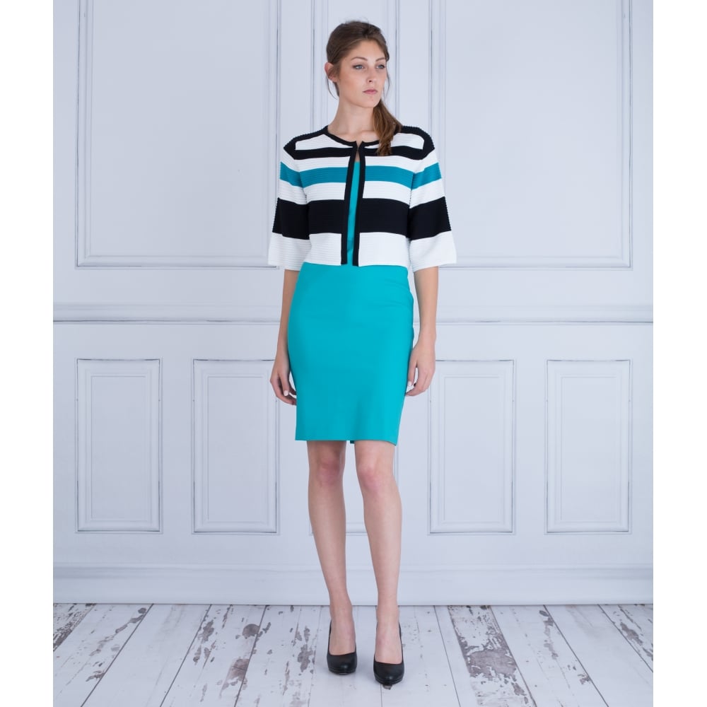 Caractere Square Neck Zip Back Stretch Dress Light Teal