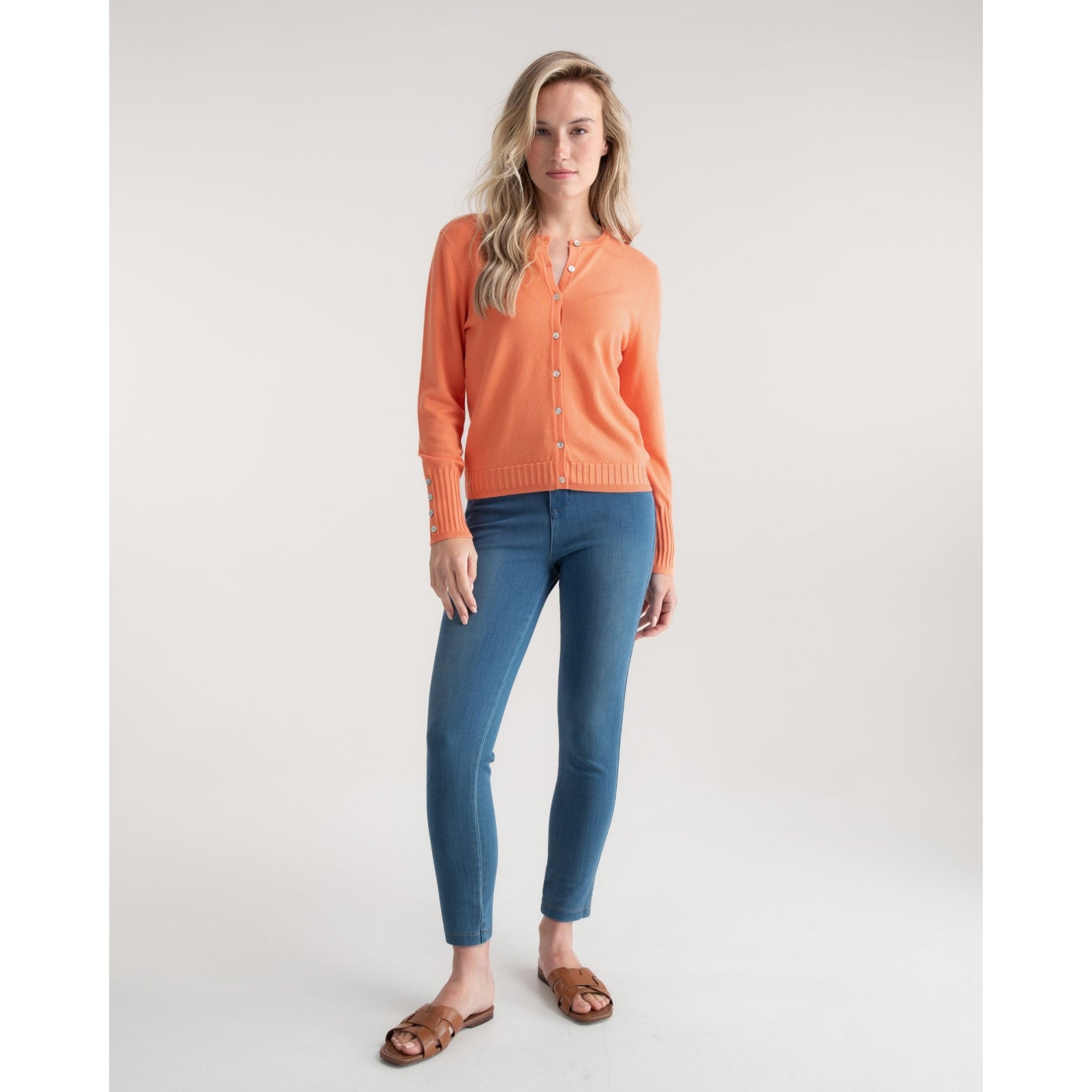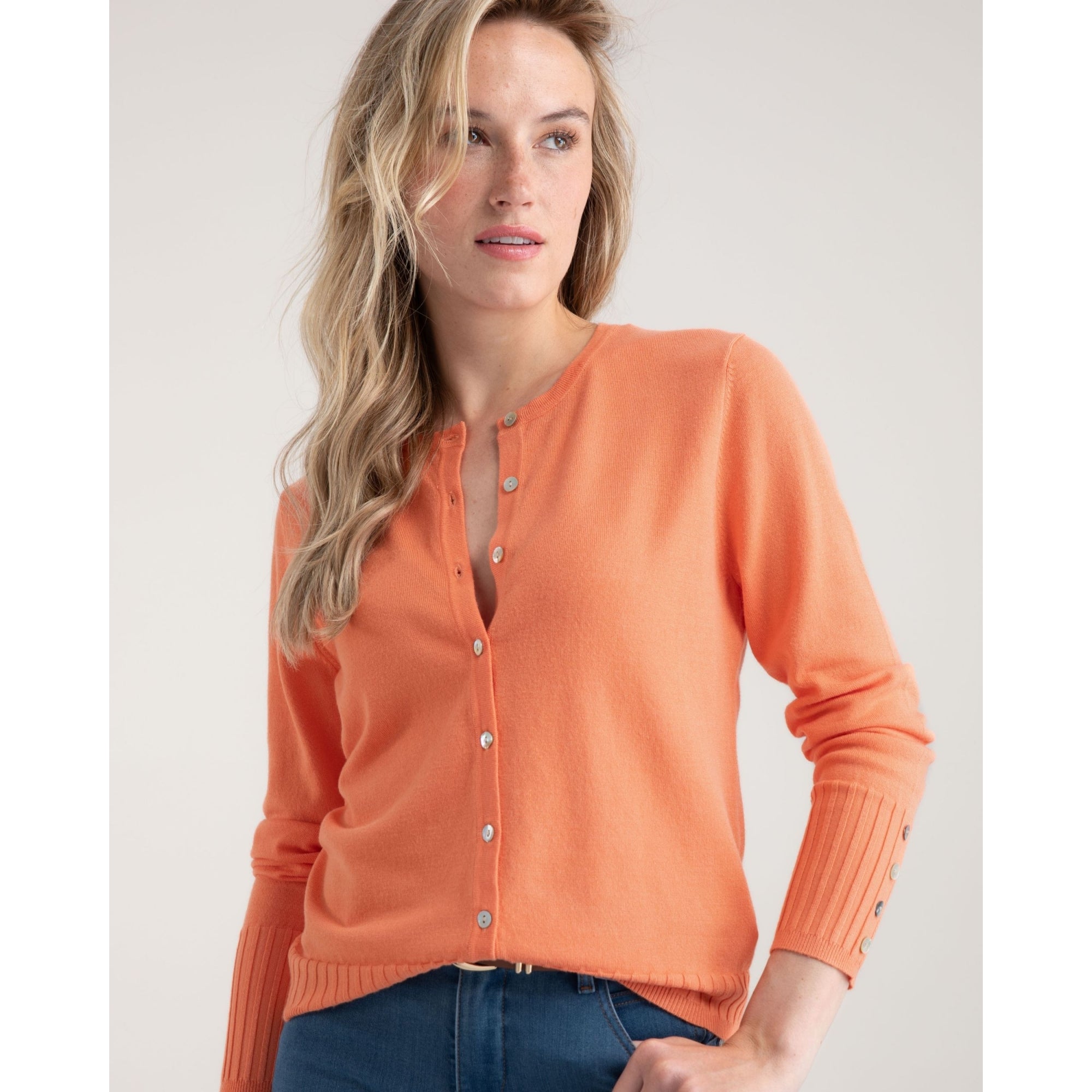 Marble Fashions Button Down Fine Knit Cardigan With Rib Trim Peach 191