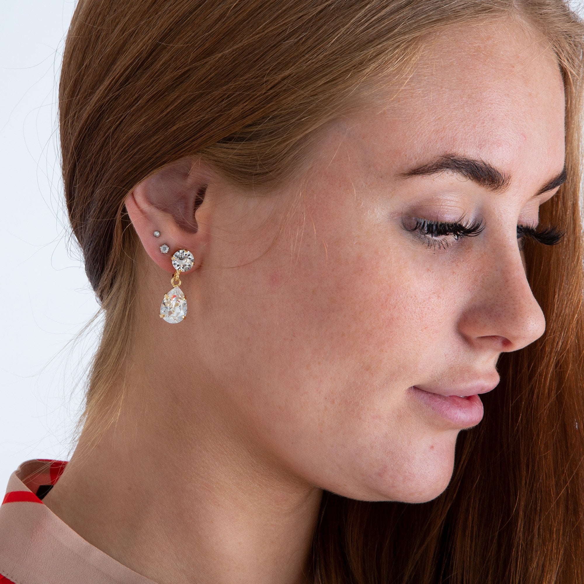 Caroline Svedbom Mini Drop Stud Crystal Clip On Earring Crystal/gold