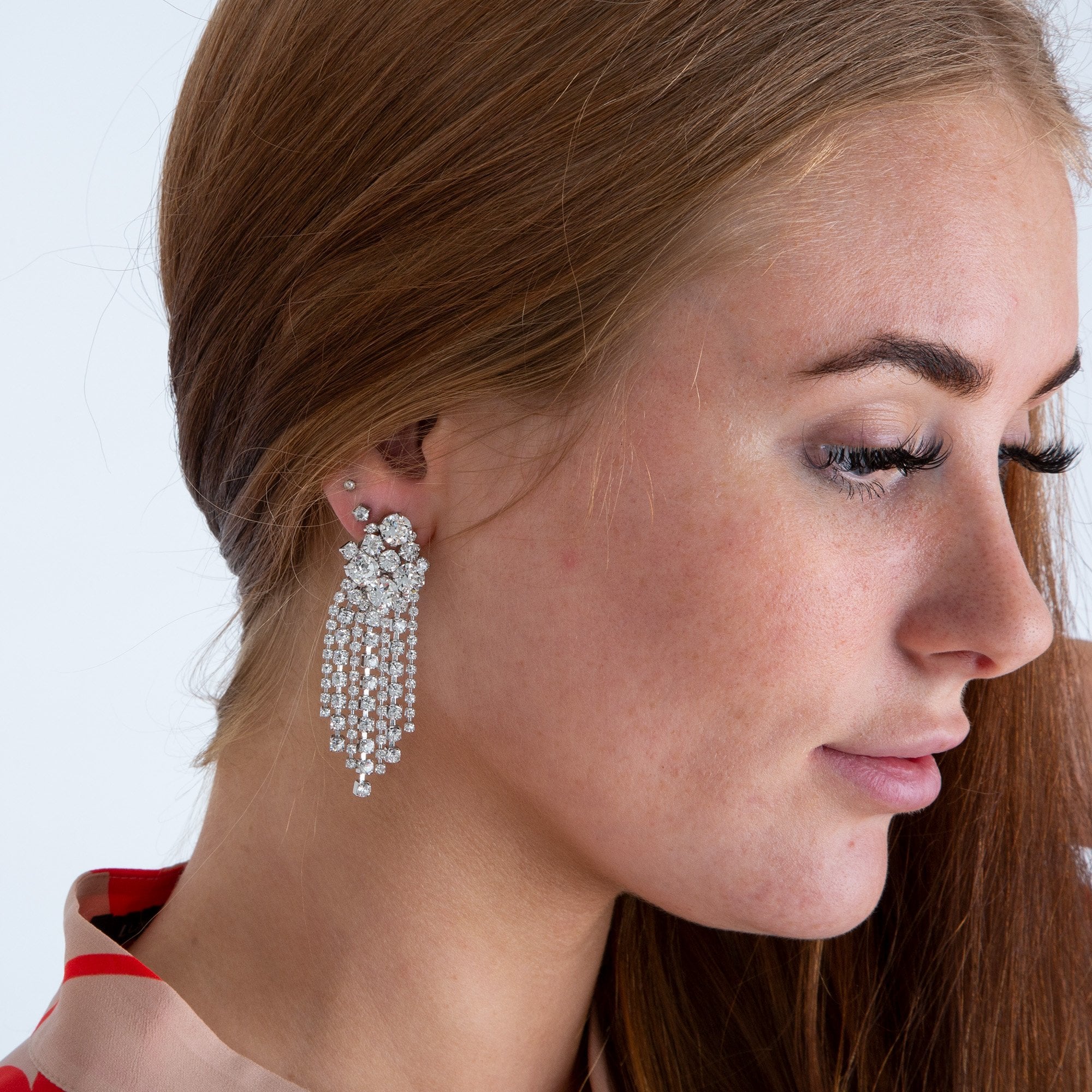 Caroline Svedbom Elissa Multi Tassel Crystal Clip On Earrings Crystal/silver
