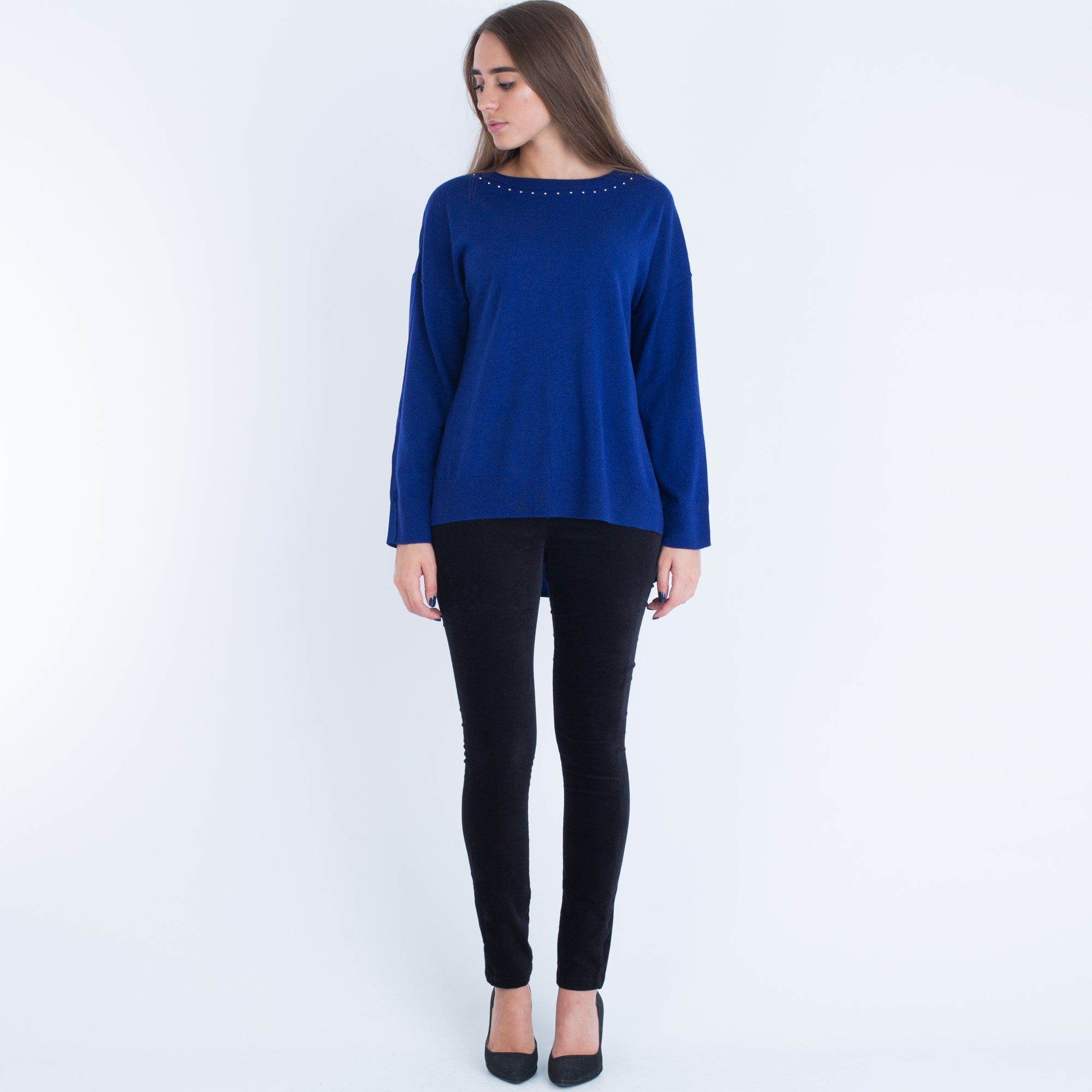 Marc Cain Round Neck Silk Back Jumper With Studded Neck Cobalt