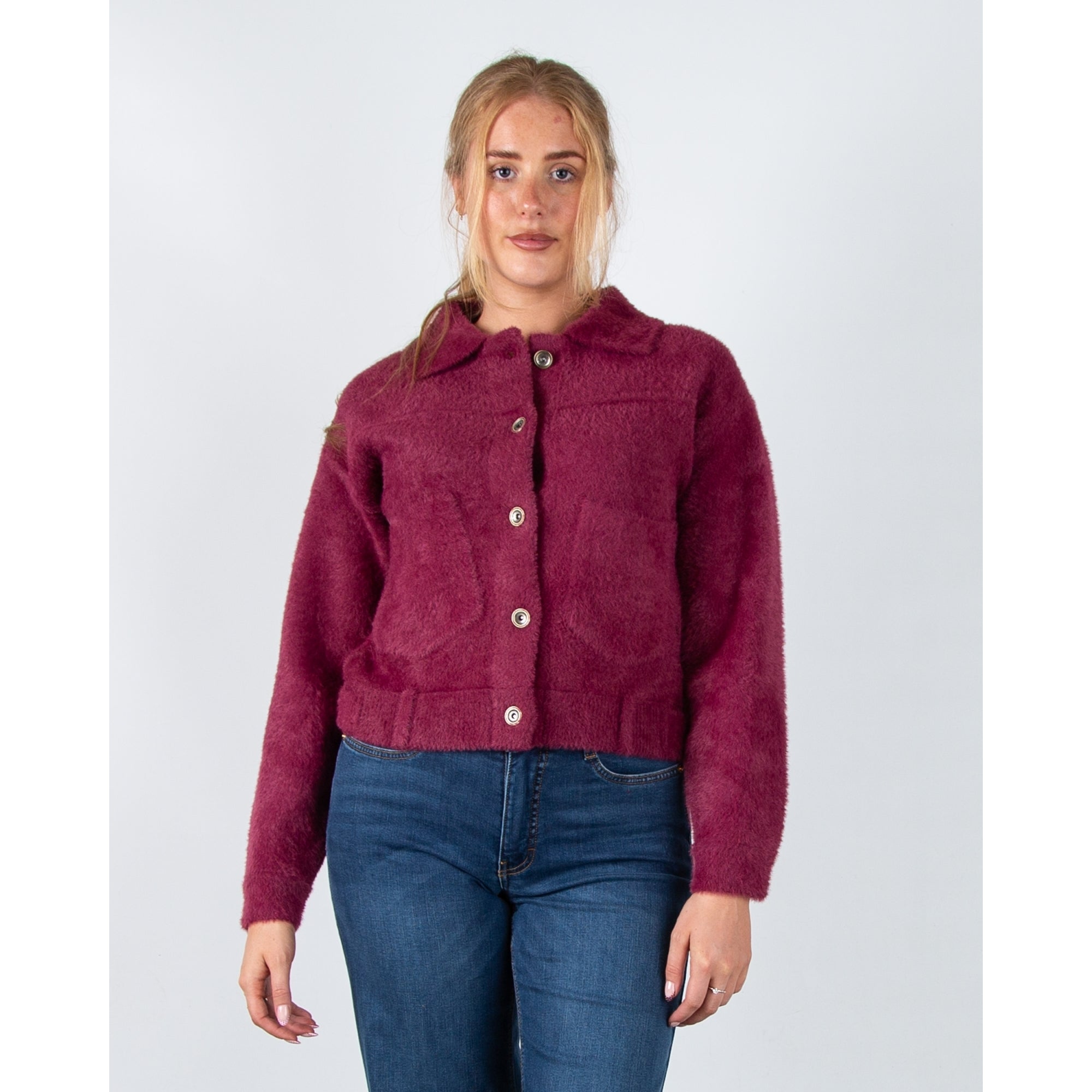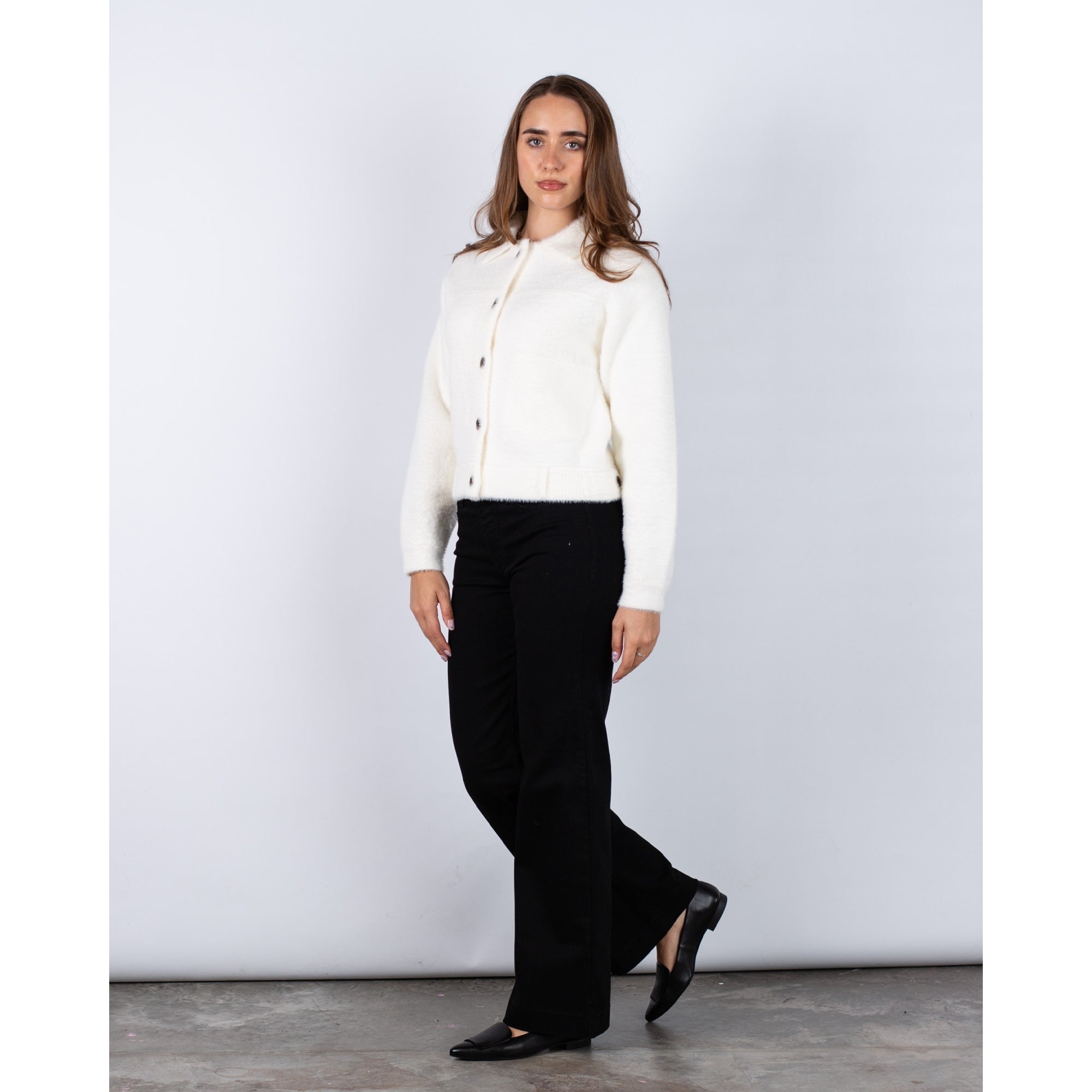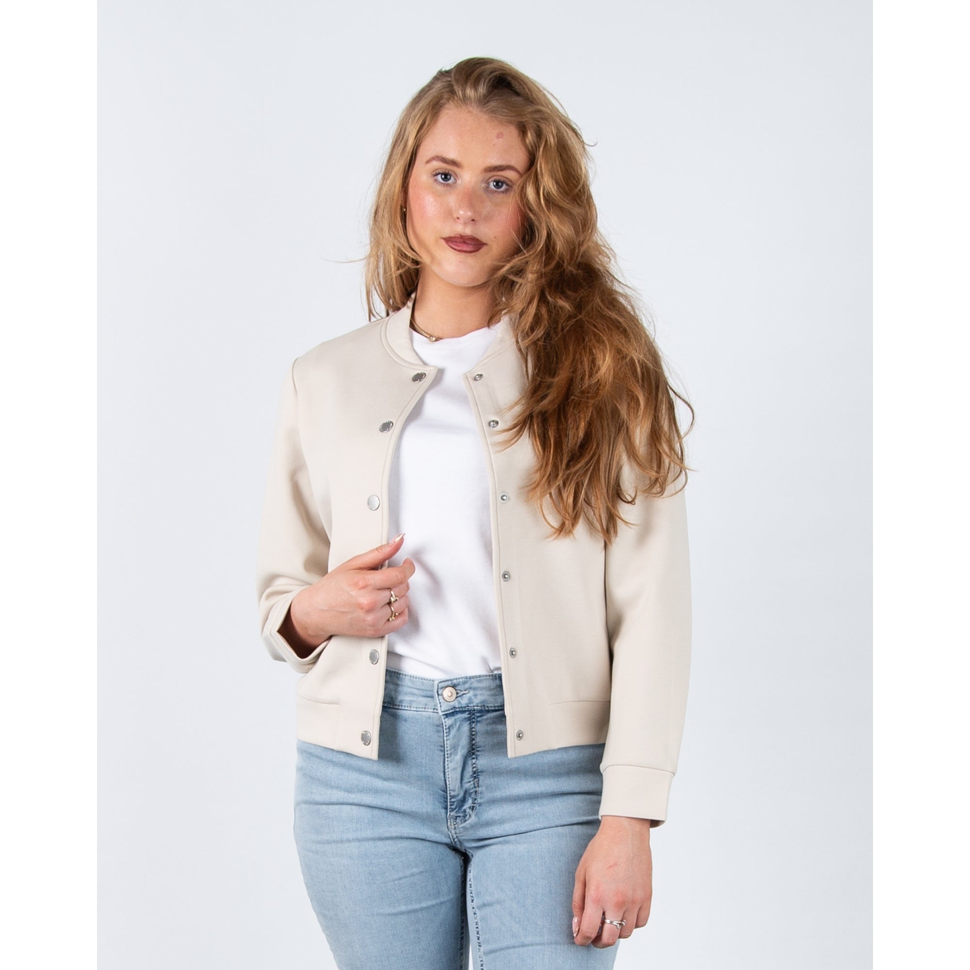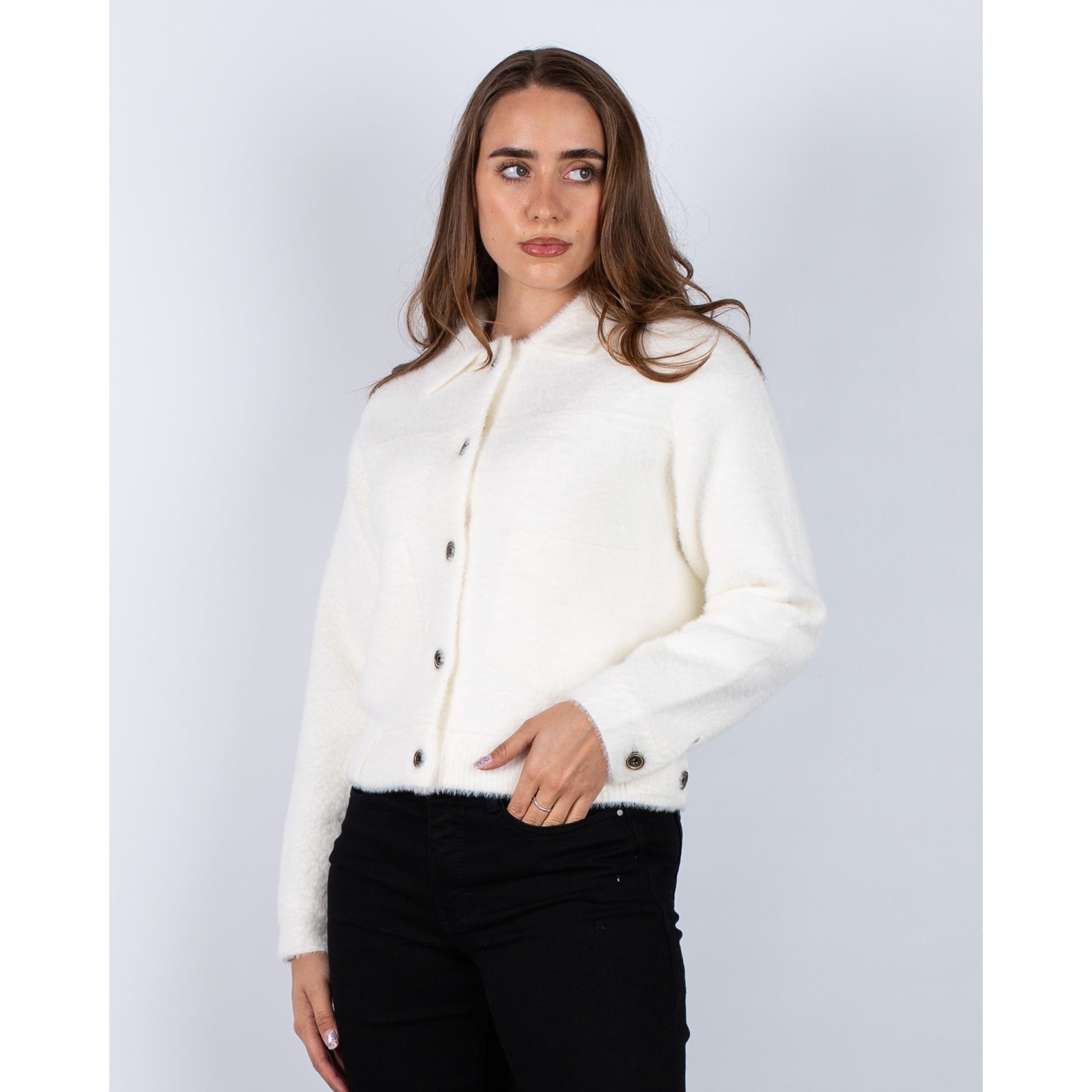 Rino & Pelle Bubbly Button Back Pocket Front Soft Boxy Jacket Snow White
