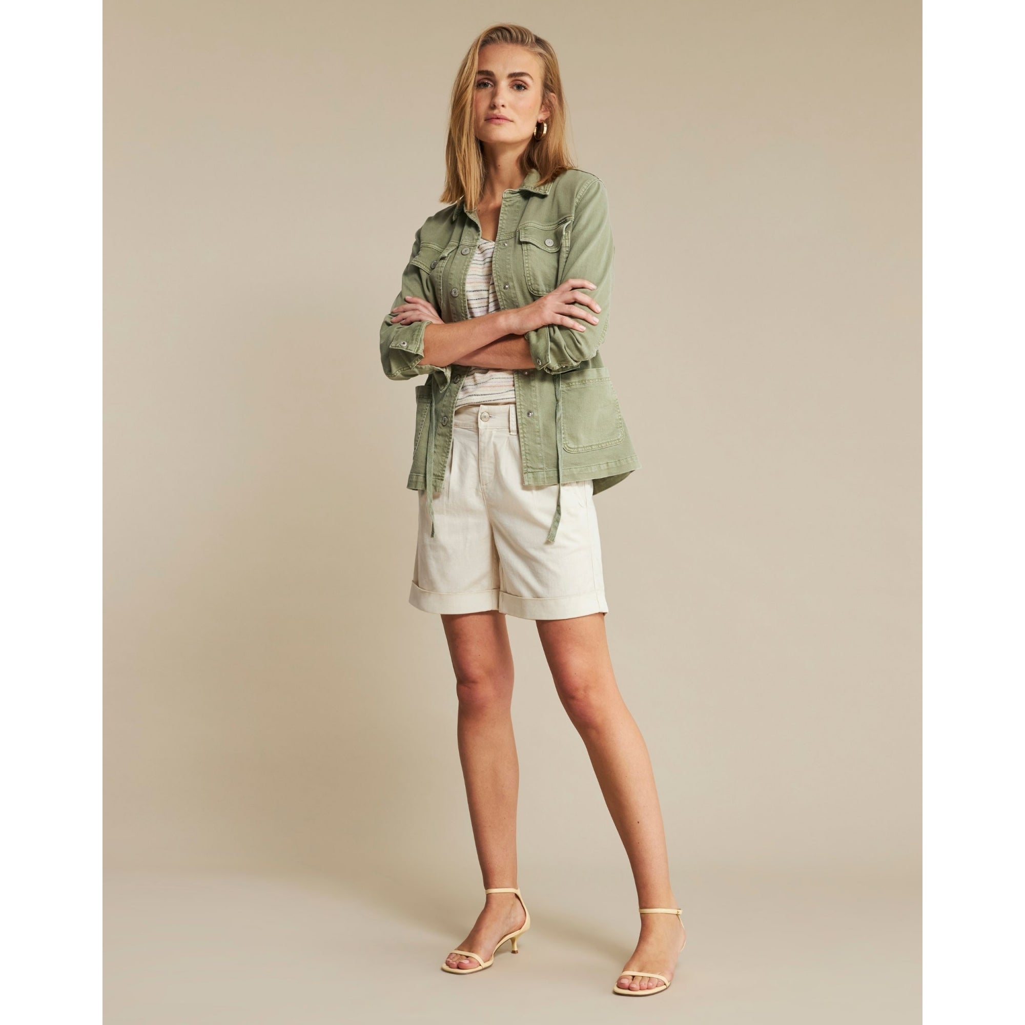 Pomodoro Bengaline Button Down Jean Jacket Cream