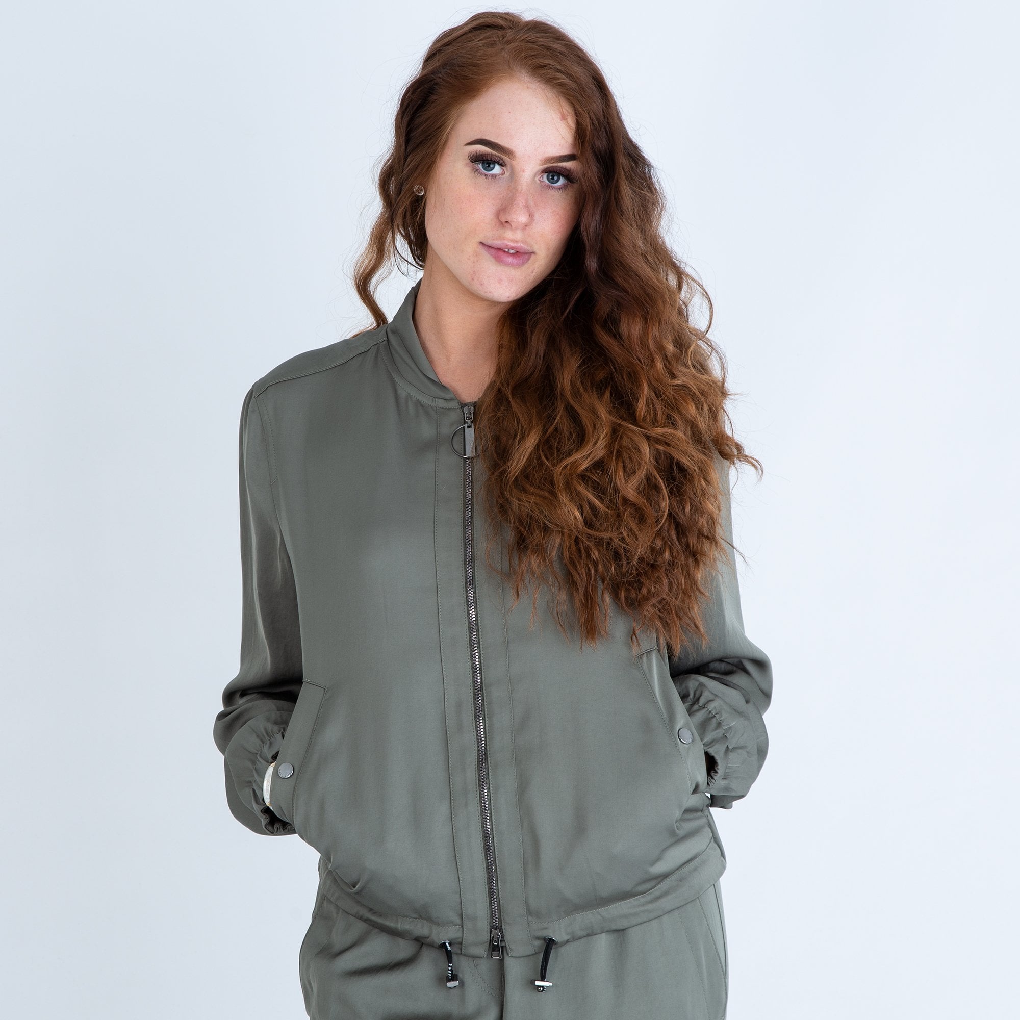 Marc Cain Satin Bomber Jacket Khaki