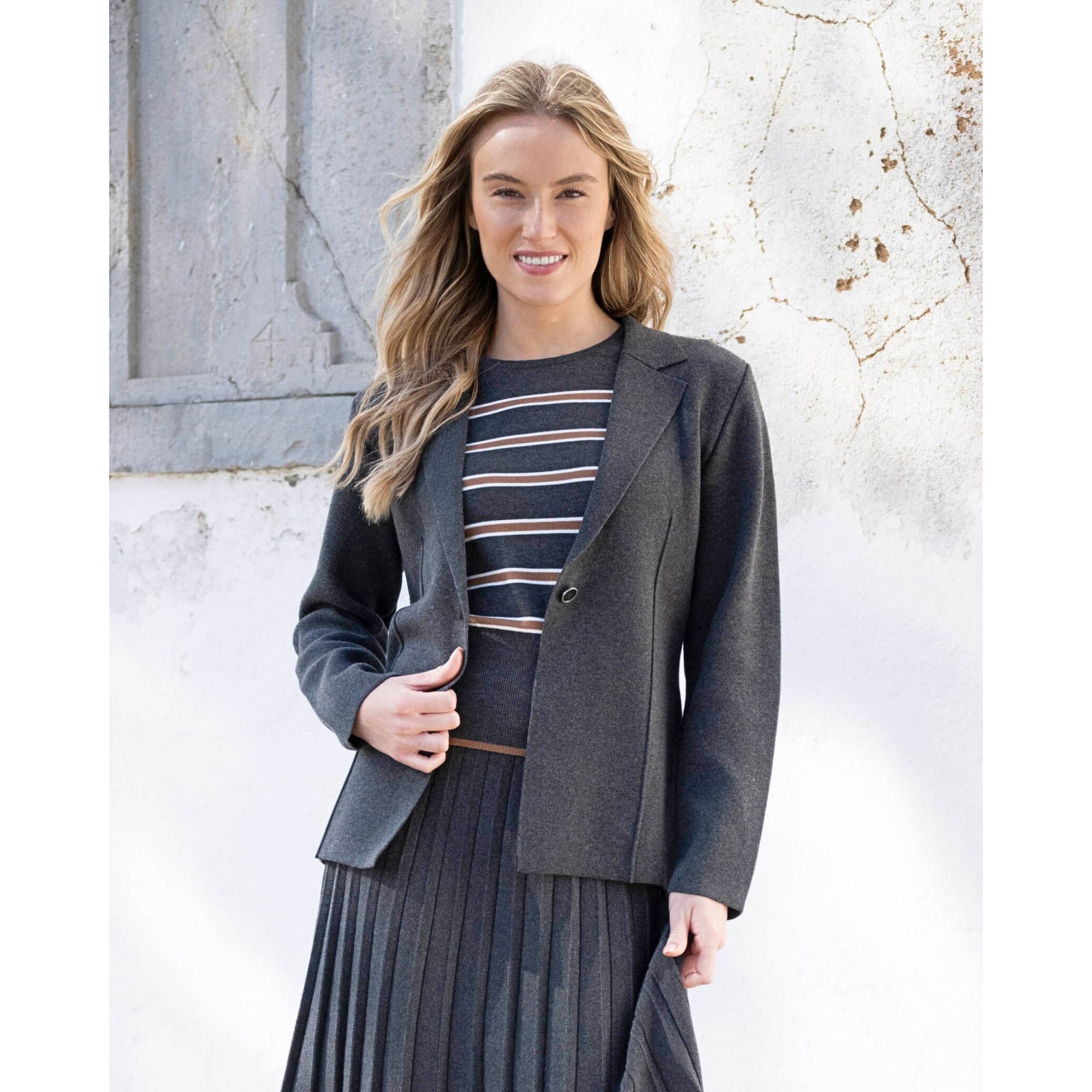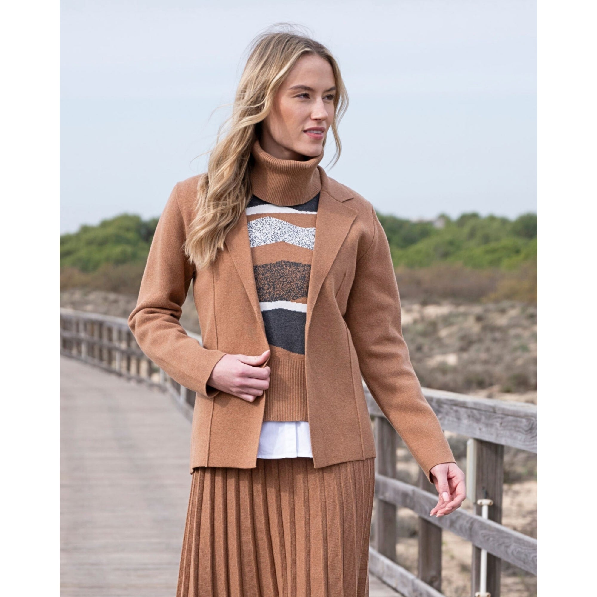 Beatrice B Printed Tie Waist Jacket Navy/Tan/Blue