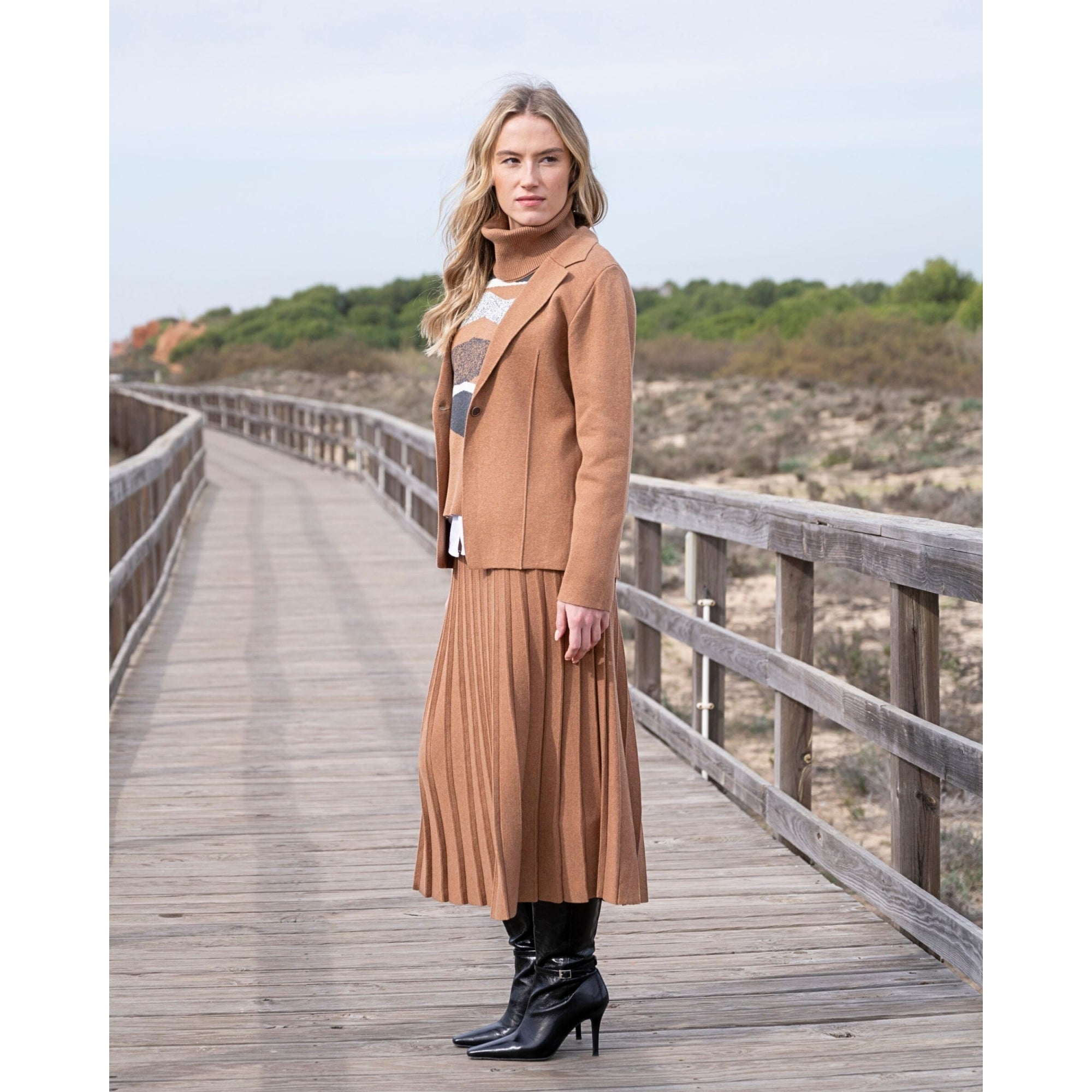 Riani Cutwork Suede Long Line Shirt Jacket Brown