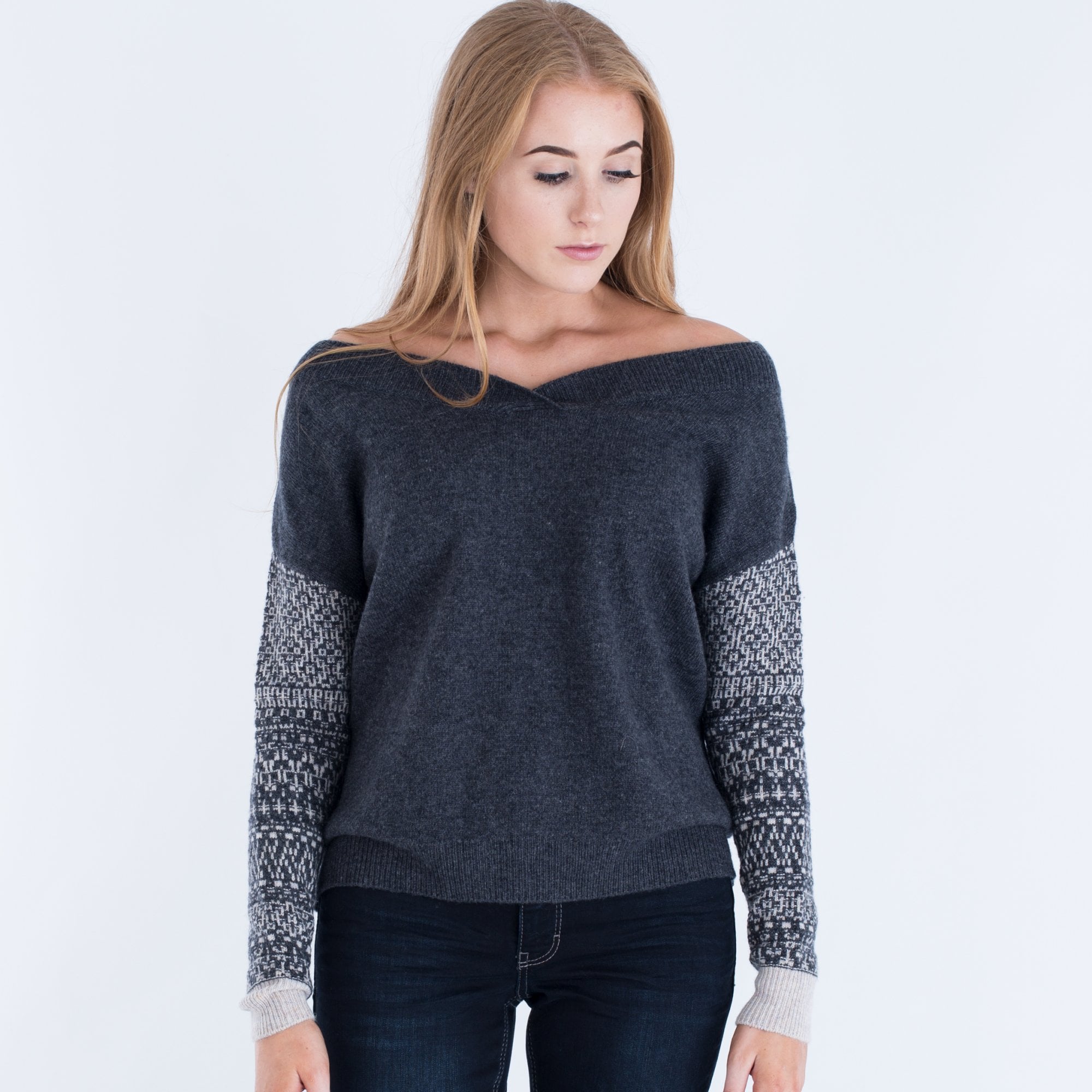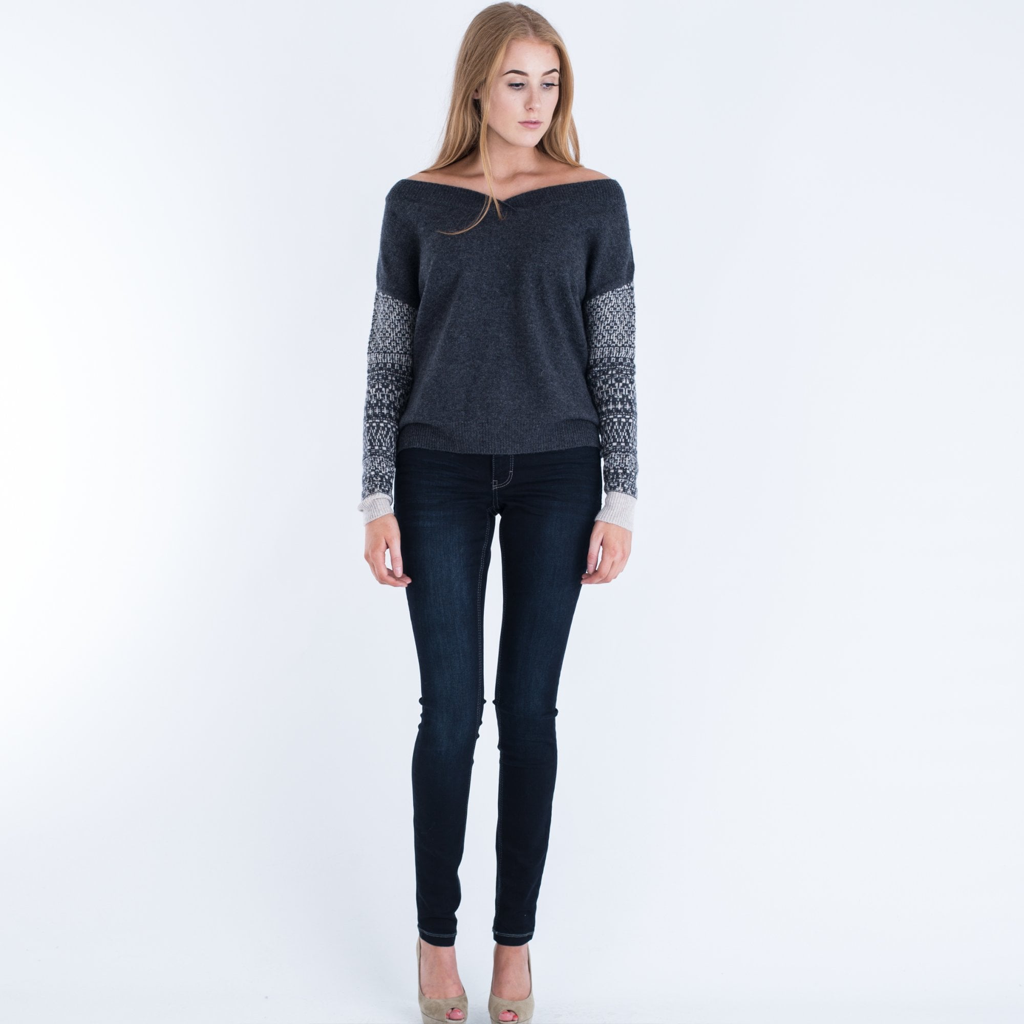 Charli Simona V Neck With Fairisle Sleeve Dark Grey