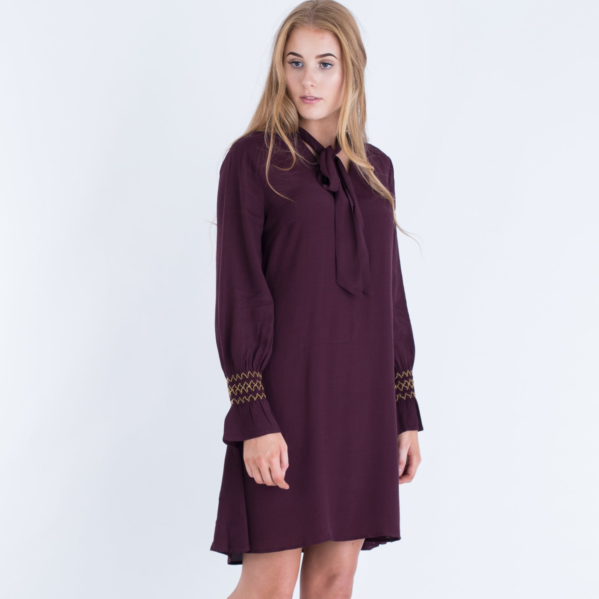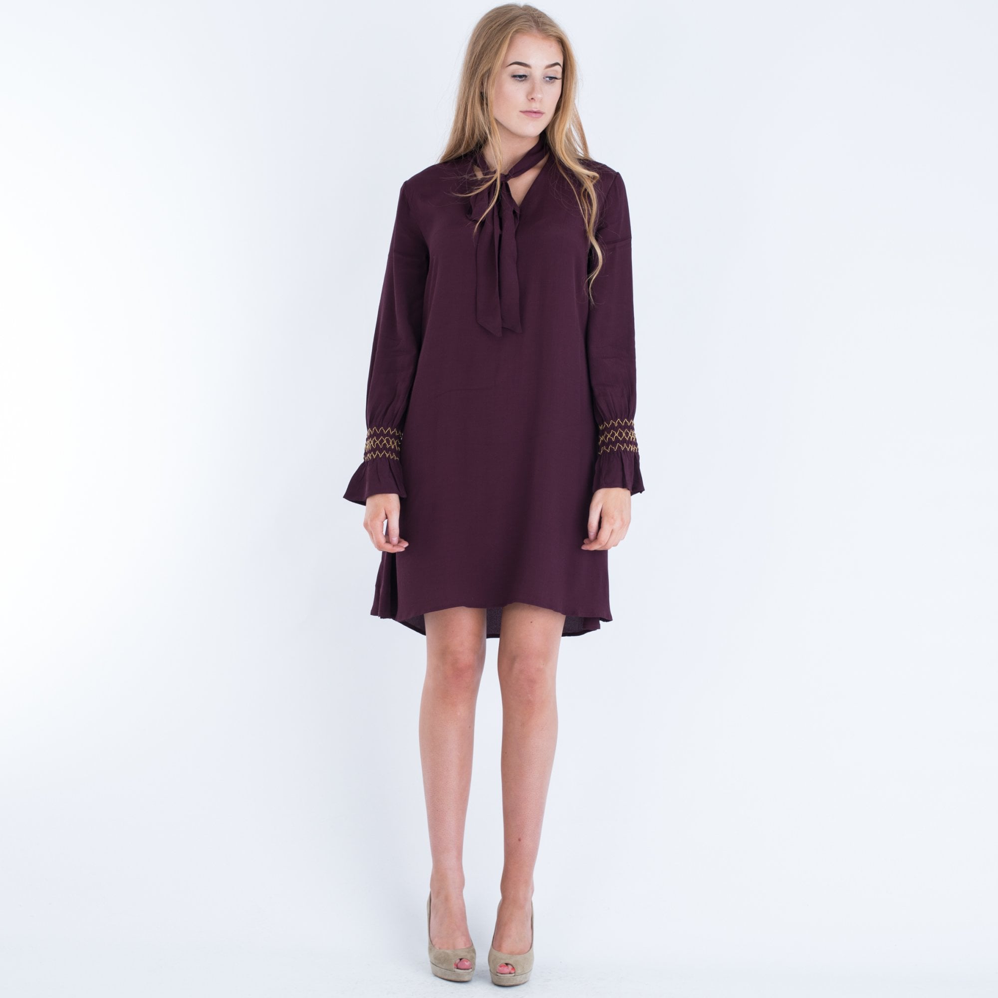 Charli Genevieve Tie Neck Flute Sleeve Dress Fit And Flare Damson