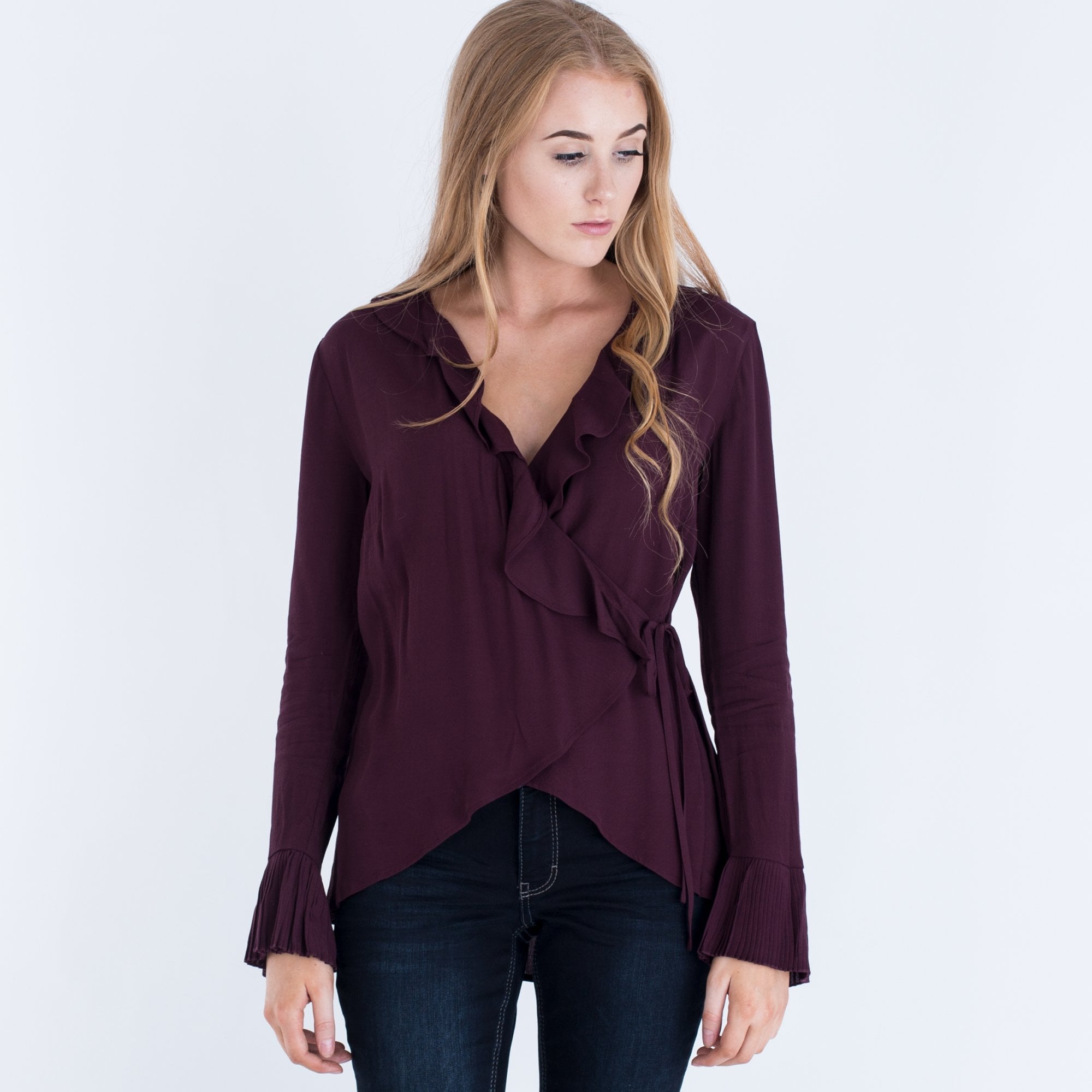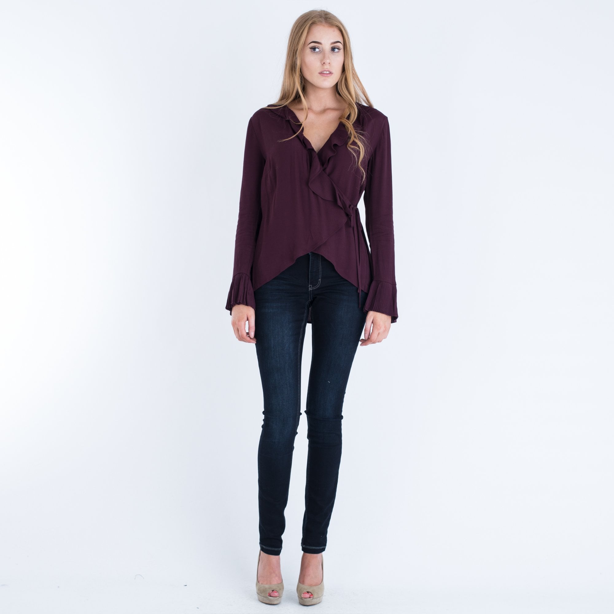 Charli Gabriella Tie Side Ruffle Edge Blouse Damson
