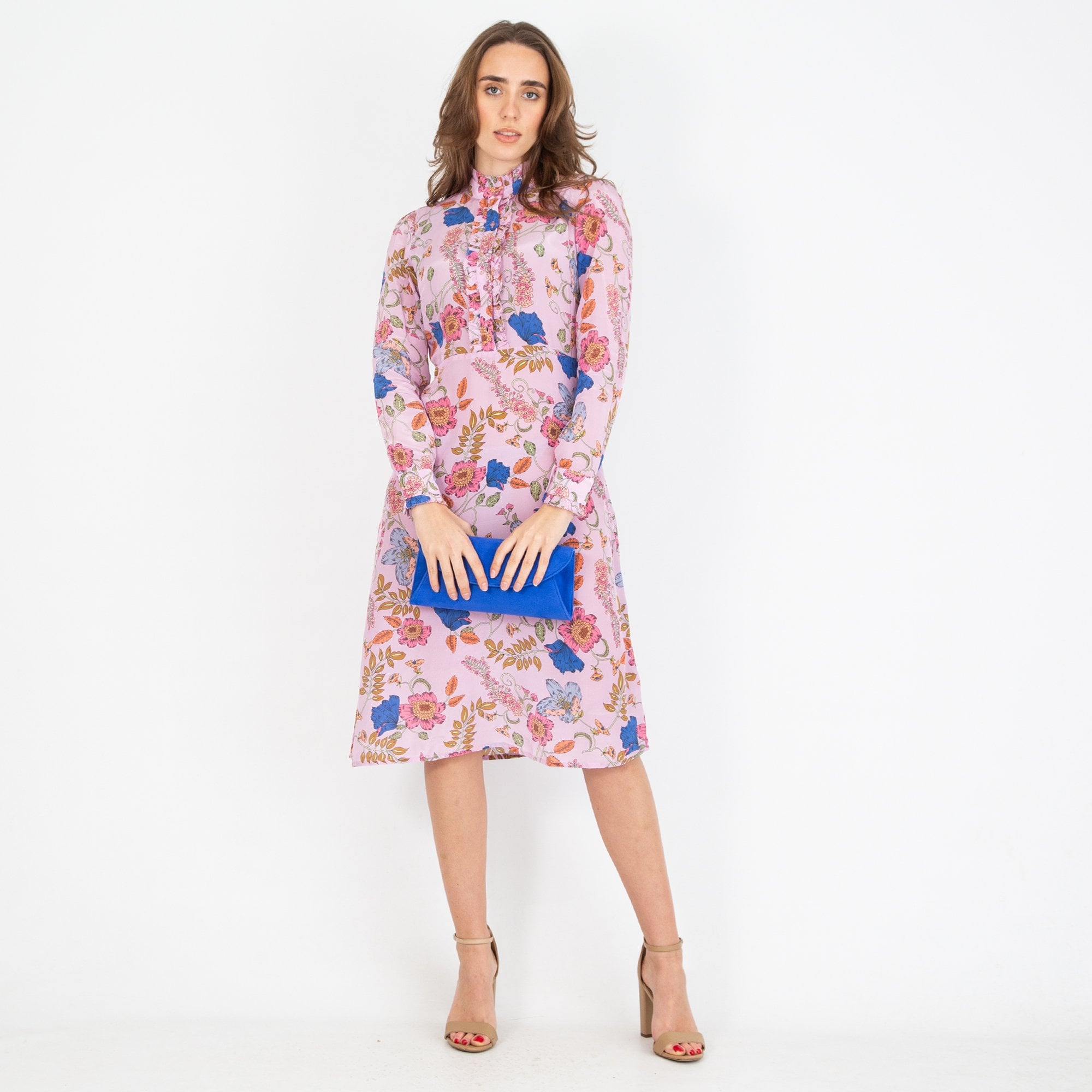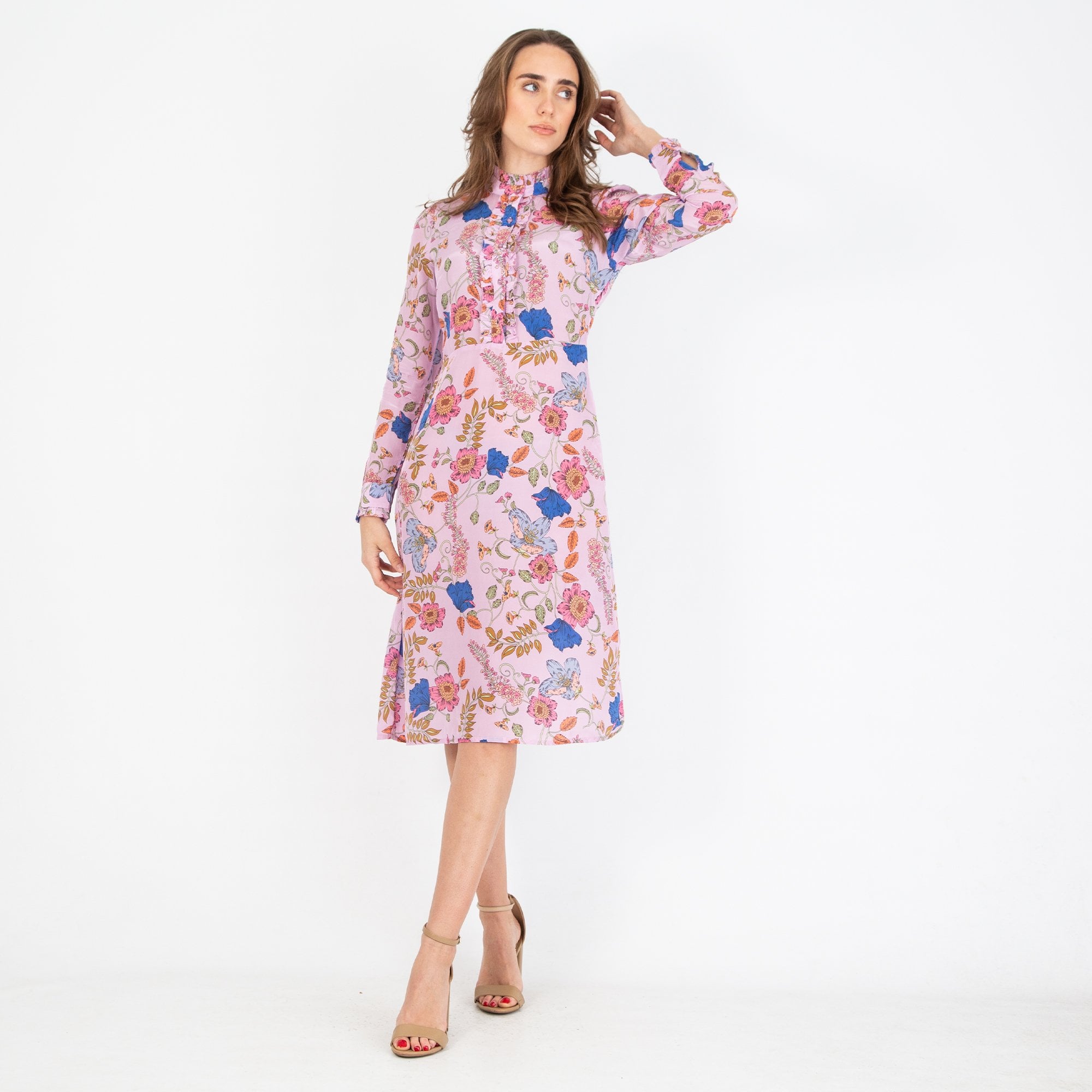 Charlotte Sparre Frill Front Floral Short A Line Dress Lilac Multi