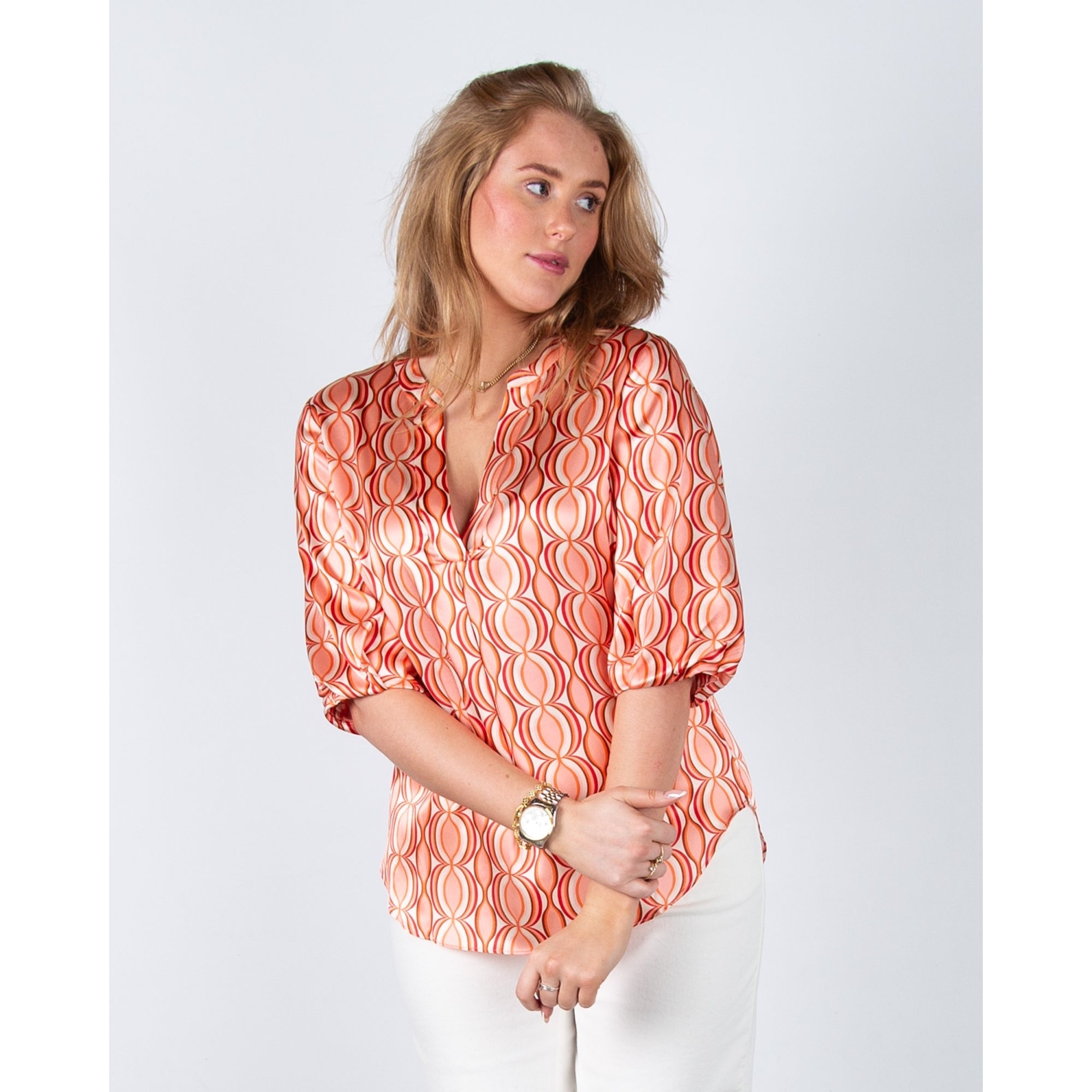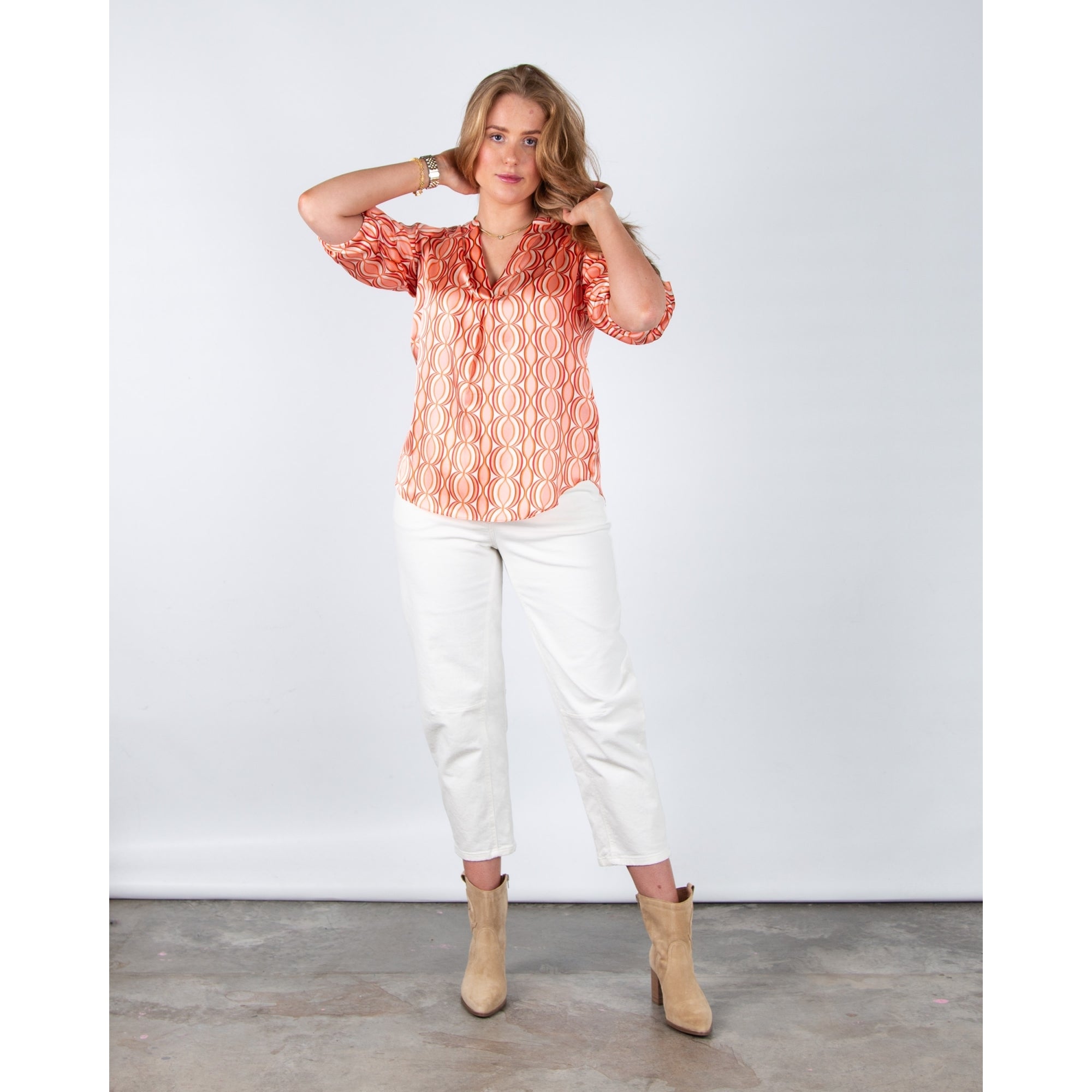 Charlotte Sparre Geometric Circle Print Silk Blouse 3/4 Sleeve Myriam Red