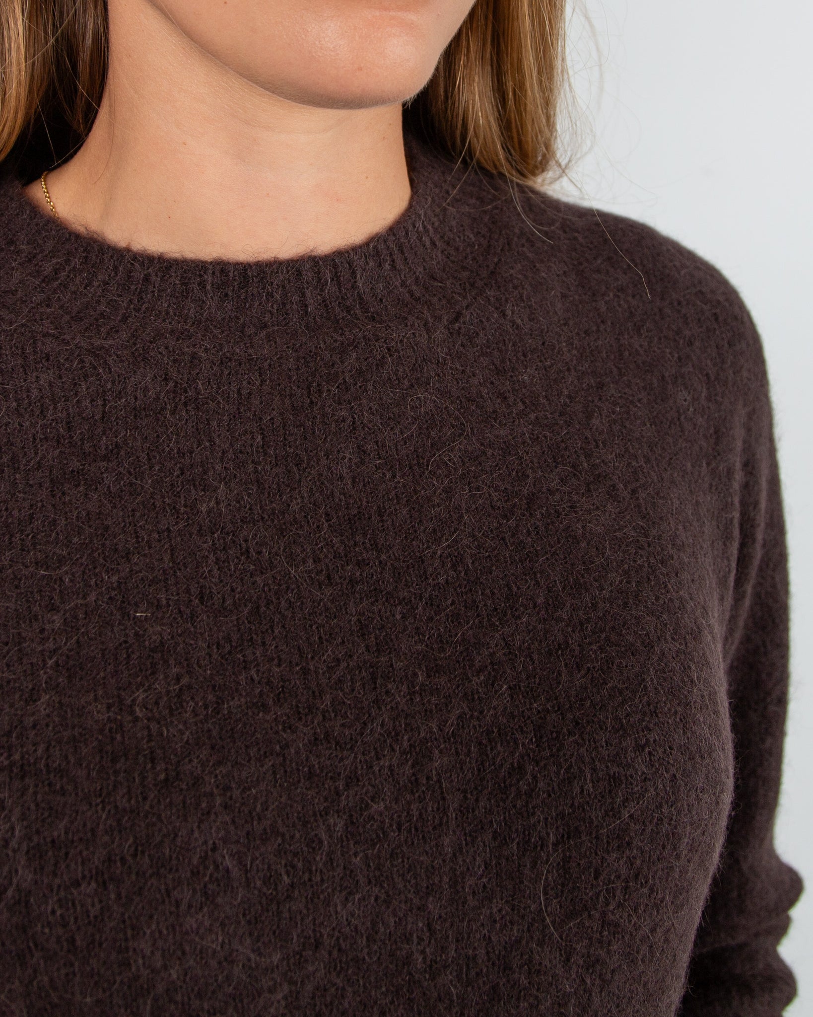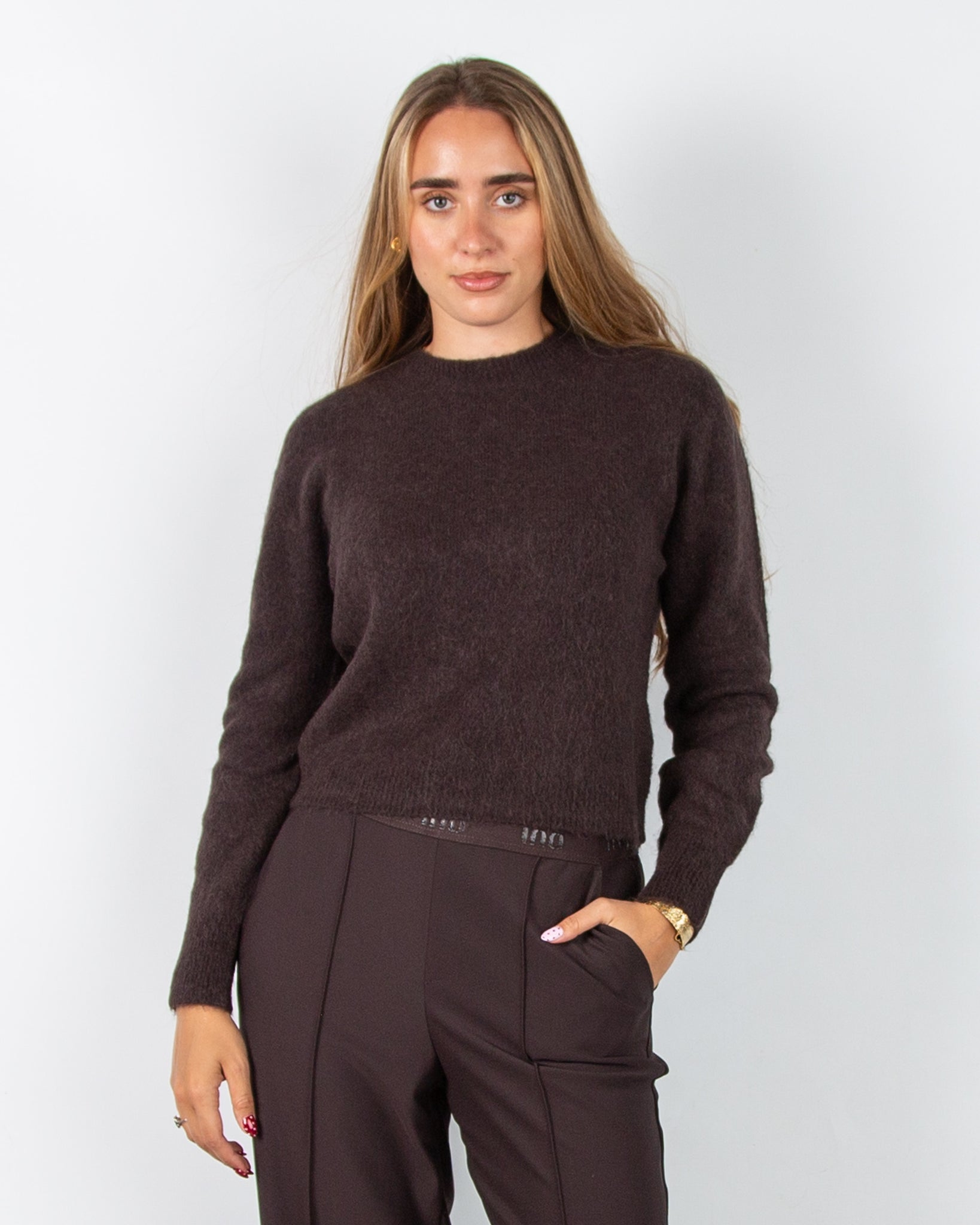 Oui Soft Knit Crew Neck Jumper Chocolate