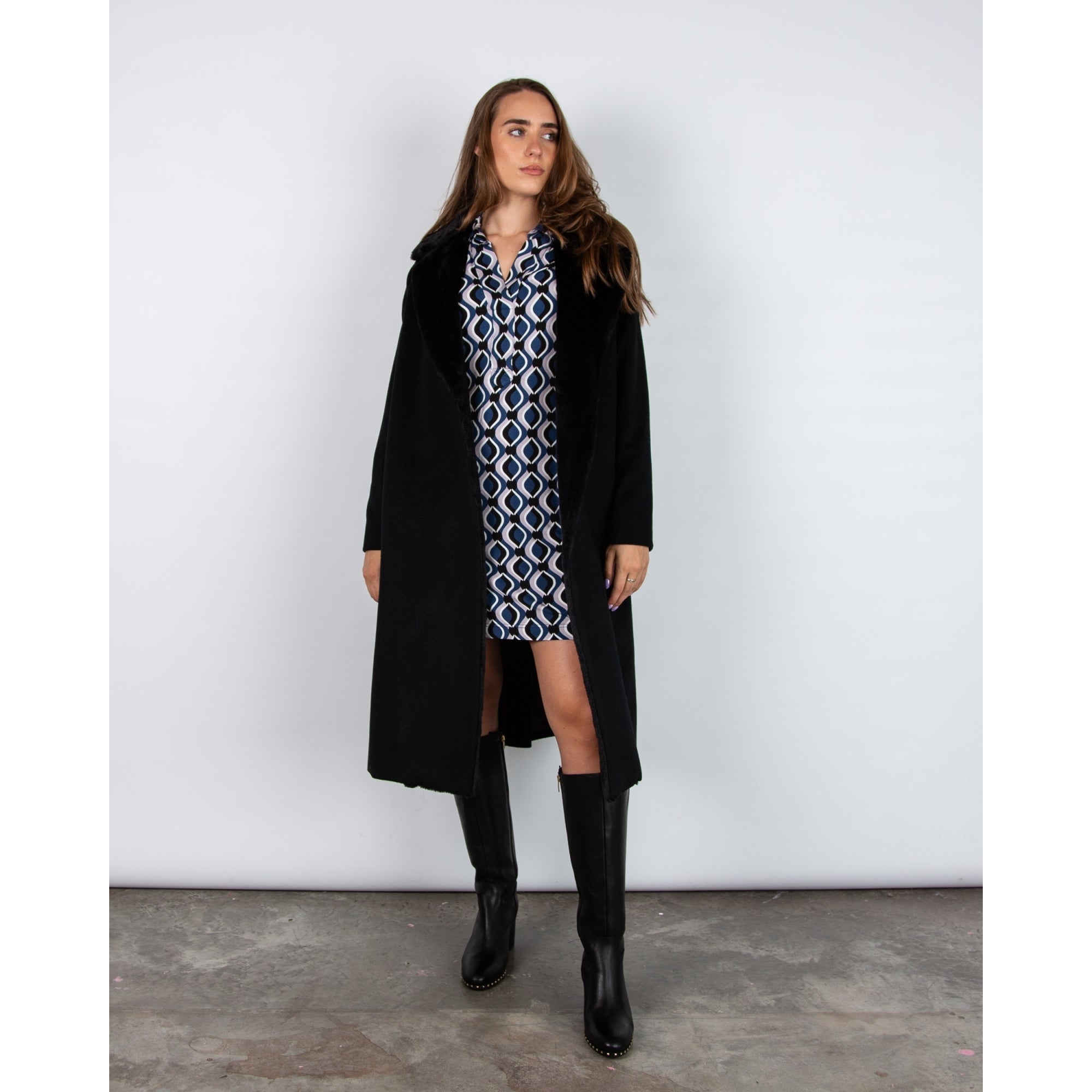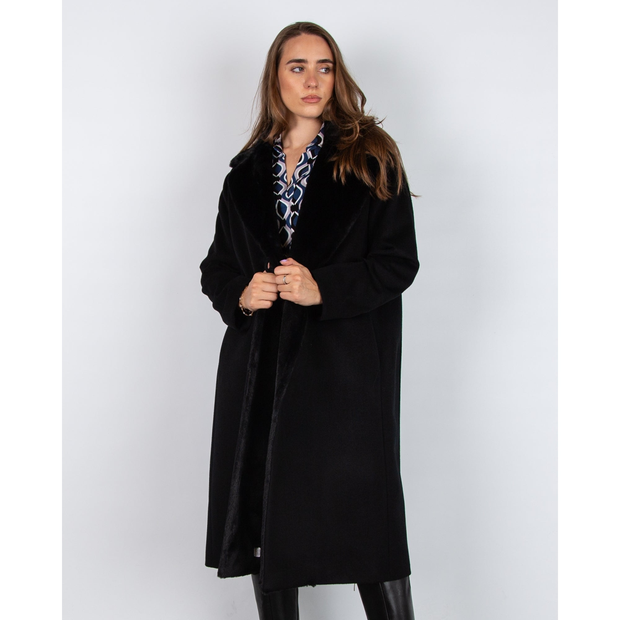 Cinzia Rocca Long Wool Coat With Faux Fur Lapel Black