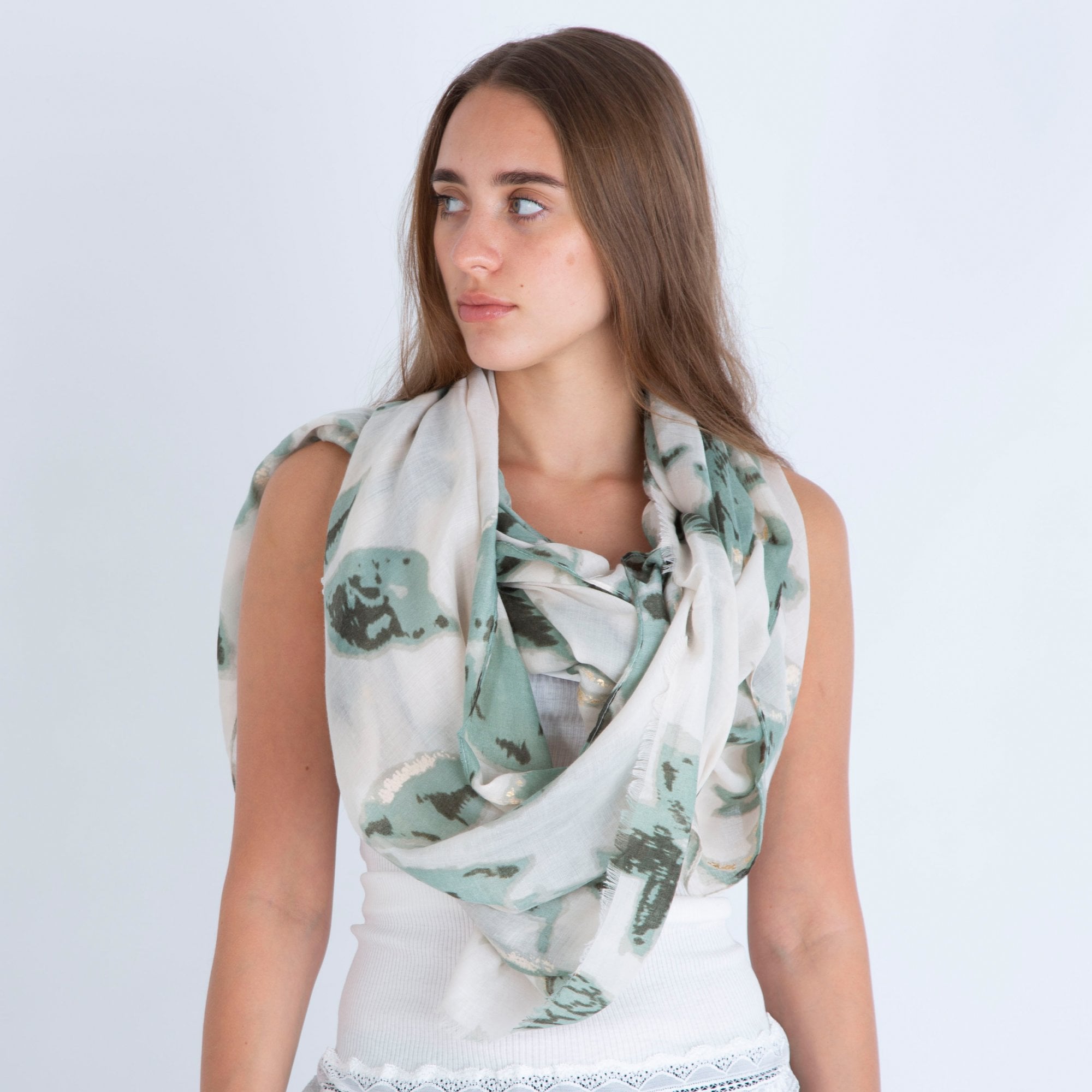 Sister PR Smudged Floral Scarf With Metallic Flecks Green/Cream
