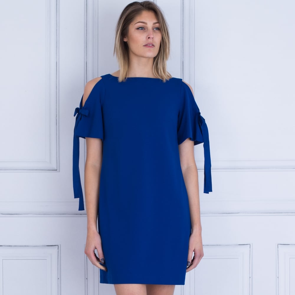 Adriana Papell Ribbon Tie Shift Dress Cobalt