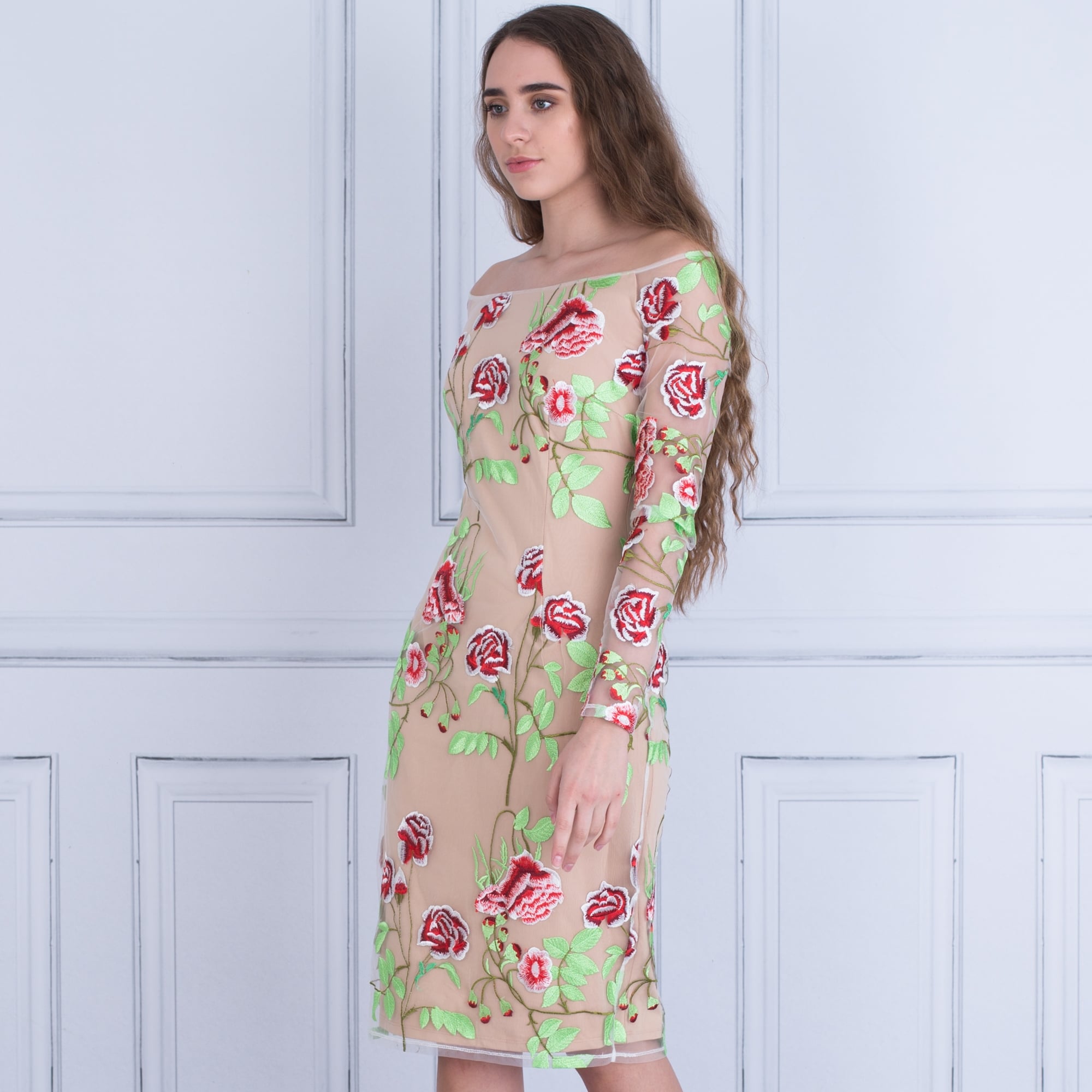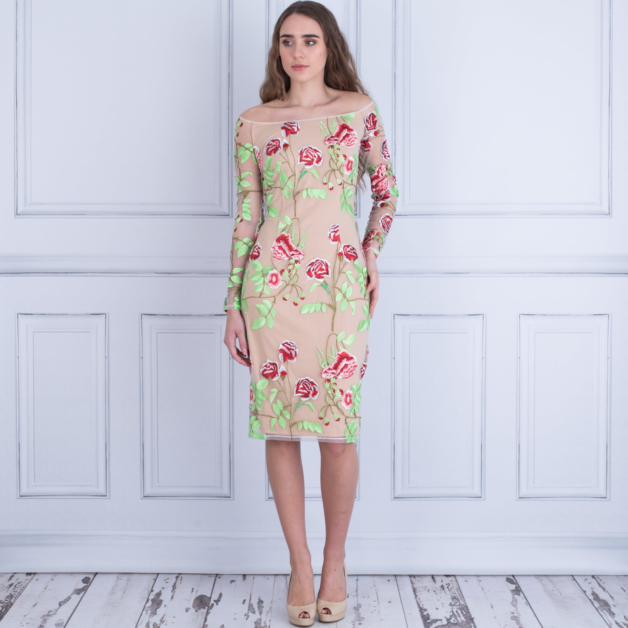 Forever Unique Hazel Embroidered Floral Dress Nude